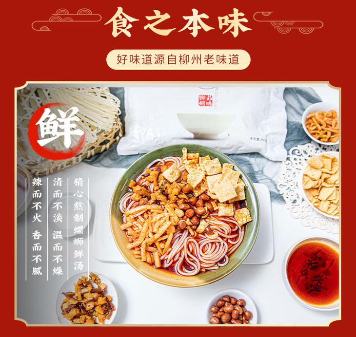 【口感】螺蛳粉的酸、辣、鲜、香,辣味是它的独特之处。它由柳州特有的软韧爽口的米粉,加上酸笋、花生、油炸腐竹、萝卜干、鲜嫩青菜等配料及浓郁适度的酸辣味和煮螺蛳的汤水
