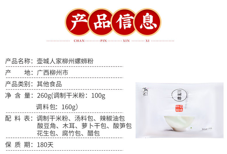 【净含量】260g(调制干米粉: 100g、调料包: 160g)