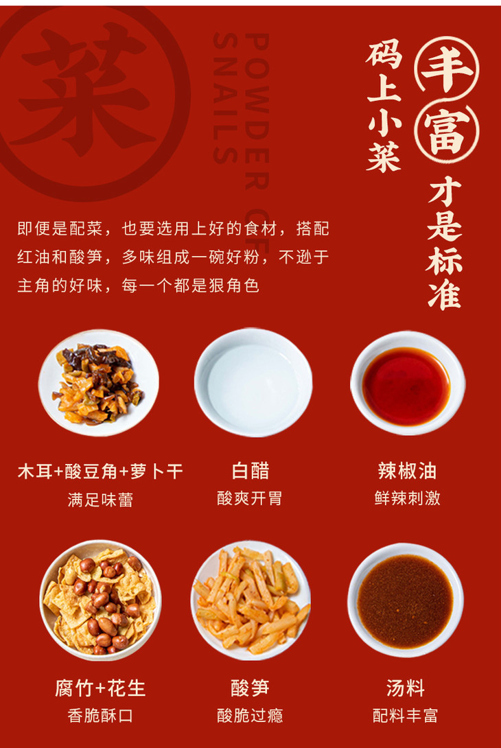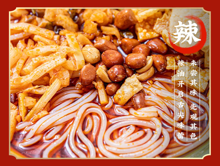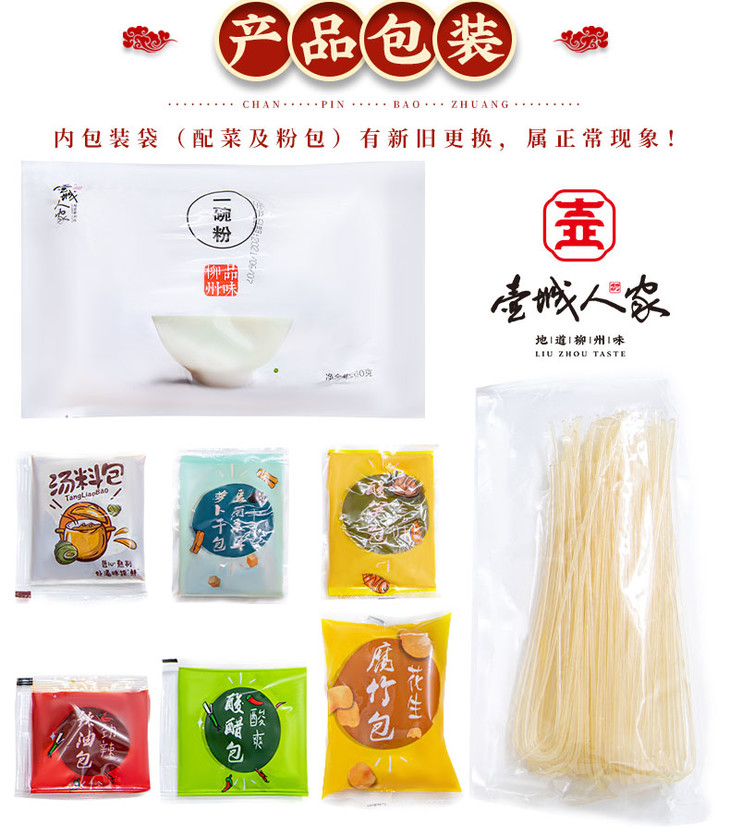 【配料表】调制干米粉、汤料包、辣椒油包、酸豆角、木耳、萝卜干包、酸笋包、花生包、腐竹包、醋包