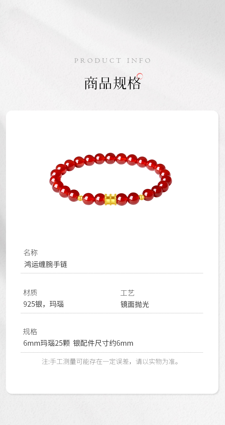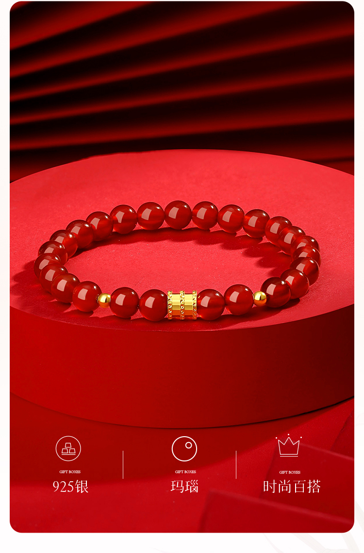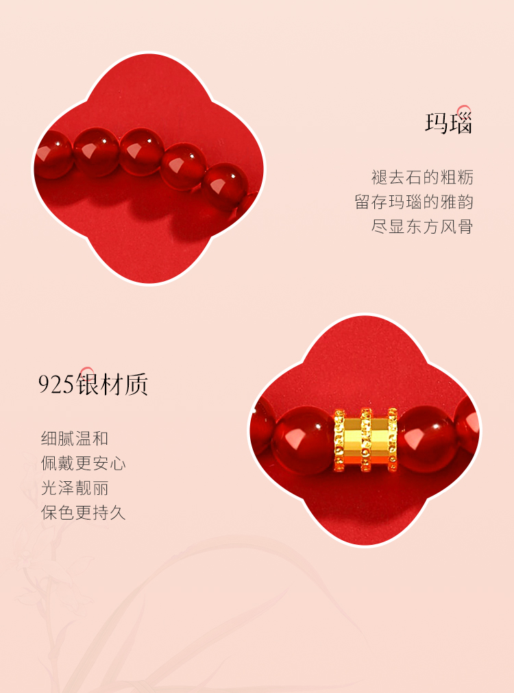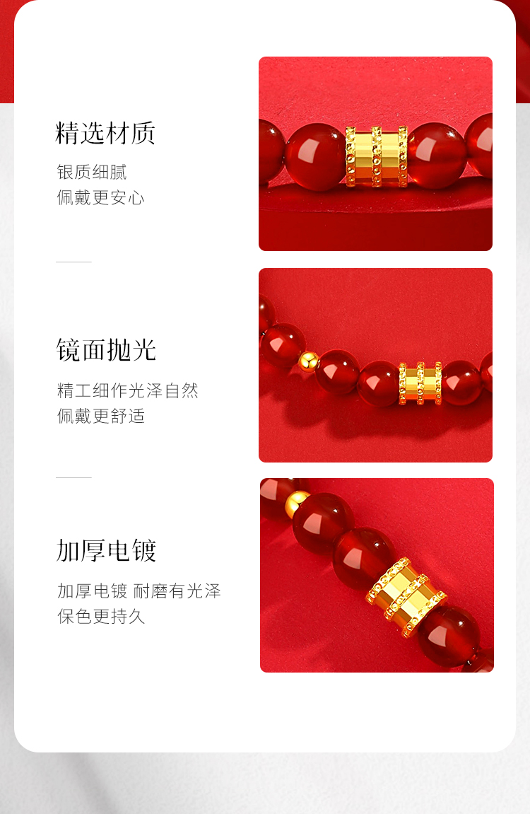 Winy 鸿运缠腕手链 S925 银鎏金扣红玛瑙手串 配证书 新年氛围感显白饰品