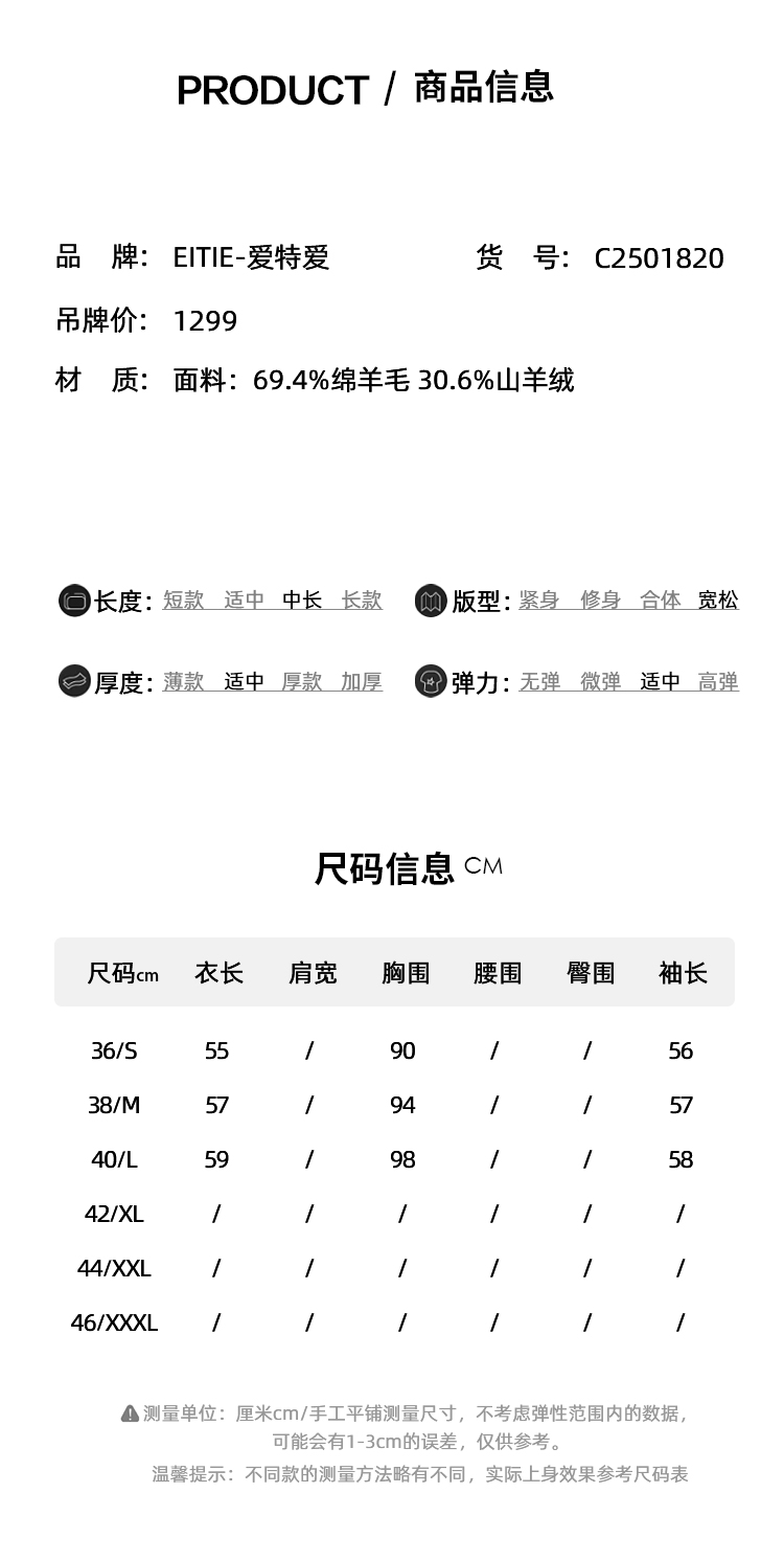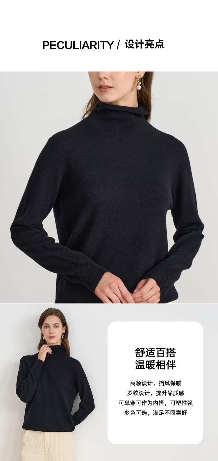 【30.6%山羊绒】EITIE爱特爱舒适柔软高领羊毛针织衫秋冬新款C2501820