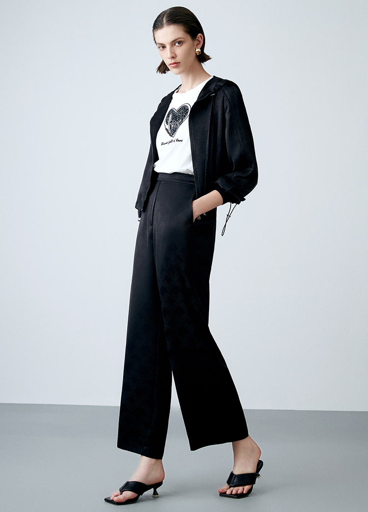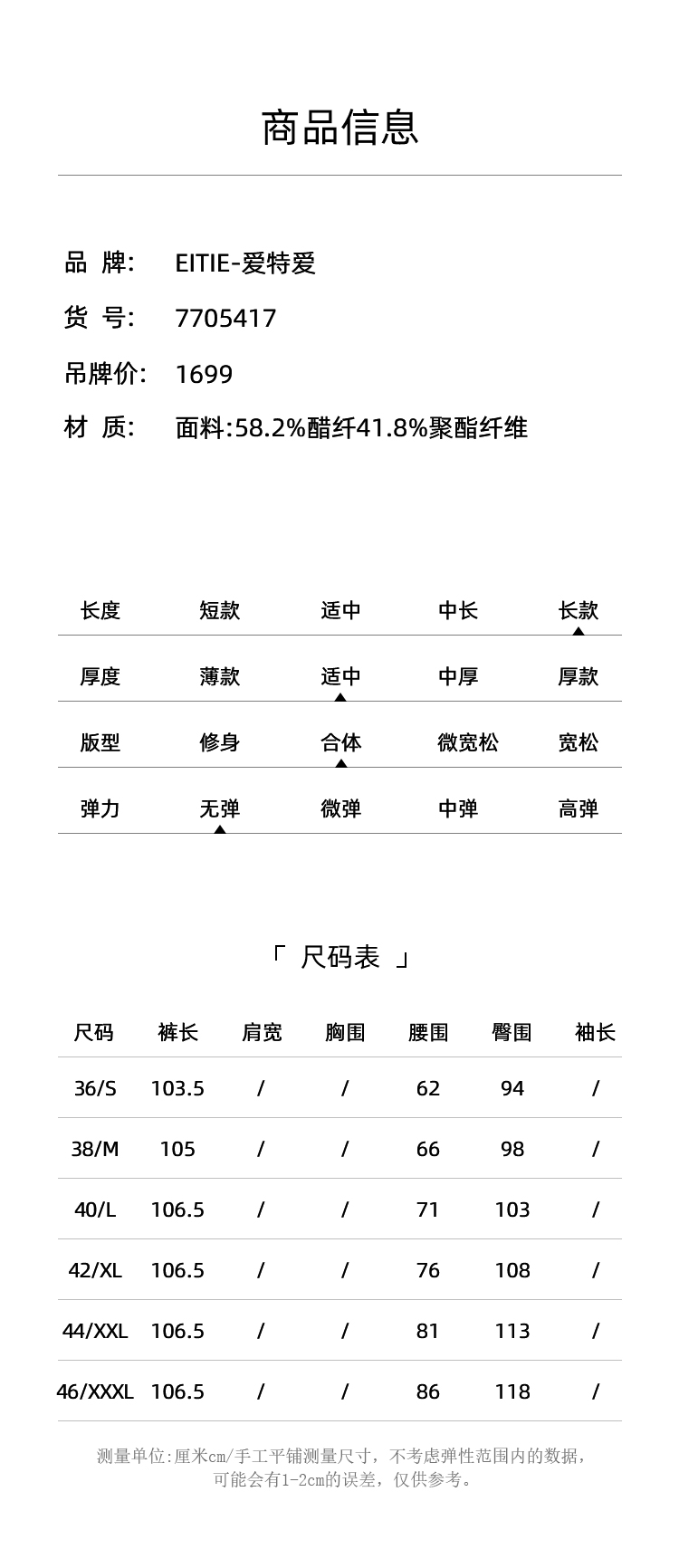 EITIE爱特爱春季新款高腰简约通勤显瘦休闲裤百搭裤子7705417