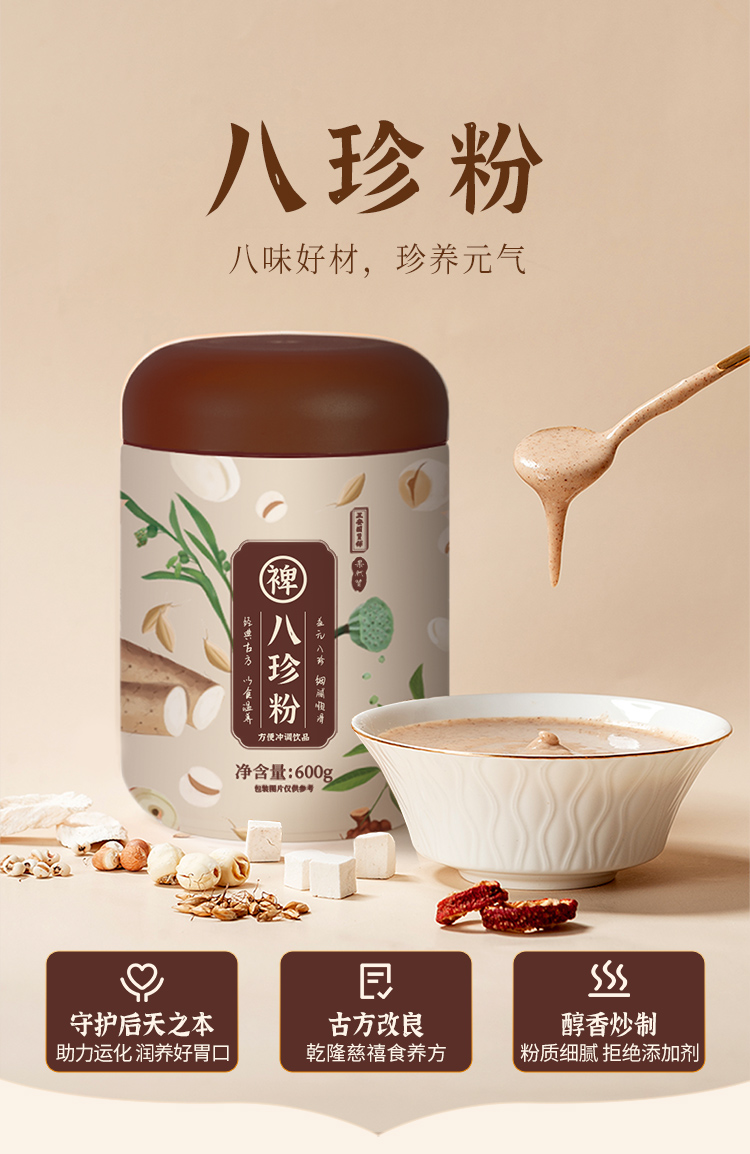 正安国货·细腻柔滑易吸收的八珍粉 600g/瓶