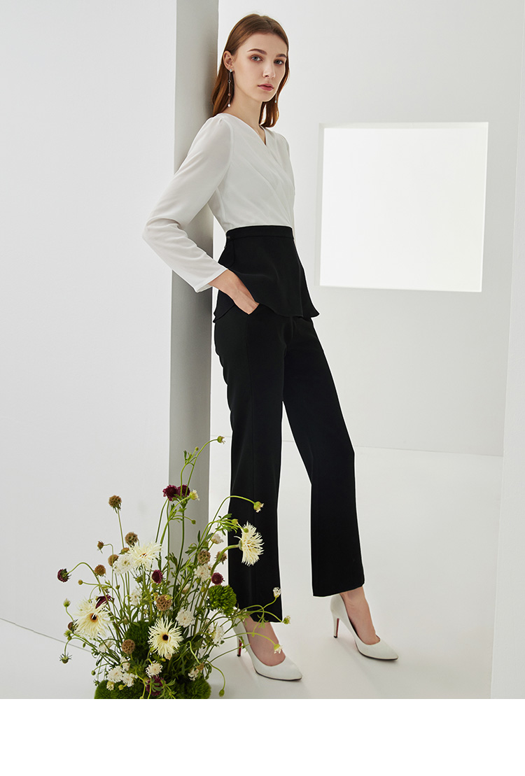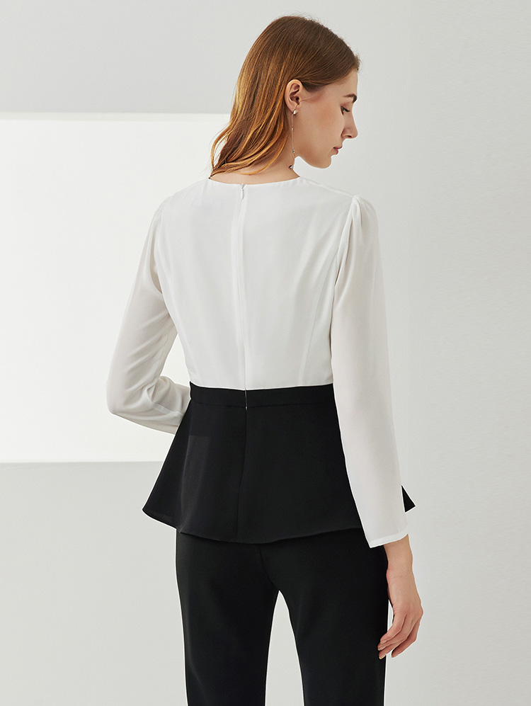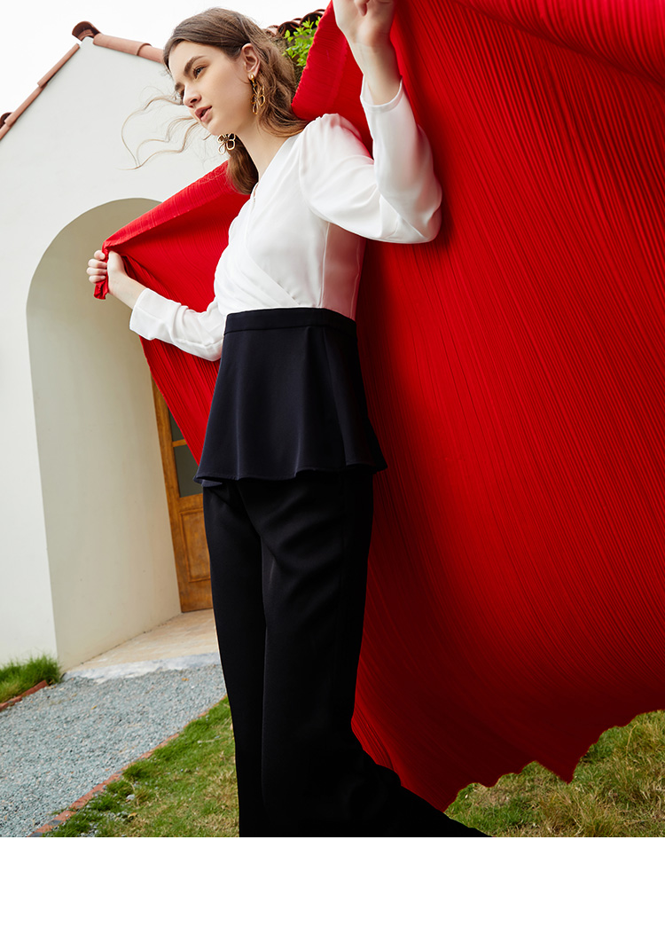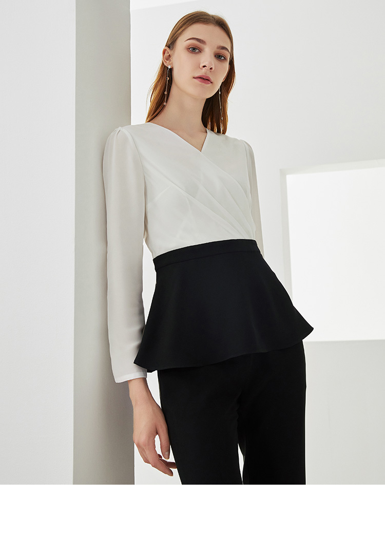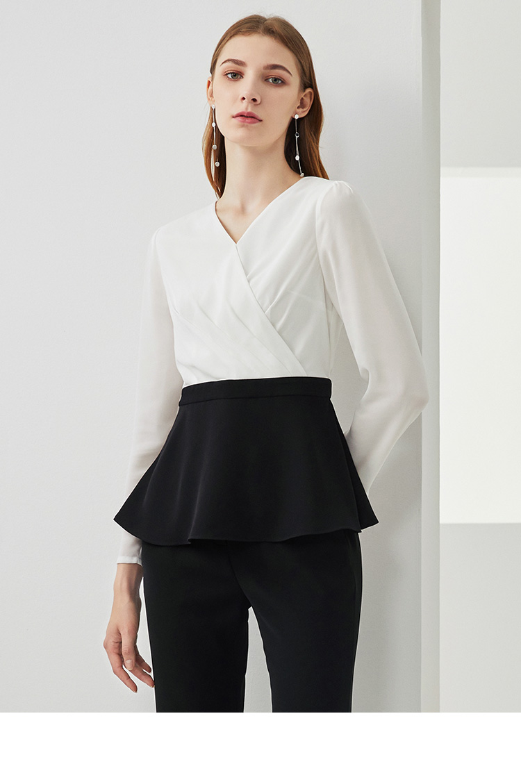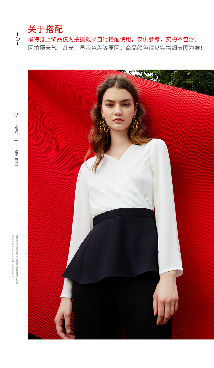 EITIE爱特爱气质通勤职业撞色V领显瘦收腰上衣女C2113814