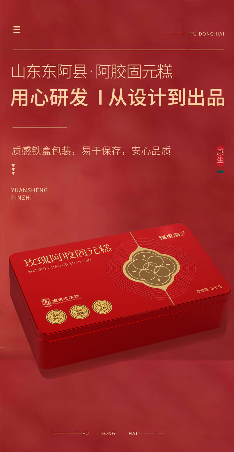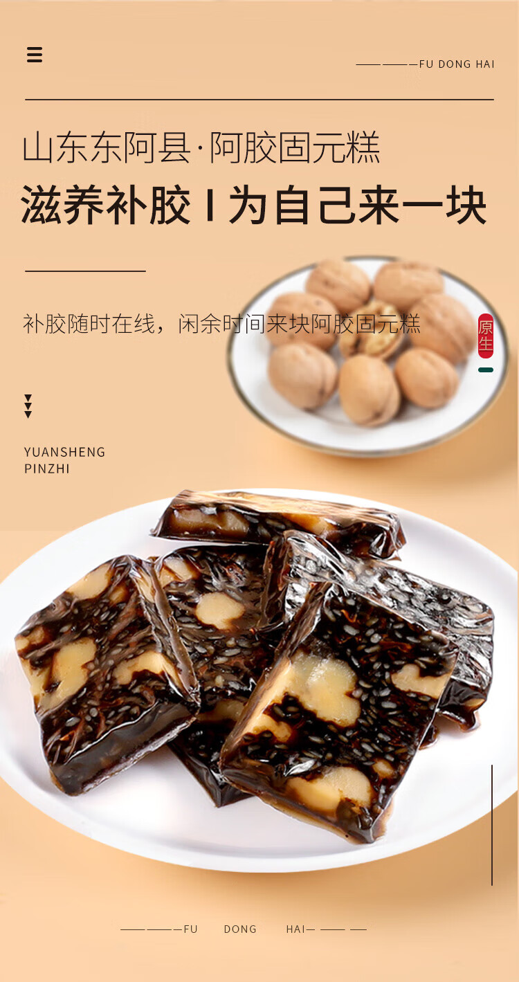 福东海玫瑰阿胶固元糕500g 即食玫瑰阿胶糕片块 送长辈送爱人滋补品礼盒