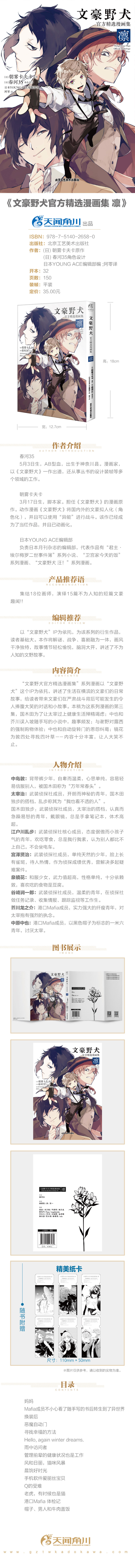 “文豪野犬官方精选漫画集”系列漫画以“文豪野犬”这个IP为依托,讲述了生活在横滨的文豪们的日常故事,给读者带来文豪们在严肃战斗背后可能发生的令人捧腹大笑的对话和小故事。本稿为这系列漫画的第三集,国木田为了让太宰过上健康生活殚精竭虑;中也和芥川误入坡随手写的小说中,趣事频发;与谢野对露西的强制购物体验;中也和自动旋转门的恩怨纠葛;镜花为敦四处寻找四叶草……内容十分丰富,让人大笑不止。