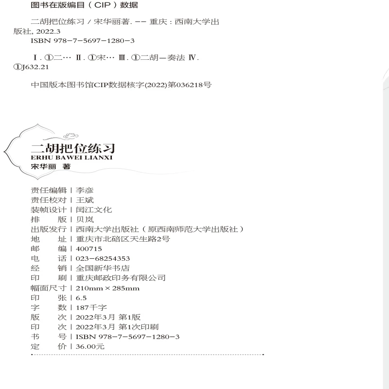 *书名:二胡把位练习 | *ISBN:978-7-5697-1280-3 |