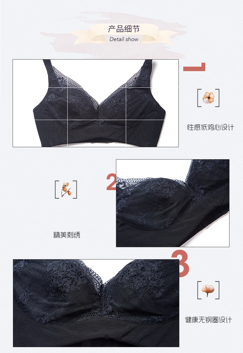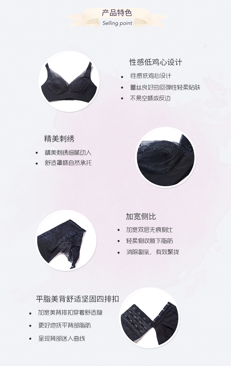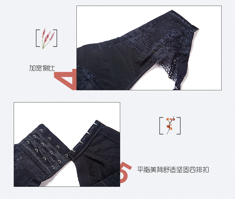 贝佳人新品大码文胸性感蕾丝软钢圈上托侧收调整型文胸女BW902008