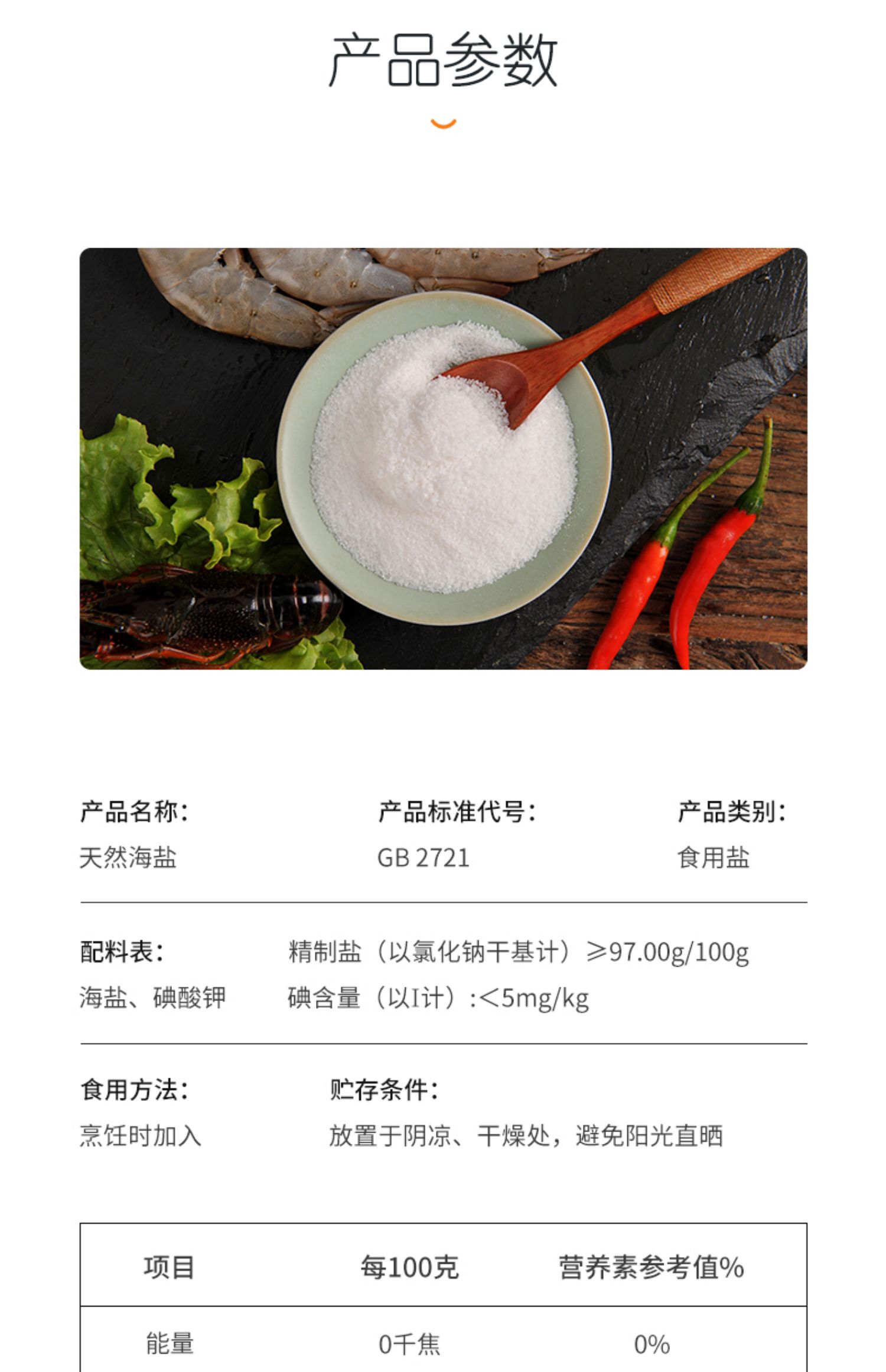 特价】鲁晶天然海盐未加碘食用盐细盐280g*5袋不含碘无抗结剂家庭用盐