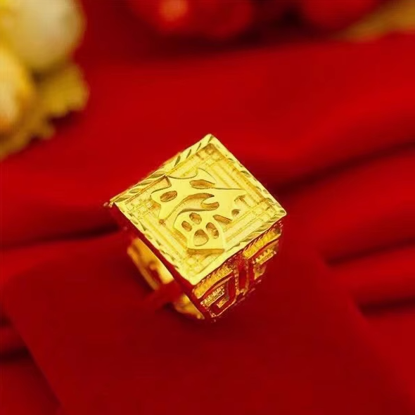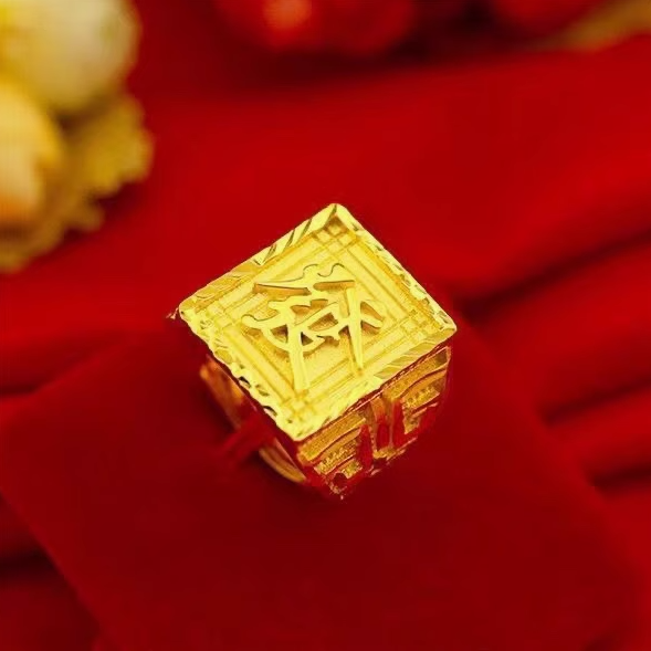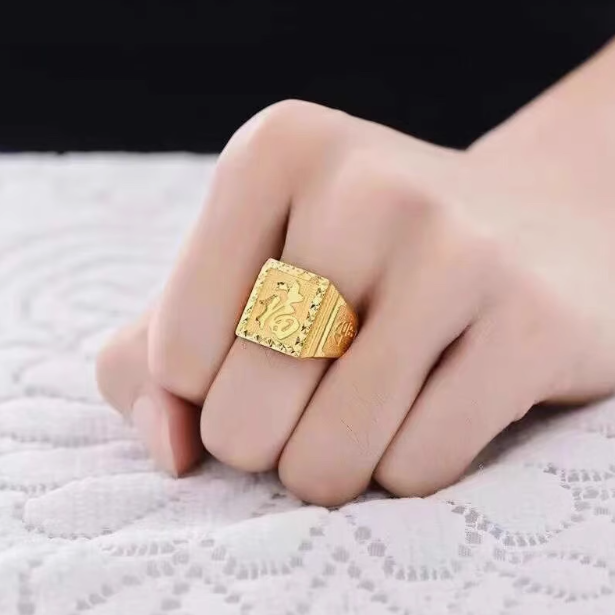 【蛇年新年福】纯黄金色霸气戒指 高端时尚钻戒指环-#NIN1