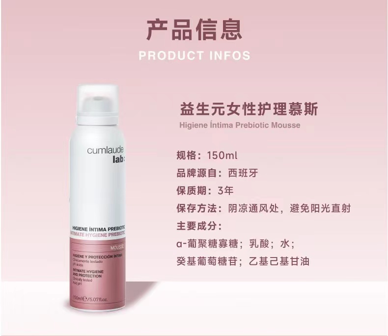 umlaude珂蔓朵益生元清洁慕斯女性私处护理液150ml