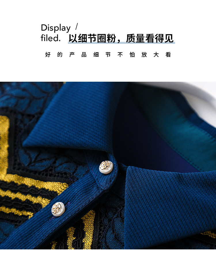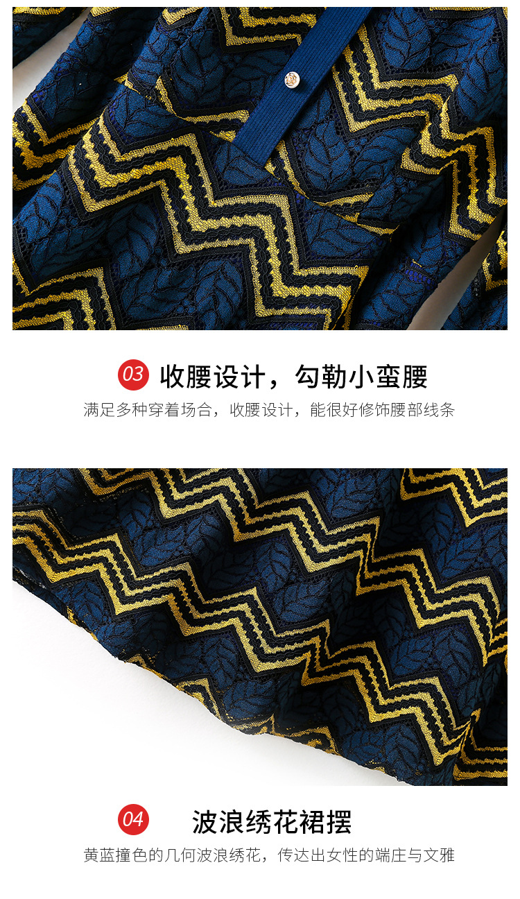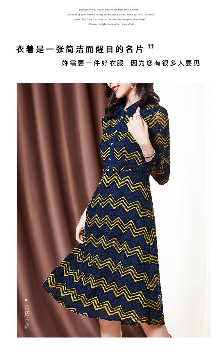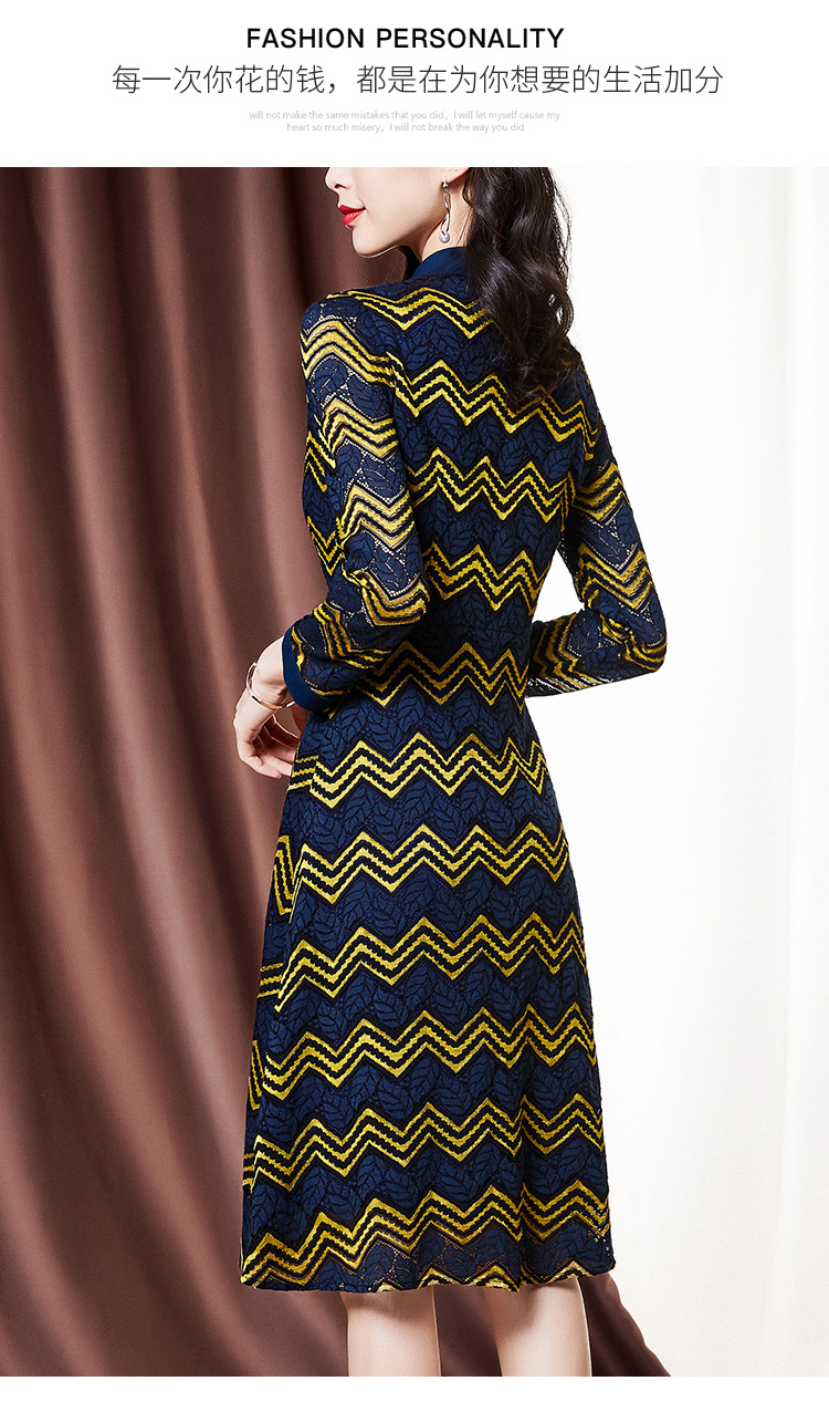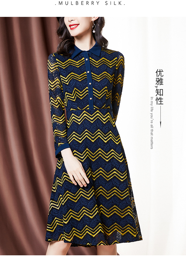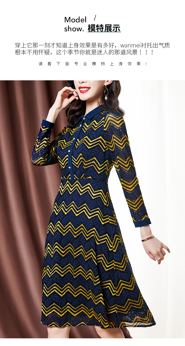 ZS-1589新款春秋季双色波浪条纹长袖连衣裙女休闲翻领中长款条纹裙子