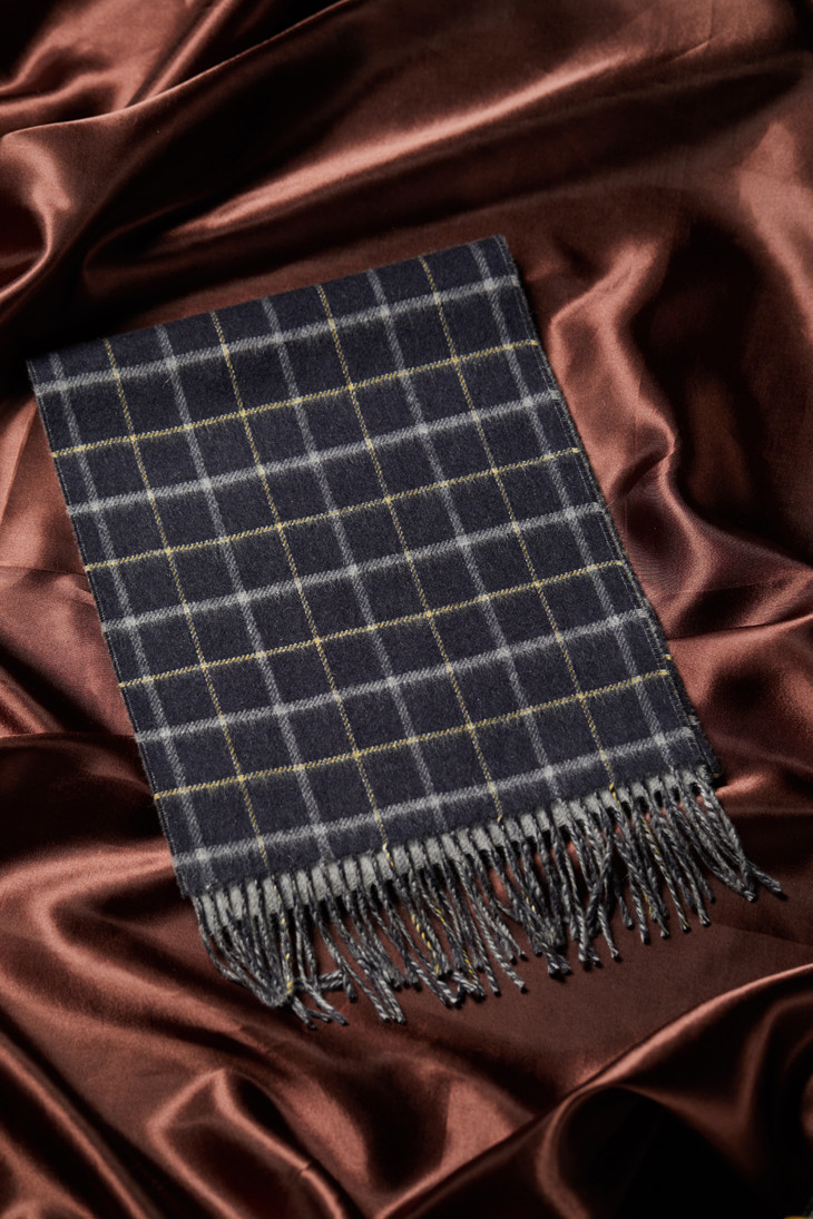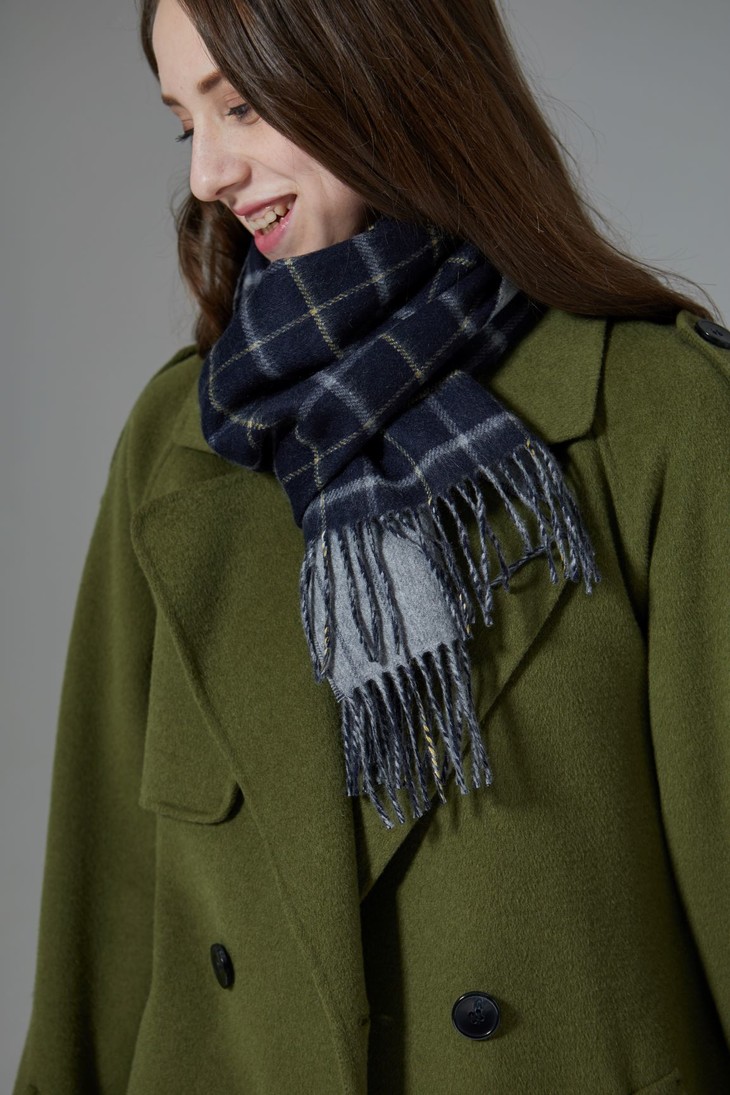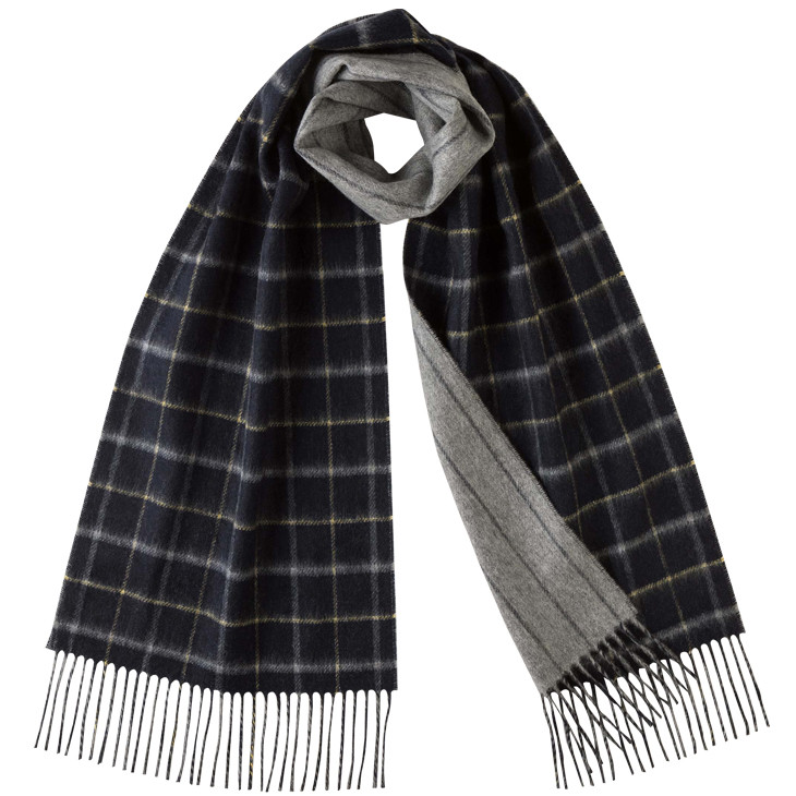 双面双色纯羊绒围巾 加宽 双窗格/灰色竖条