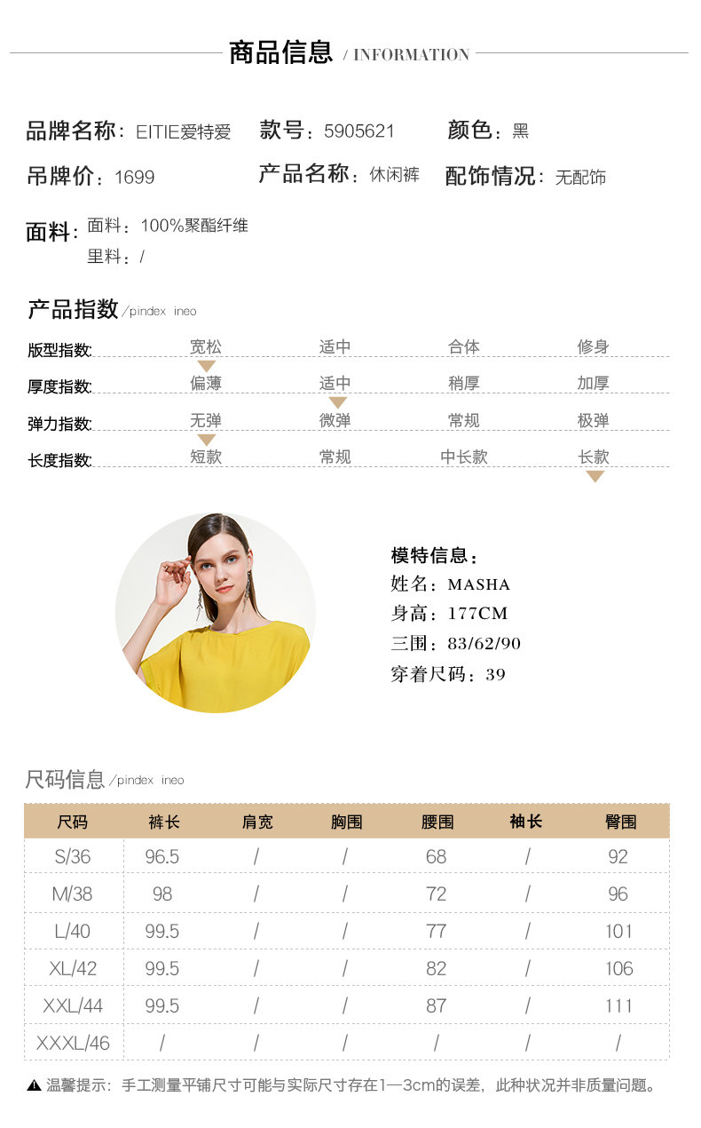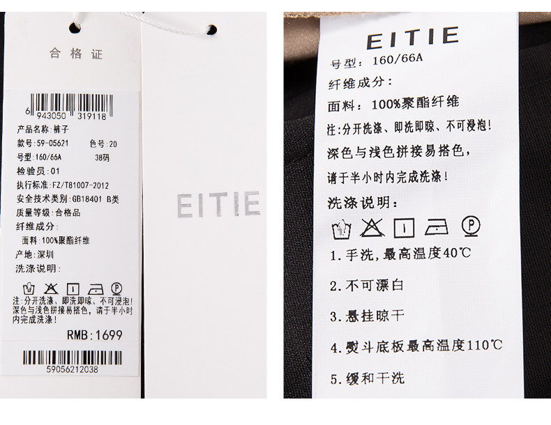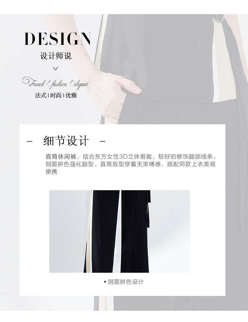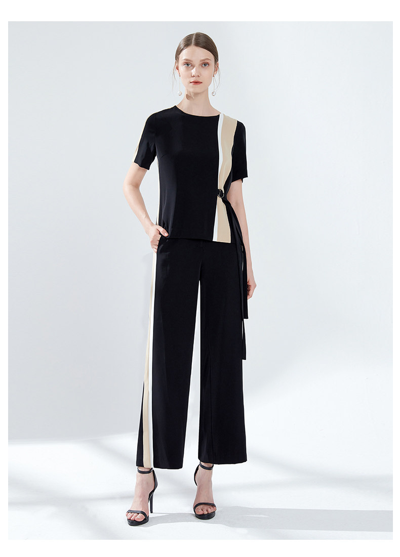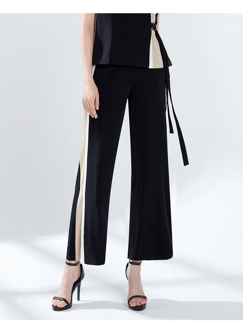 EITIE爱特爱女装夏季宽松薄款显瘦拼色垂感直筒休闲长裤5905621