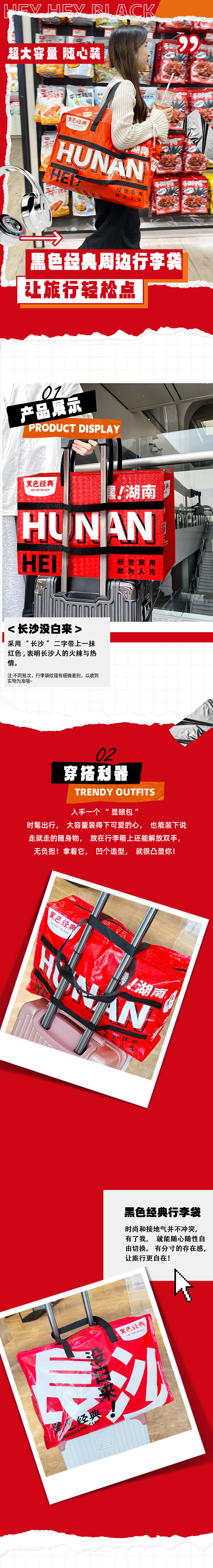 【文创周边】黑色经典编织袋手提带拉链款行李袋470*170*320mm