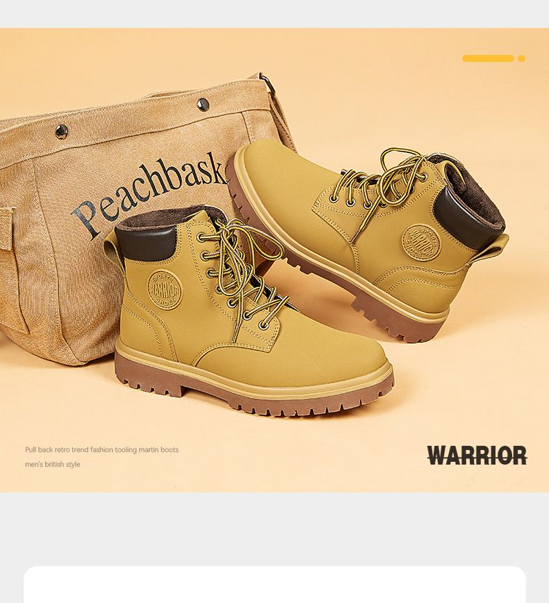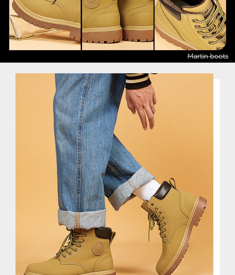 回力男鞋马丁靴秋冬款百搭英伦风大黄靴男款加绒加厚保暖工装靴子