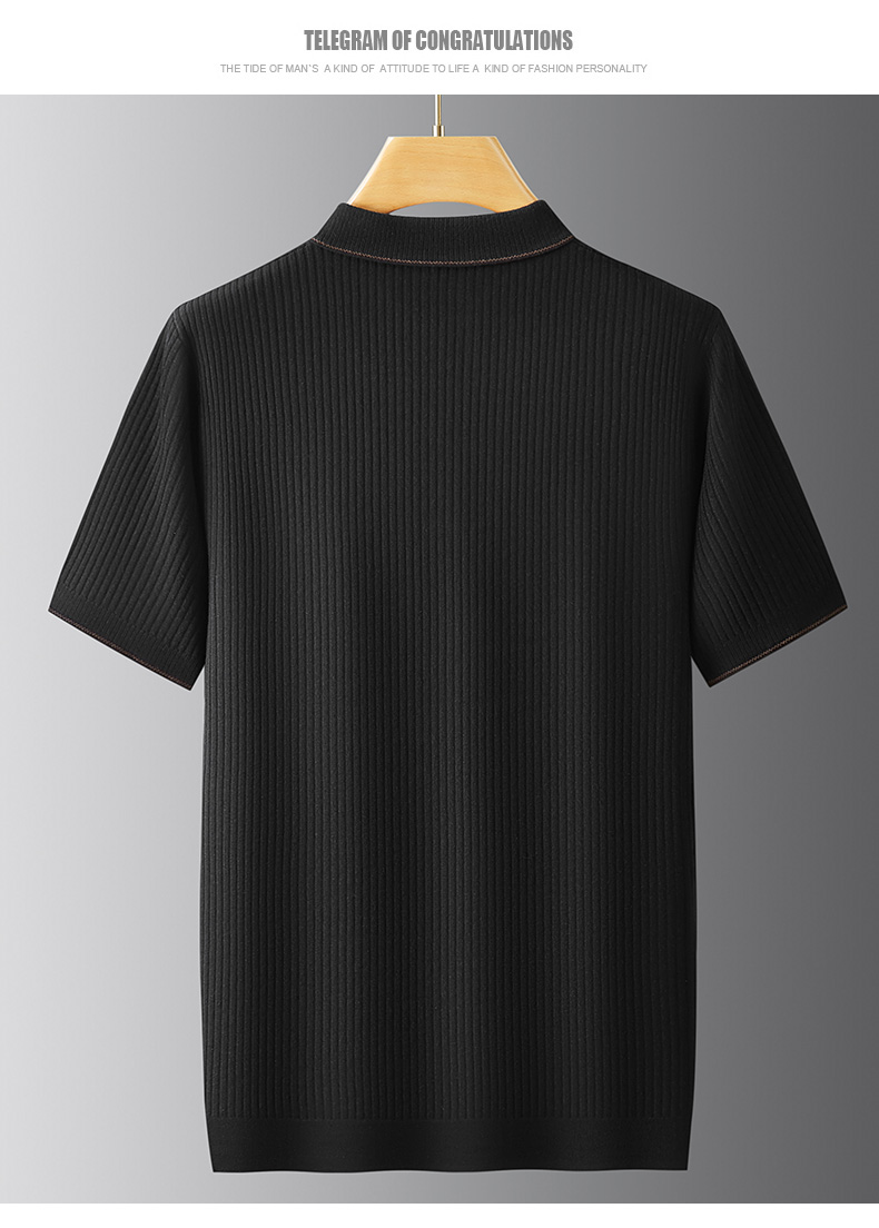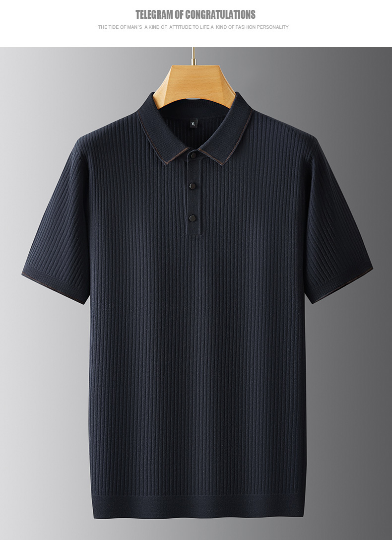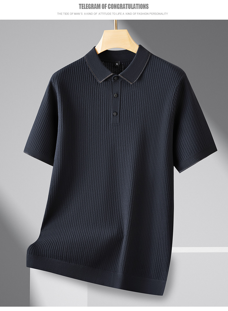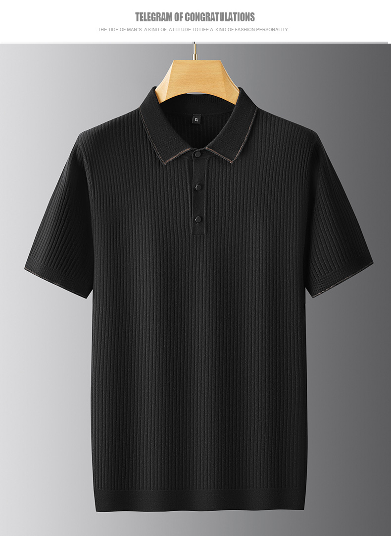 【新款DPF】大依优型翻领毛衣针织短袖背心休闲针织衫毛背心满印字母加肥加大上衣男士胖子大码毛衫t恤打底