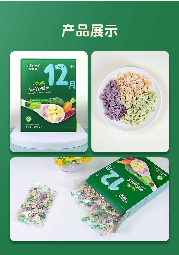 贝斯美有机婴幼儿彩蝶面150g 宝宝辅食蝴蝶面片