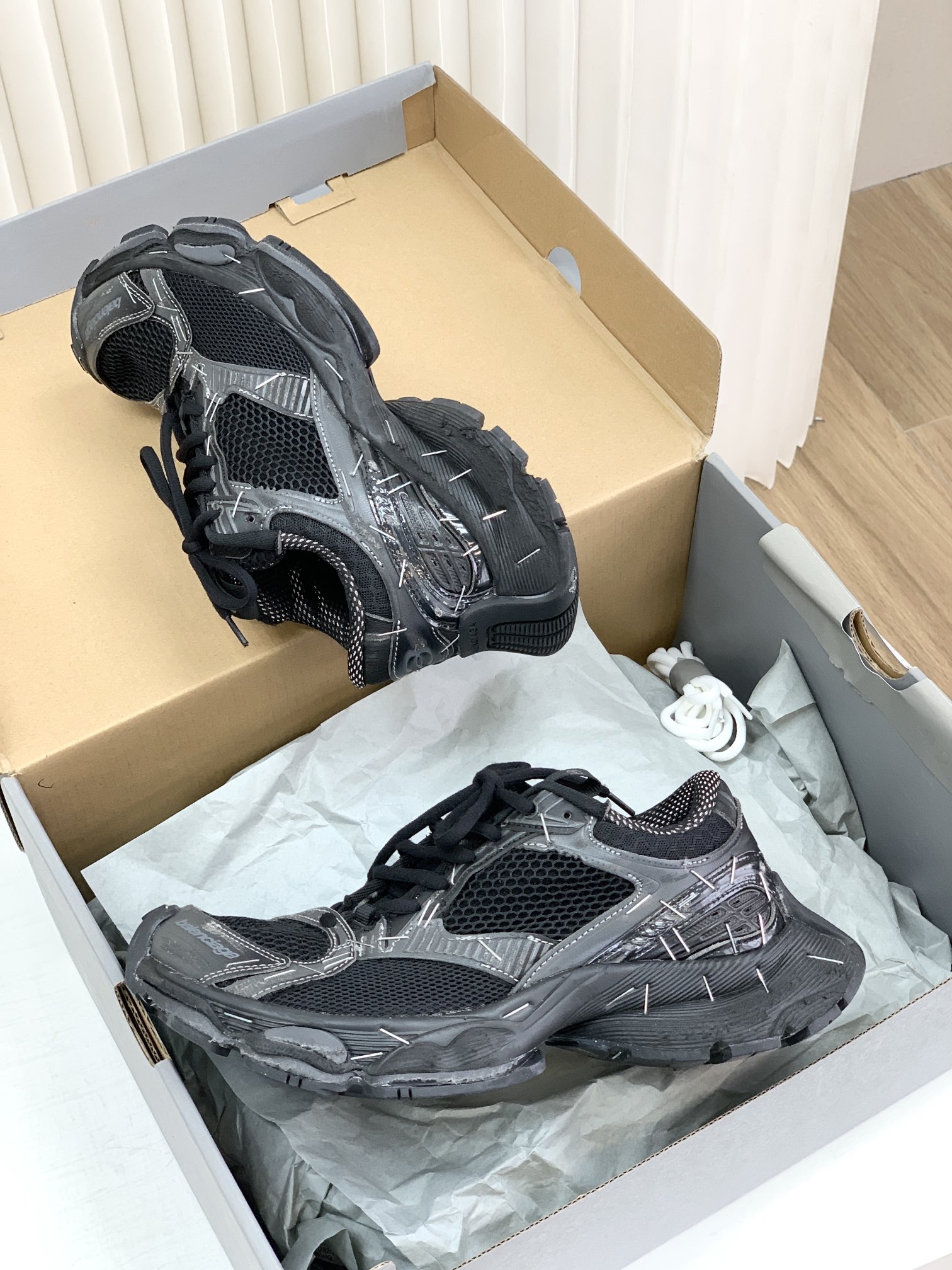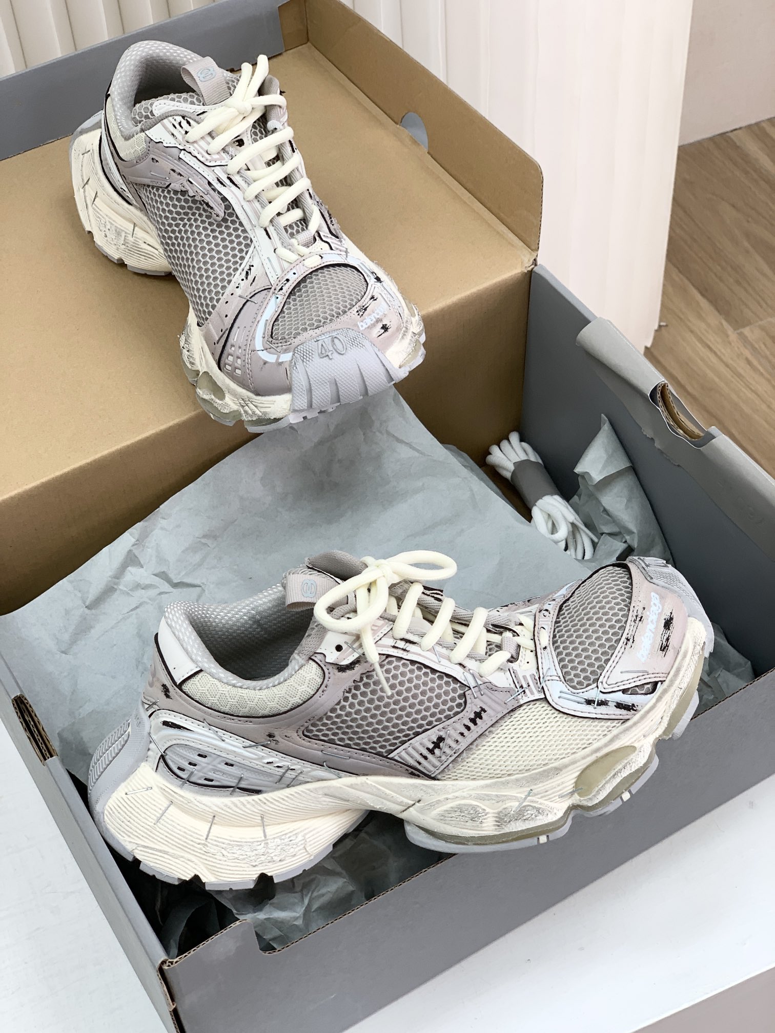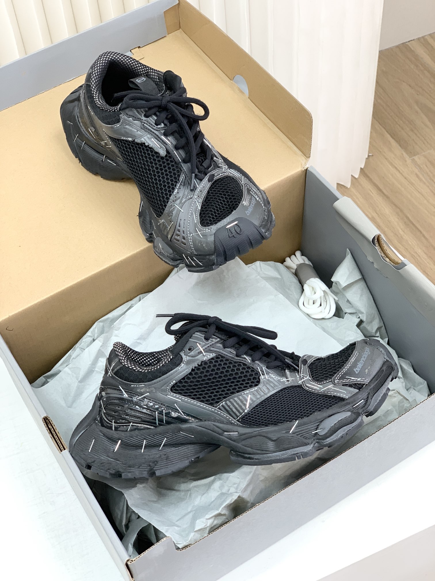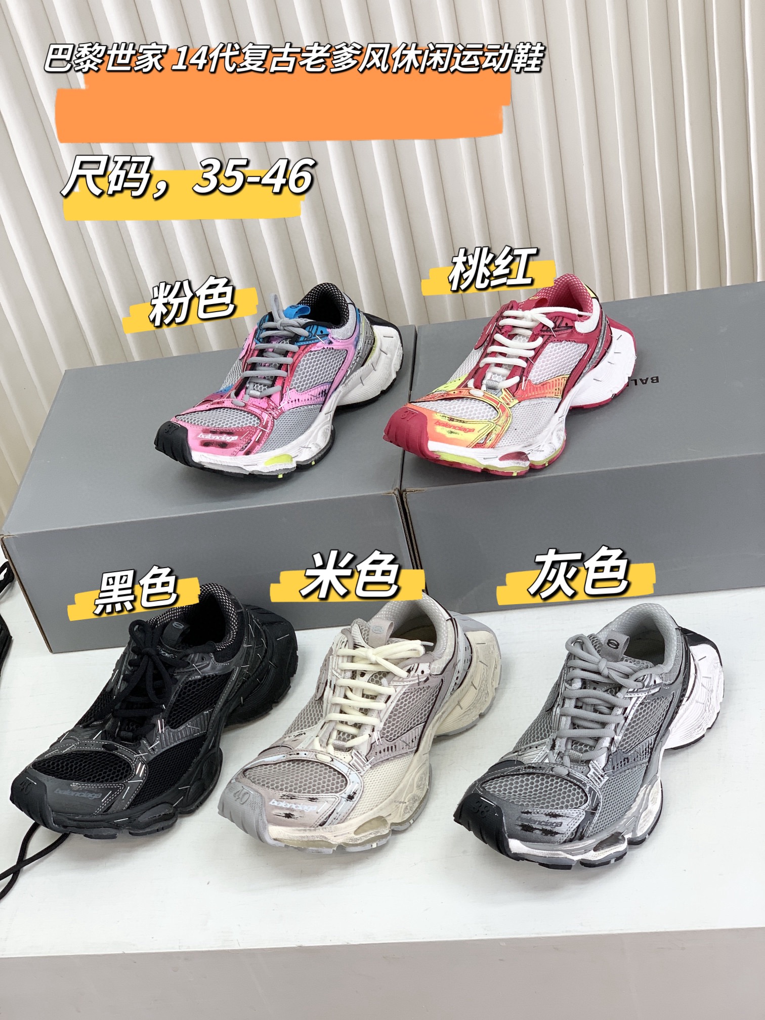 巴家,正单,顶级,官网同步,专柜橱窗款,Stapler Low Sneakers 订书机系列14代低帮复古阔型底姥爹风增高潮流百搭休闲慢跑鞋!!Bale&nciaga全新球鞋Balenciaga 3XL Sneakers作为2024春夏系列的新品登陆,这也是不少朋友们在这季最想入手的单品和球鞋作为品牌在 2024推出的新一代老爹鞋,新款的 3XL 继承了前辈 Balenciaga Runner 的复古跑设计语言,并加入了更具识别度的线条以及独特的鞋带造型,强烈的做旧效果,则延续了 Balenciaga 最为招牌的球鞋设计元素,而且据说在脚感上,这款3XL 做到了前几代老爹鞋都无法企及的轻量化以及极佳的舒适脚感!原盒包装,尺码,35 36 37 38 39 40 41 42 43 44 45 46 正码!