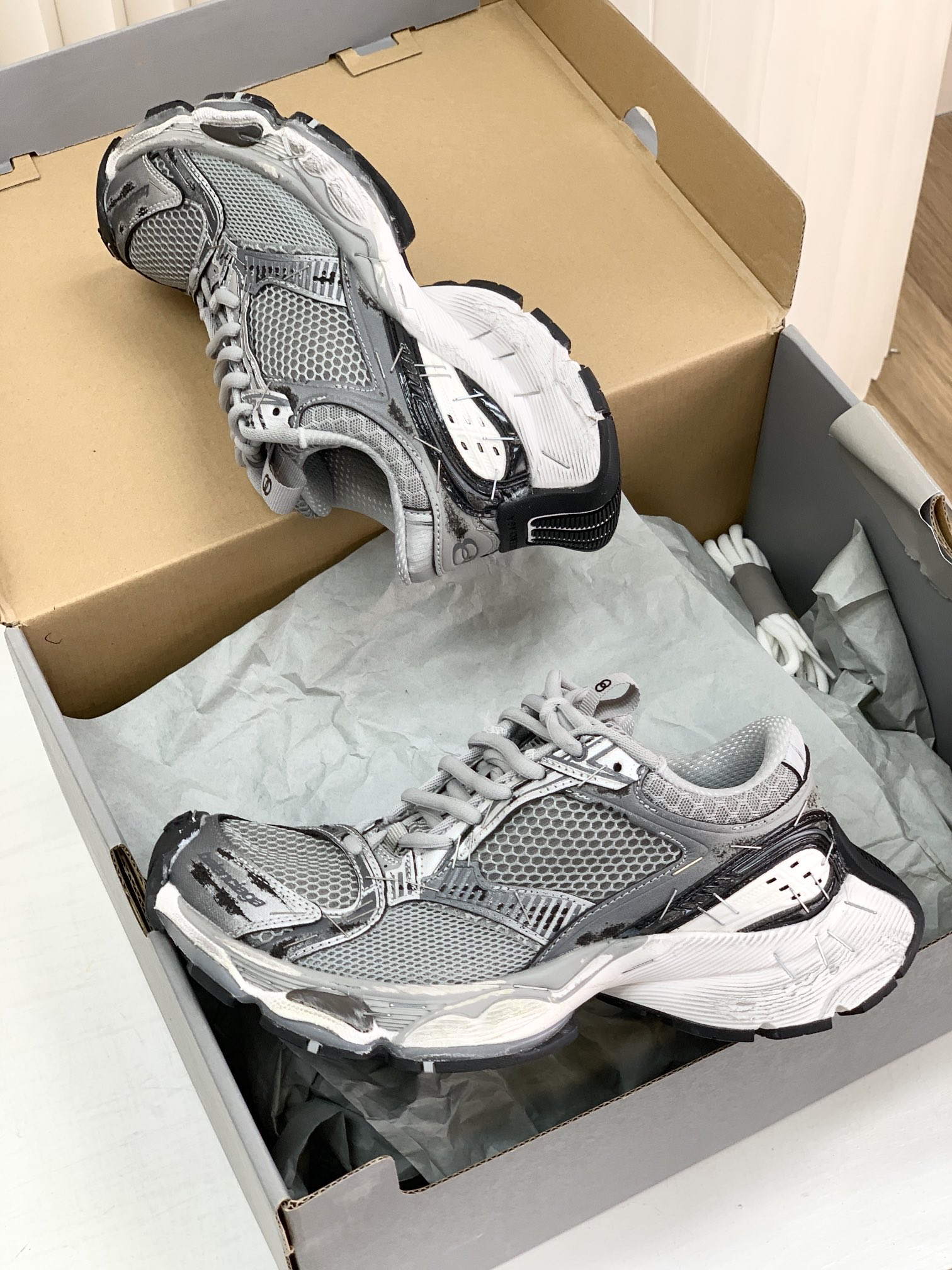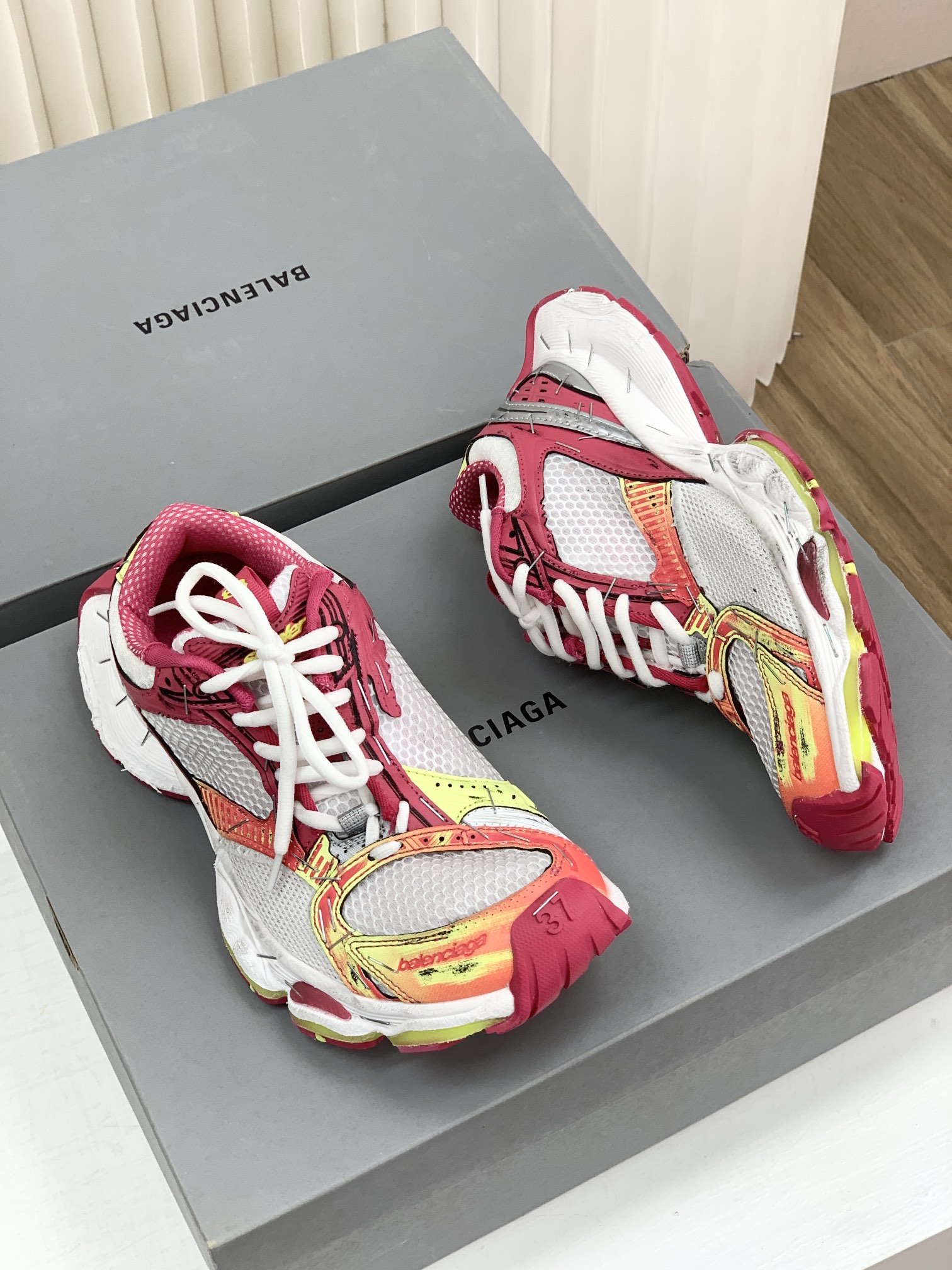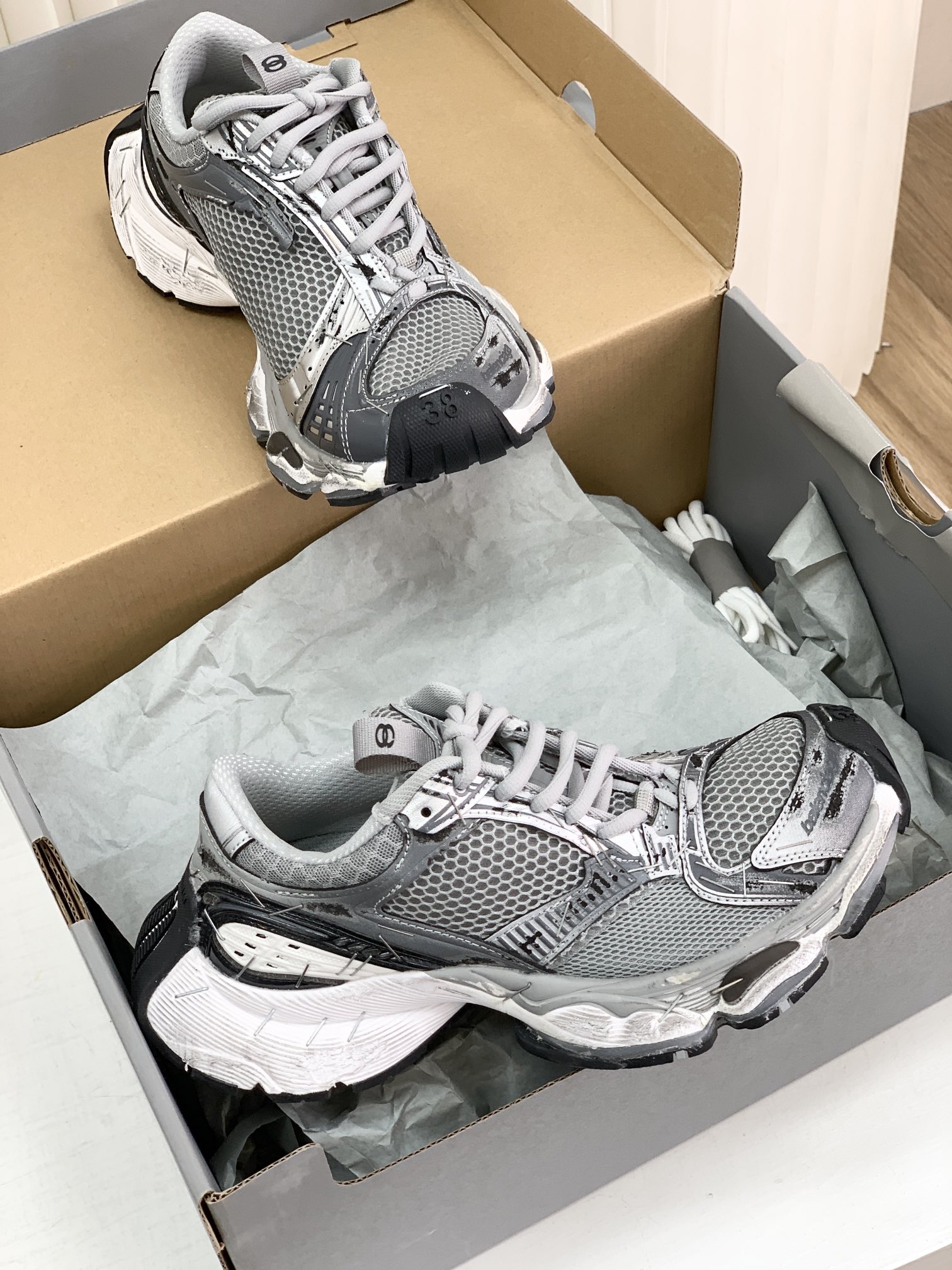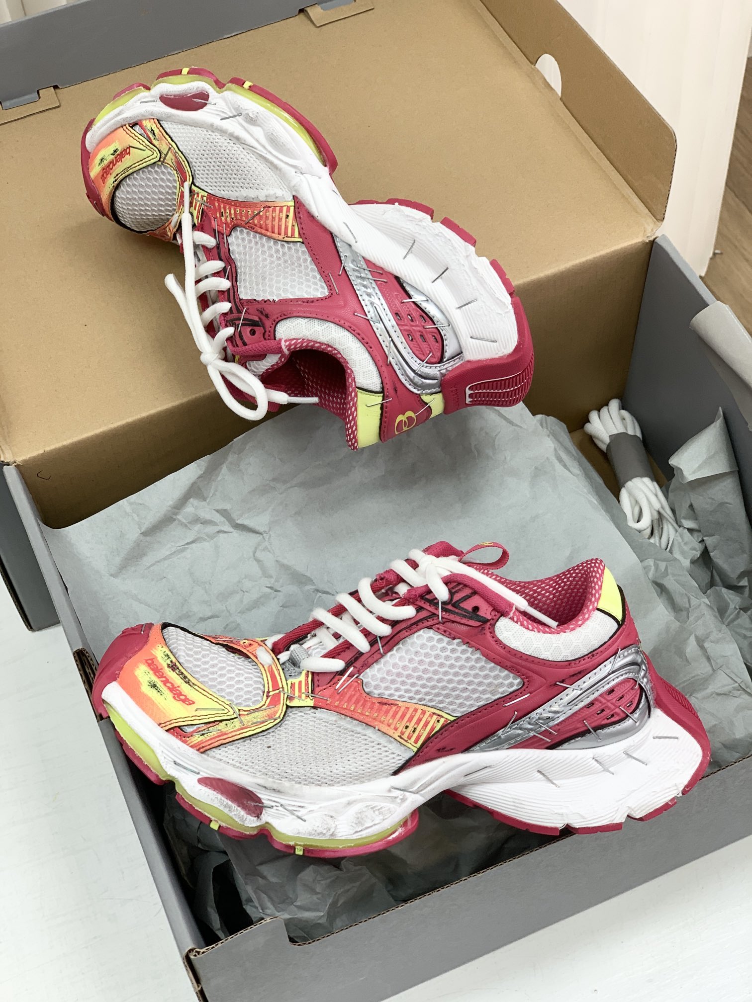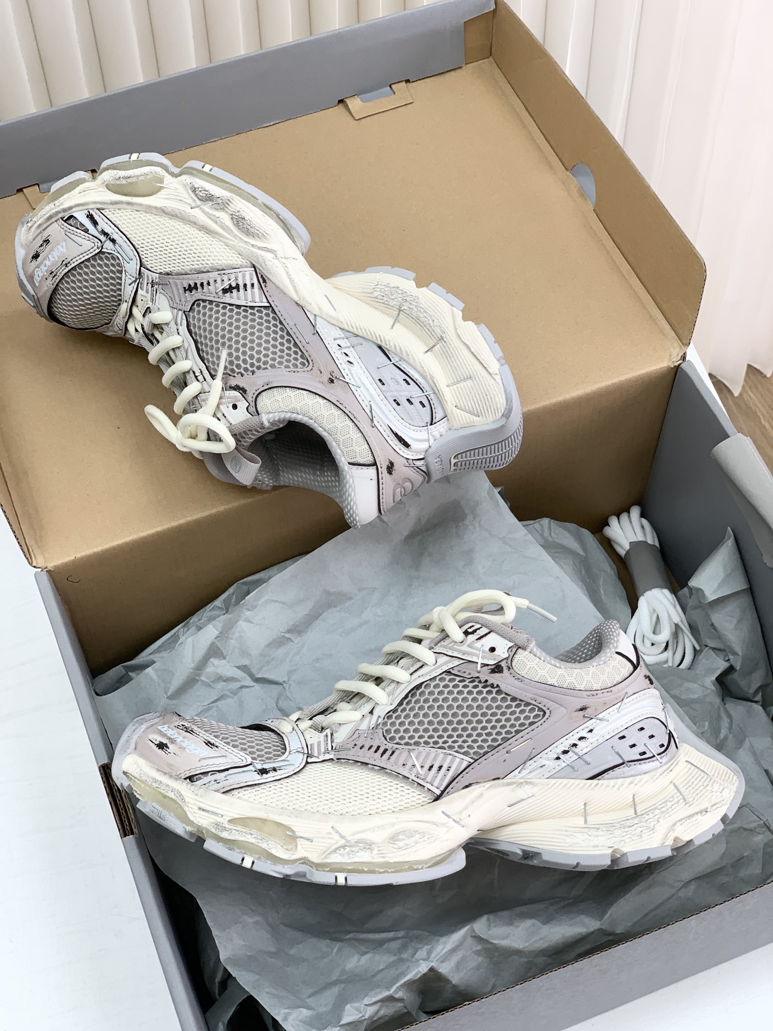巴家,正单,顶级,官网同步,专柜橱窗款,Stapler Low Sneakers 订书机系列14代低帮复古阔型底姥爹风增高潮流百搭休闲慢跑鞋!!Bale&nciaga全新球鞋Balenciaga 3XL Sneakers作为2024春夏系列的新品登陆,这也是不少朋友们在这季最想入手的单品和球鞋作为品牌在 2024推出的新一代老爹鞋,新款的 3XL 继承了前辈 Balenciaga Runner 的复古跑设计语言,并加入了更具识别度的线条以及独特的鞋带造型,强烈的做旧效果,则延续了 Balenciaga 最为招牌的球鞋设计元素,而且据说在脚感上,这款3XL 做到了前几代老爹鞋都无法企及的轻量化以及极佳的舒适脚感!原盒包装,尺码,35 36 37 38 39 40 41 42 43 44 45 46 正码!