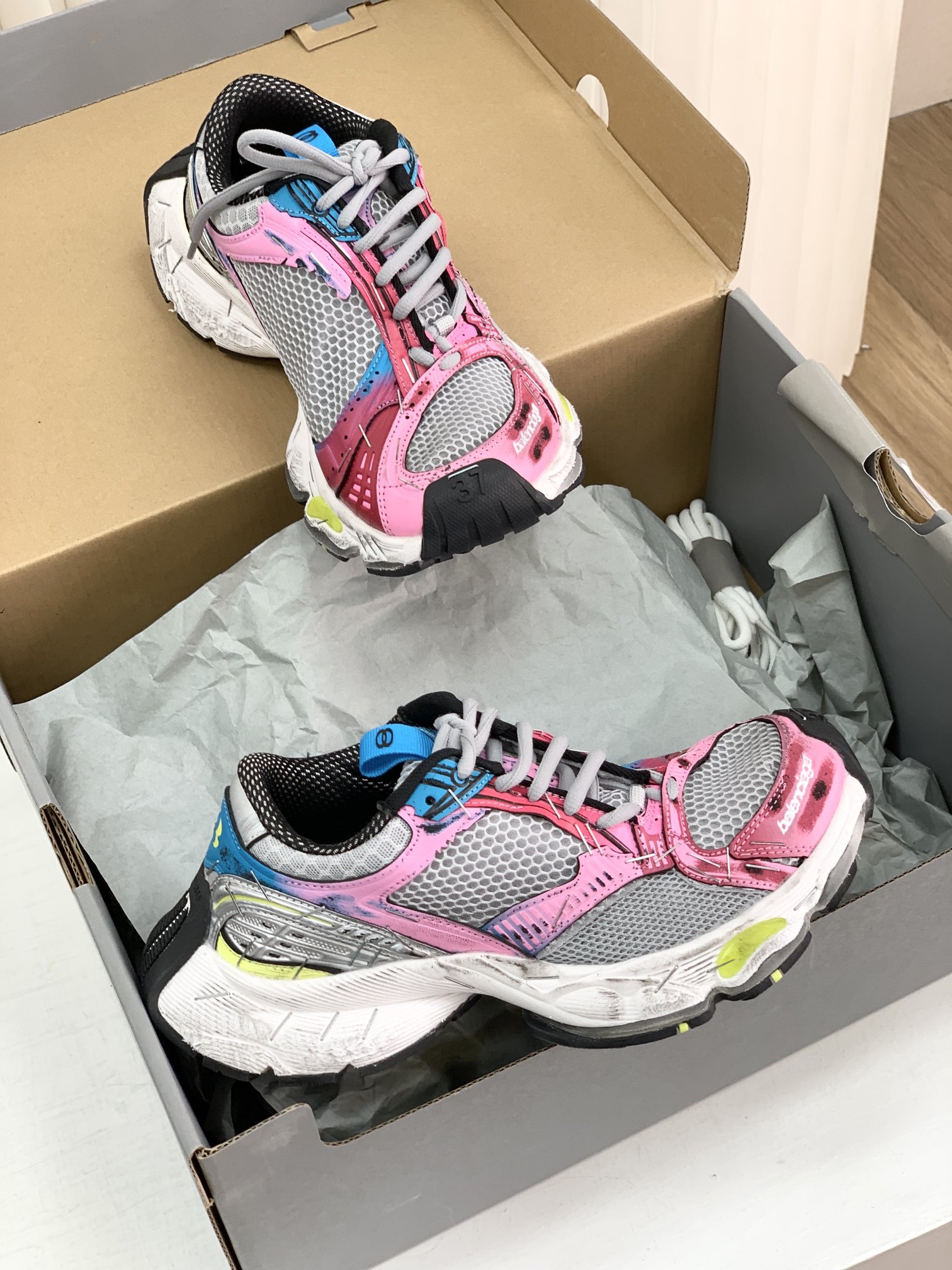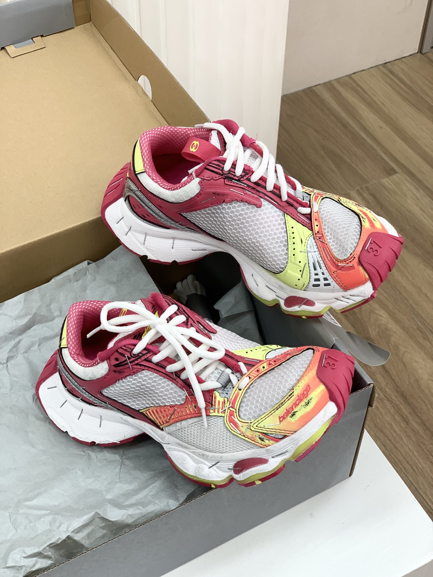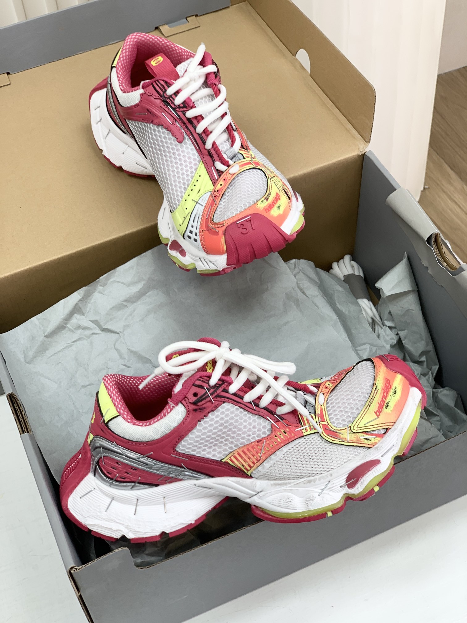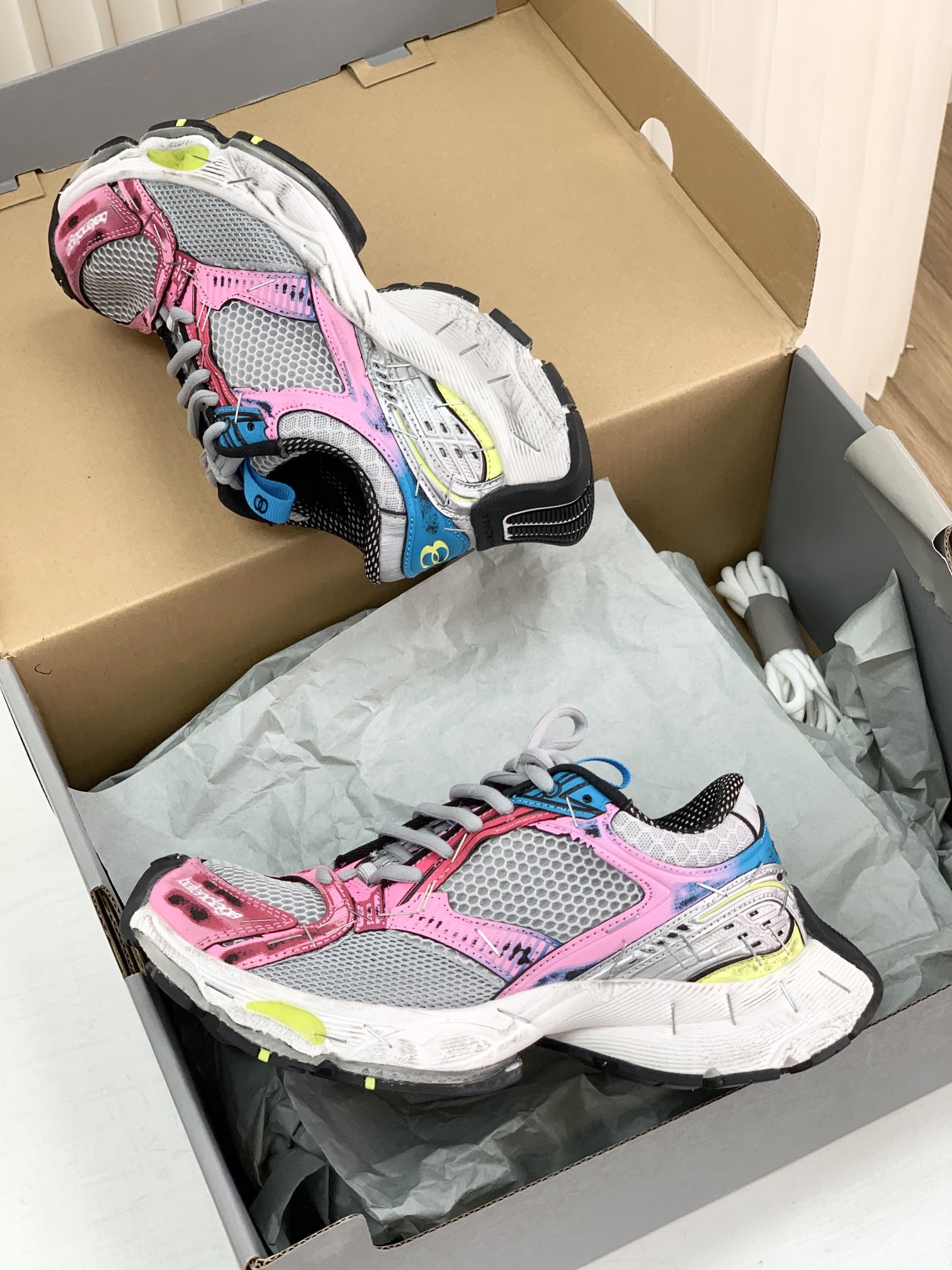巴家,正单,顶级,官网同步,专柜橱窗款,Stapler Low Sneakers 订书机系列14代低帮复古阔型底姥爹风增高潮流百搭休闲慢跑鞋!!Bale&nciaga全新球鞋Balenciaga 3XL Sneakers作为2024春夏系列的新品登陆,这也是不少朋友们在这季最想入手的单品和球鞋作为品牌在 2024推出的新一代老爹鞋,新款的 3XL 继承了前辈 Balenciaga Runner 的复古跑设计语言,并加入了更具识别度的线条以及独特的鞋带造型,强烈的做旧效果,则延续了 Balenciaga 最为招牌的球鞋设计元素,而且据说在脚感上,这款3XL 做到了前几代老爹鞋都无法企及的轻量化以及极佳的舒适脚感!原盒包装,尺码,35 36 37 38 39 40 41 42 43 44 45 46 正码!