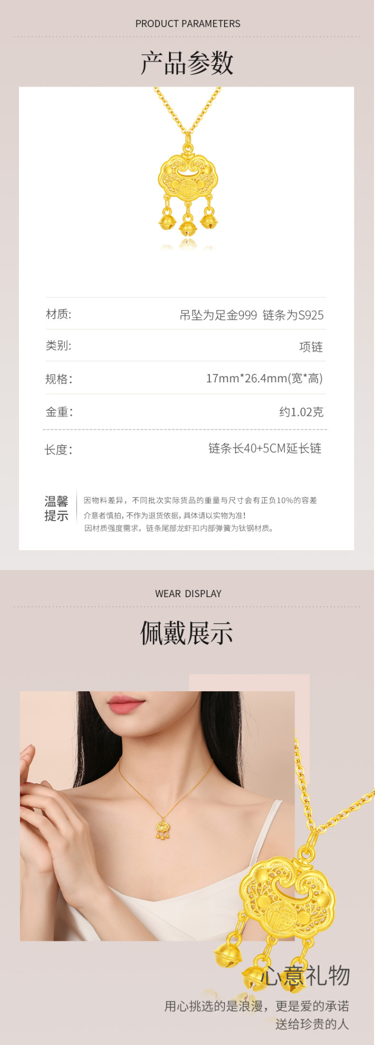 Winy990纯银平安如懿锁项链送女友闺蜜节日生日礼物