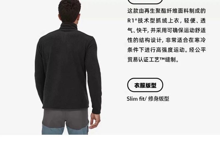 24升级款Patagonia R1 air 压胶口袋半拉链中间层抓绒衣内搭!