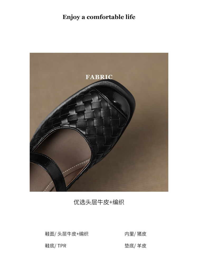 【鞋面材质】头层牛皮+编织