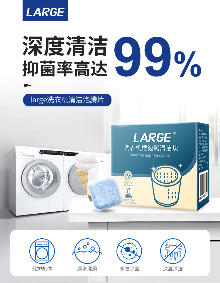 【买三送二】洗衣机槽清洁泡腾块,清空洗衣机10年污垢!99%去除洗衣机垃圾除污防垢祛除异味