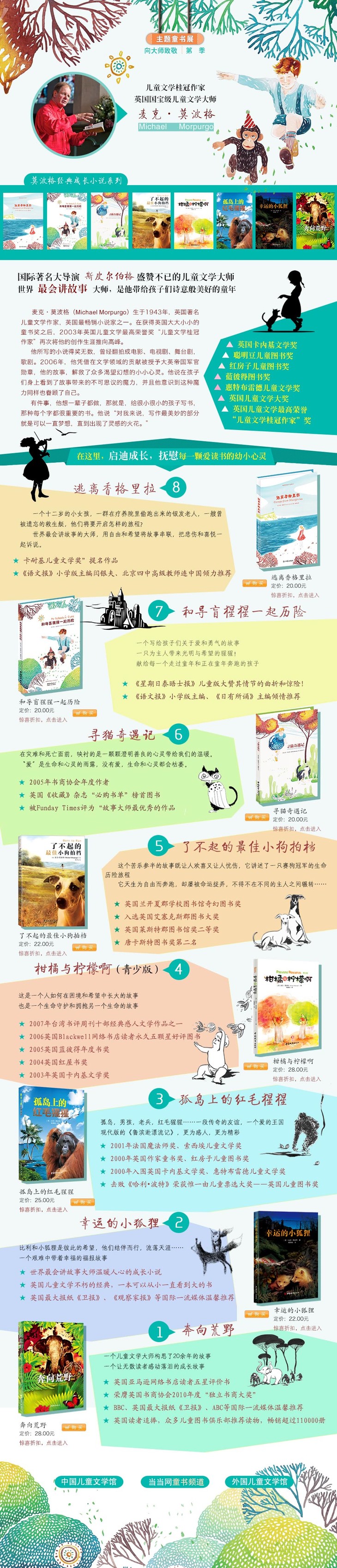 英国儿童桂冠作家麦克·莫波格以温情优美、细腻饱满的笔触,娓娓道出一段段美好纯真的传奇友谊,讲述一个个关于亲情、友谊、成长、爱、困境、勇气、坚强完美交融的暖调故事,打动无数读者的心灵。