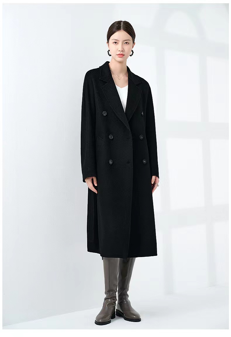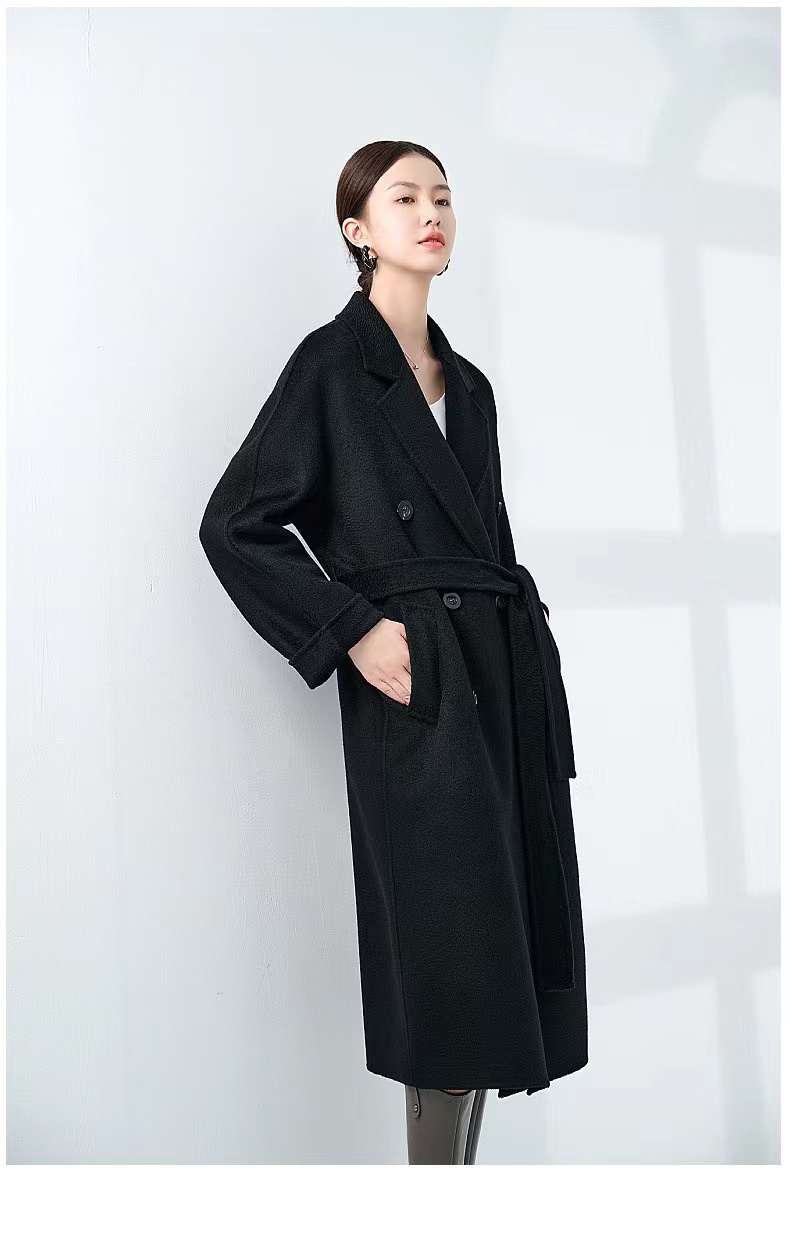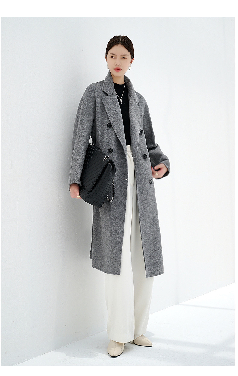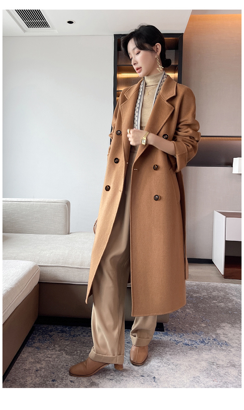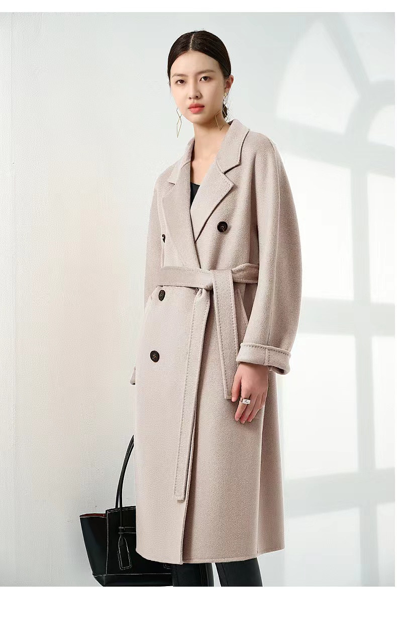 【à perles】高端100%双面山羊绒 手缝双排扣系带长款羊绒大衣【5个工作日,已知可换一次尺码,不可退货】