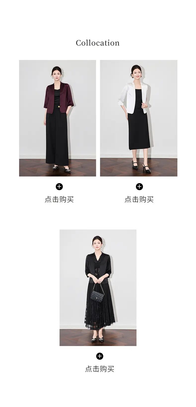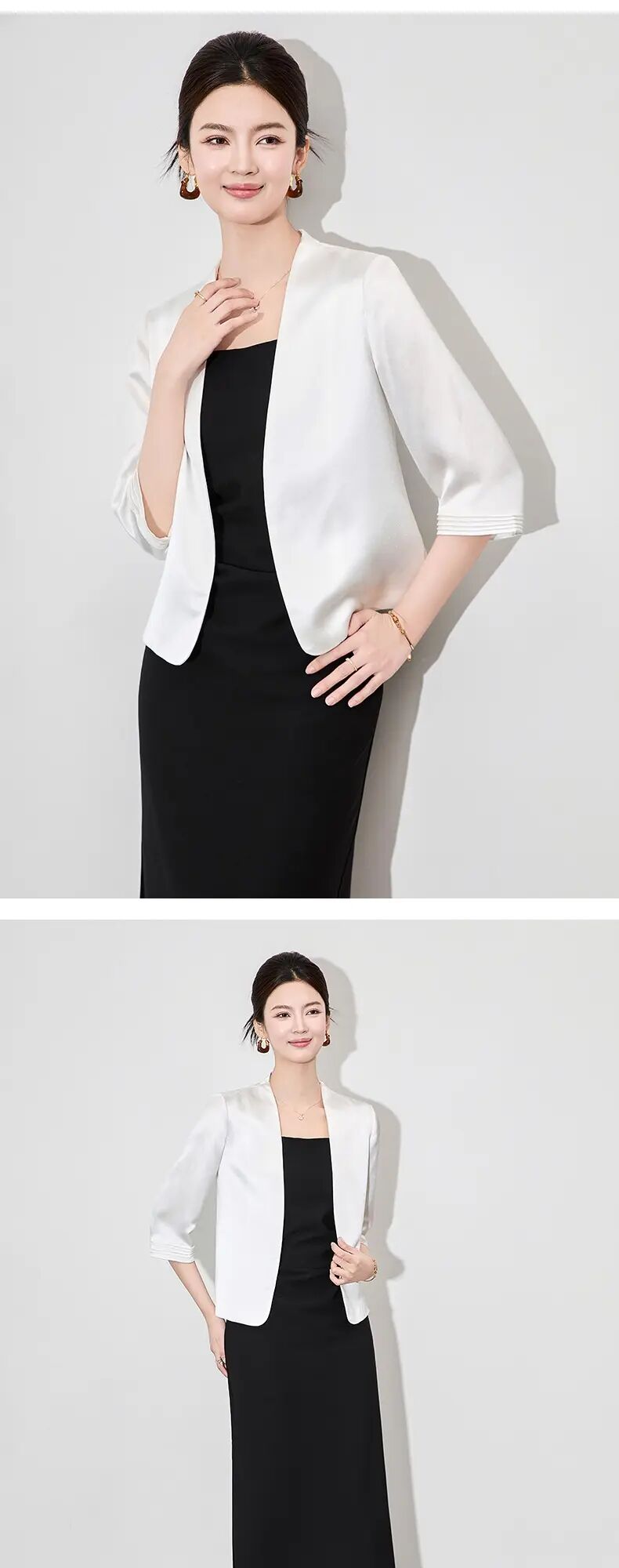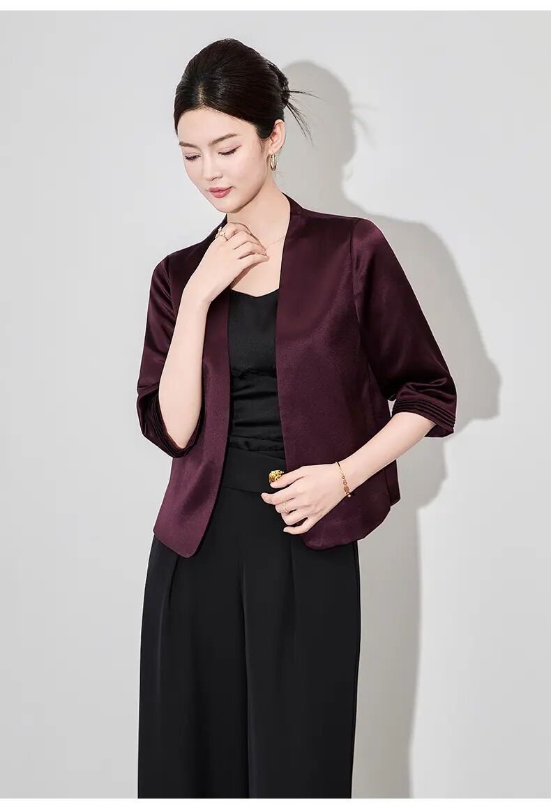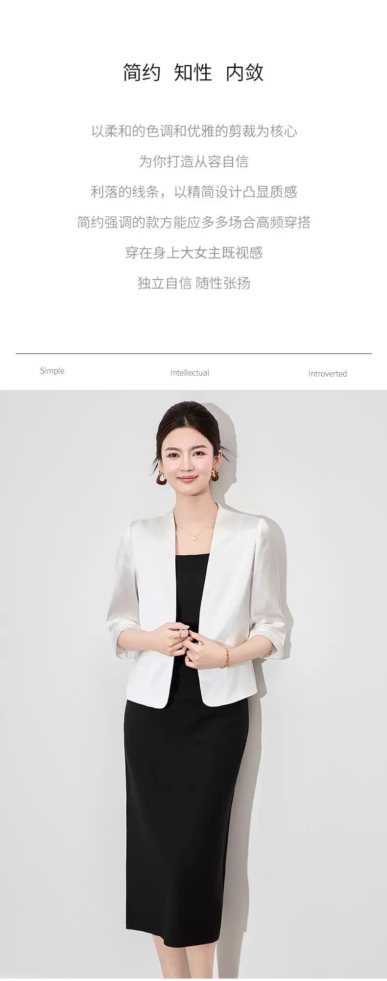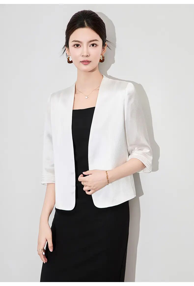 【高货wl】全新升级【铂金会员330/天猫449/差价119】(95932) 洛诗琳春夏新款简约时尚通勤无领醋酸缎纯色西装外套上衣