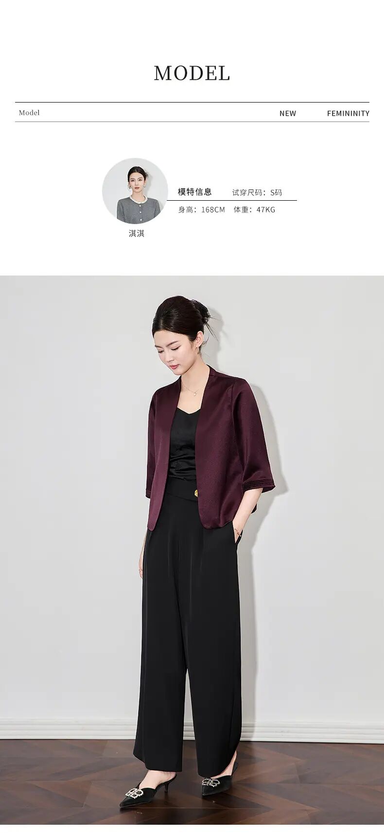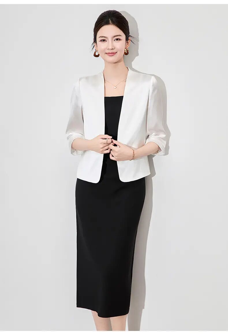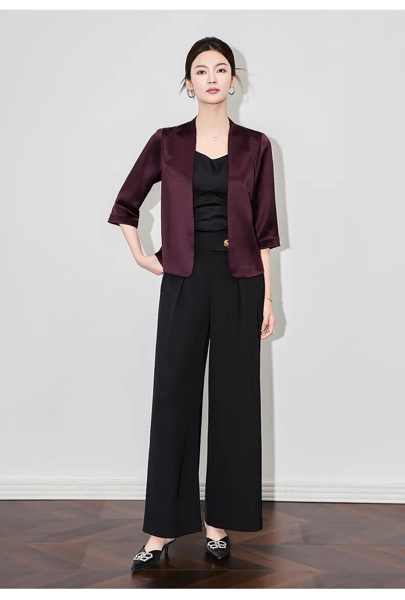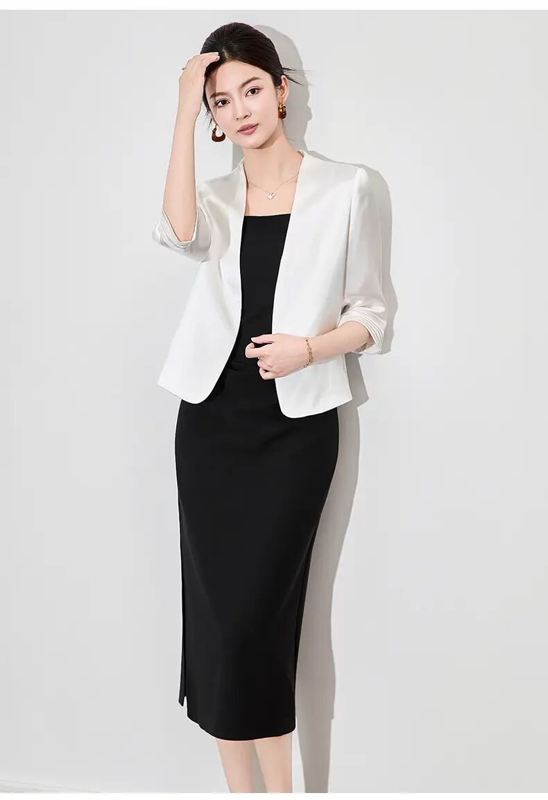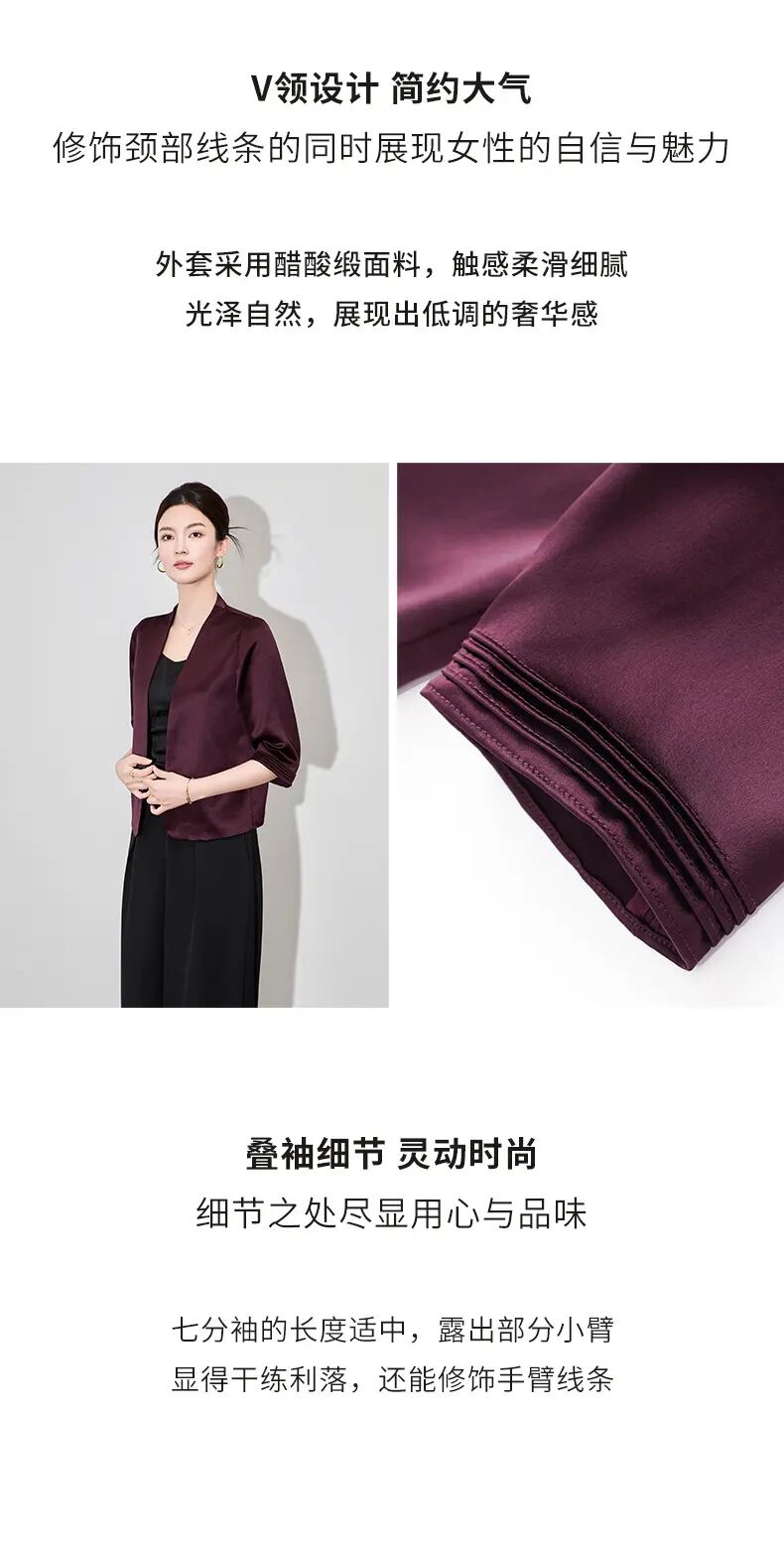 【高货wl】全新升级【铂金会员330/天猫449/差价119】(95932) 洛诗琳春夏新款简约时尚通勤无领醋酸缎纯色西装外套上衣
