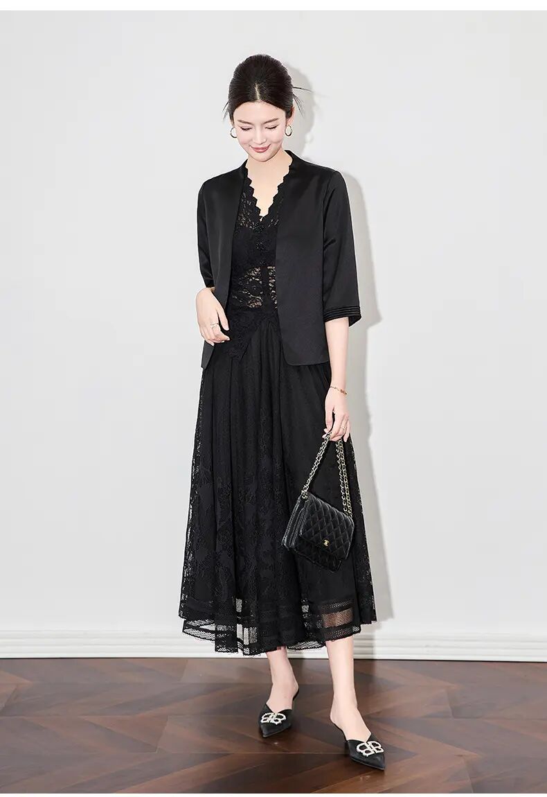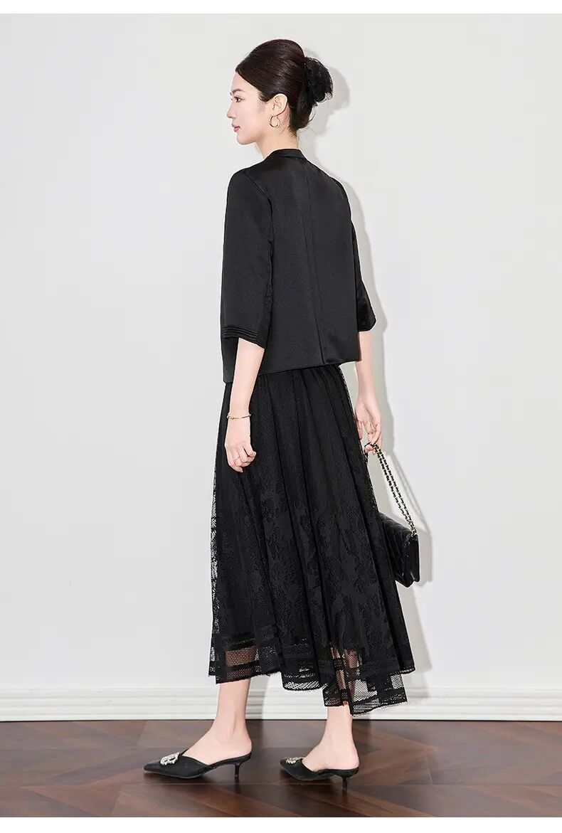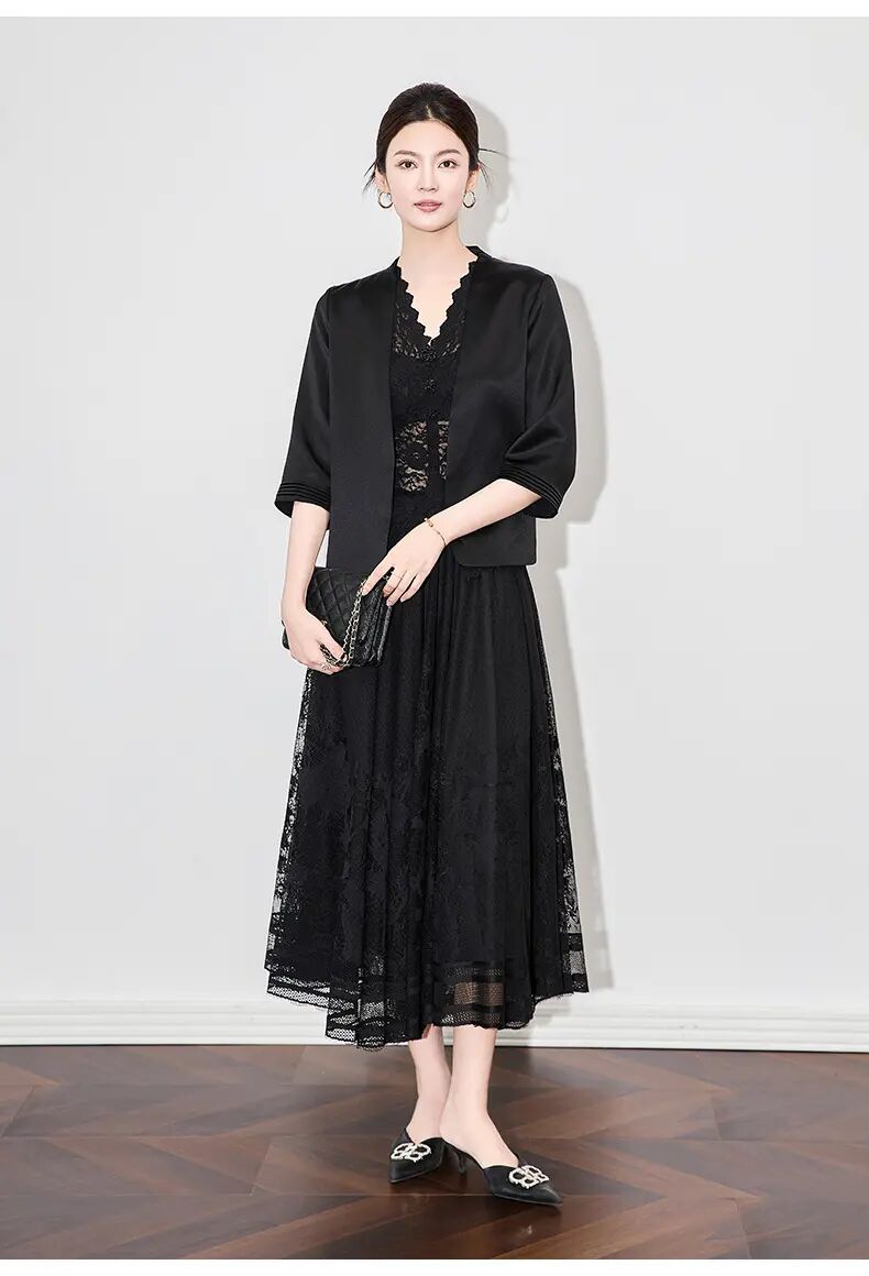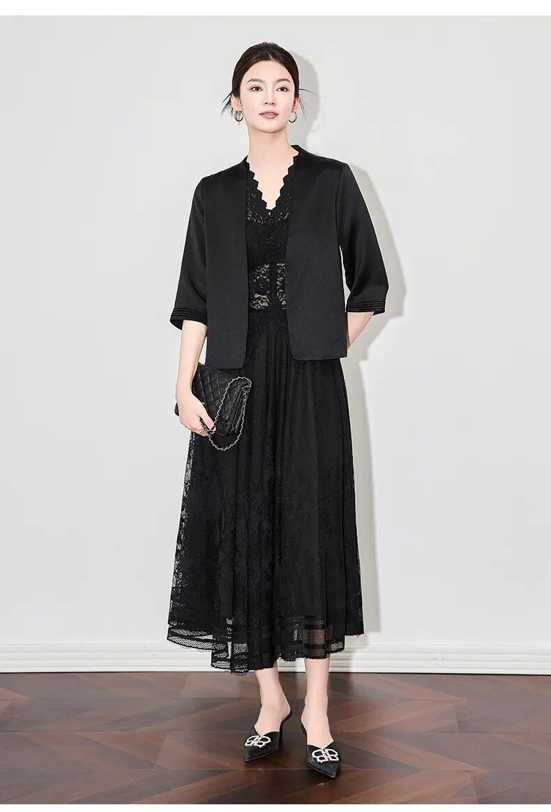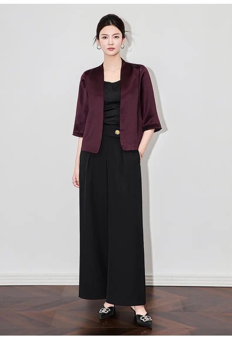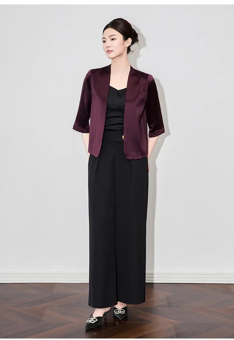 【高货wl】全新升级【铂金会员330/天猫449/差价119】(95932) 洛诗琳春夏新款简约时尚通勤无领醋酸缎纯色西装外套上衣
