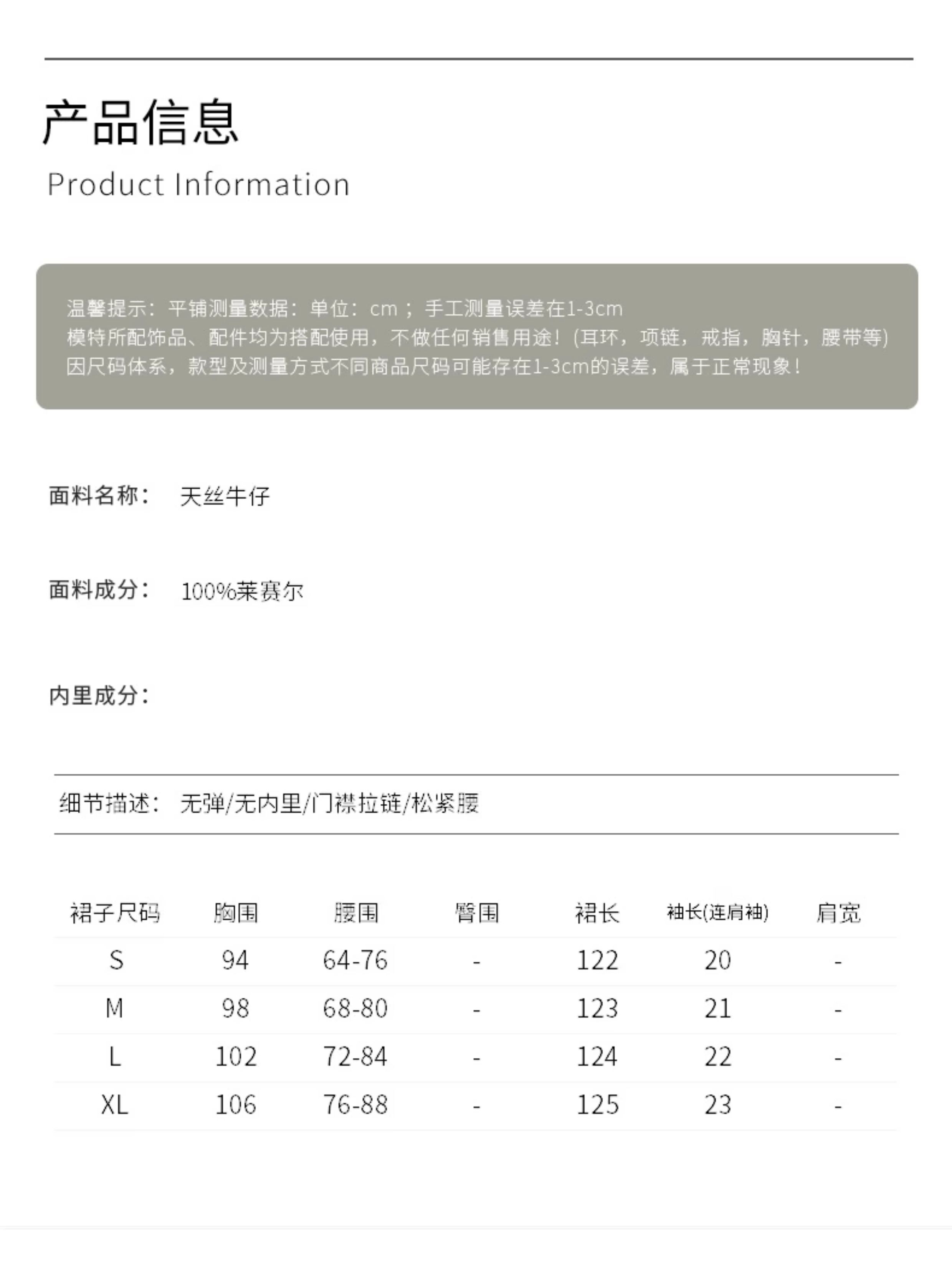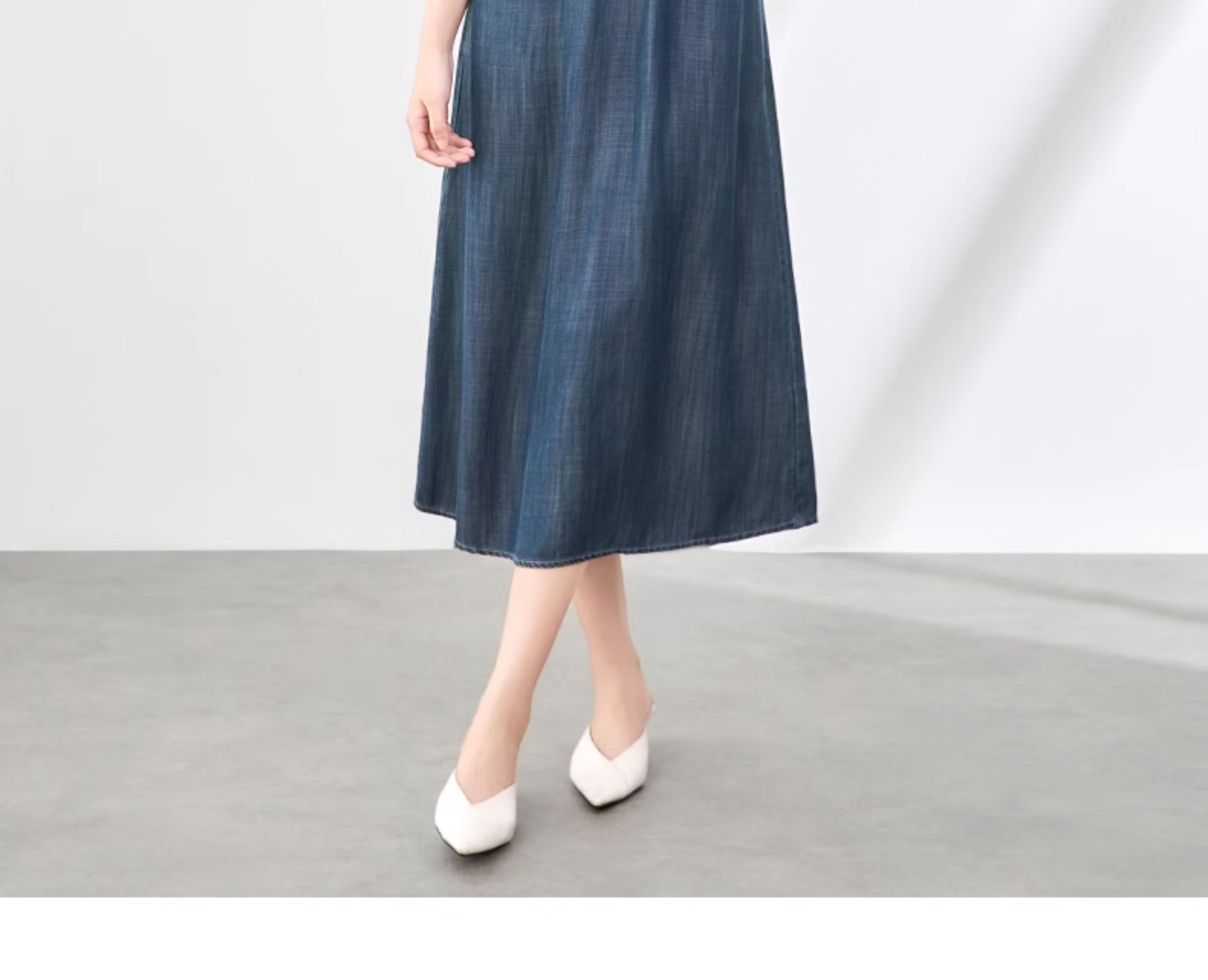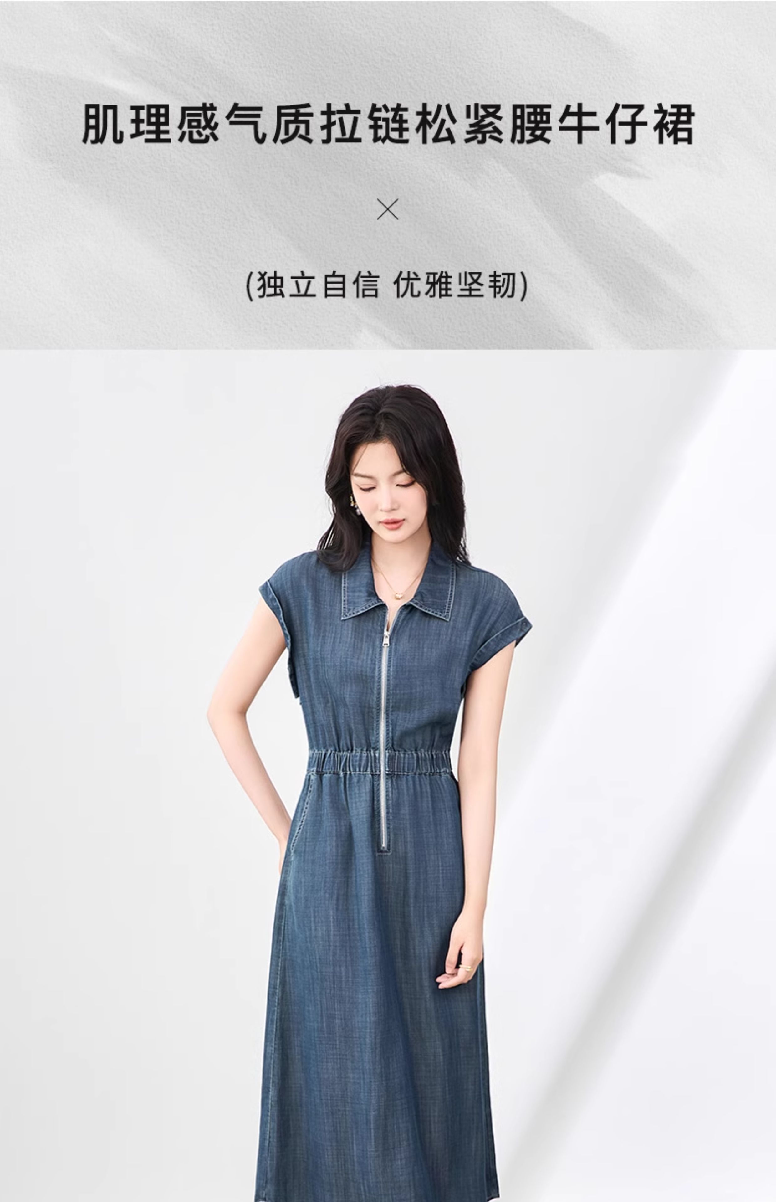 「高货wl」全新升级【铂金会员339/天猫459/差价120】(31604)洛诗琳气质莱赛尔牛仔连衣裙2025夏季通勤收腰显瘦长裙