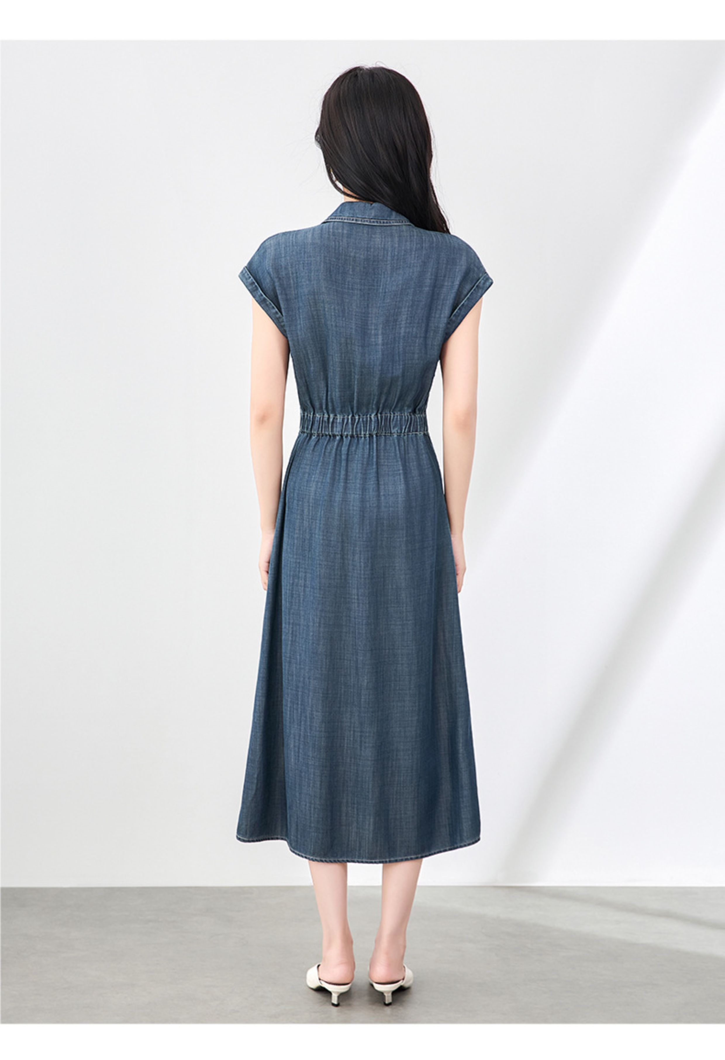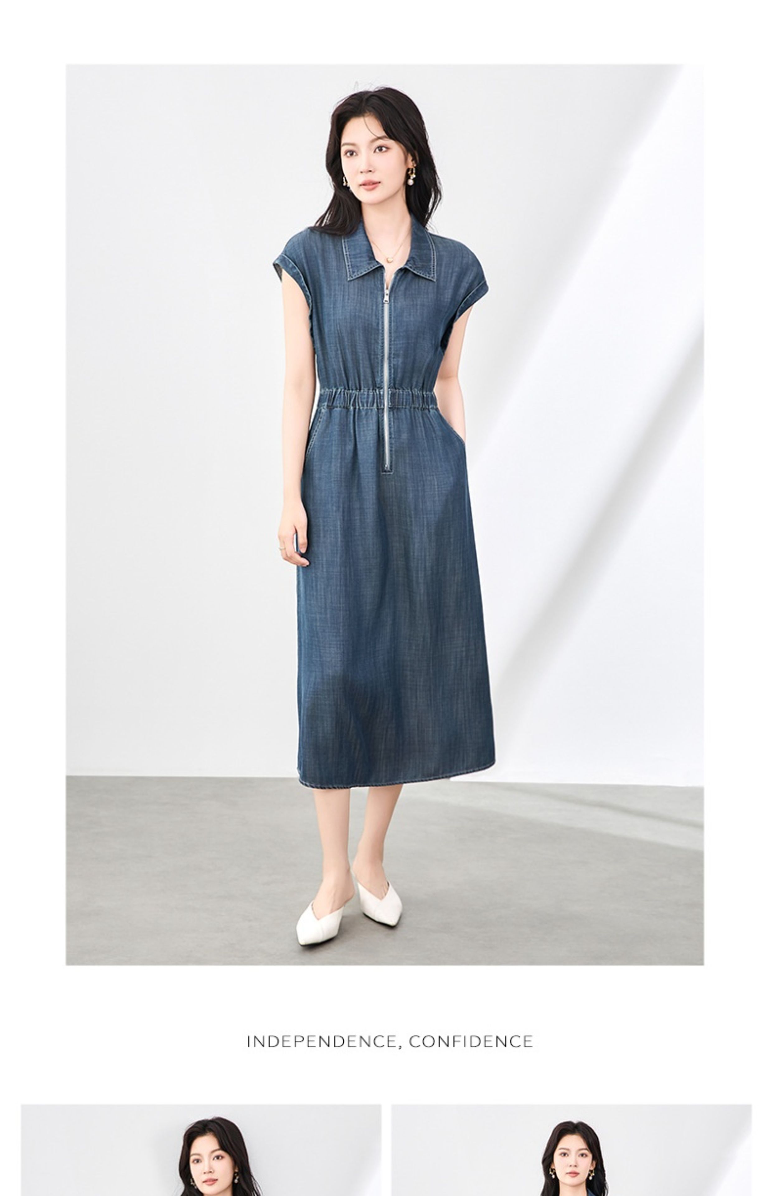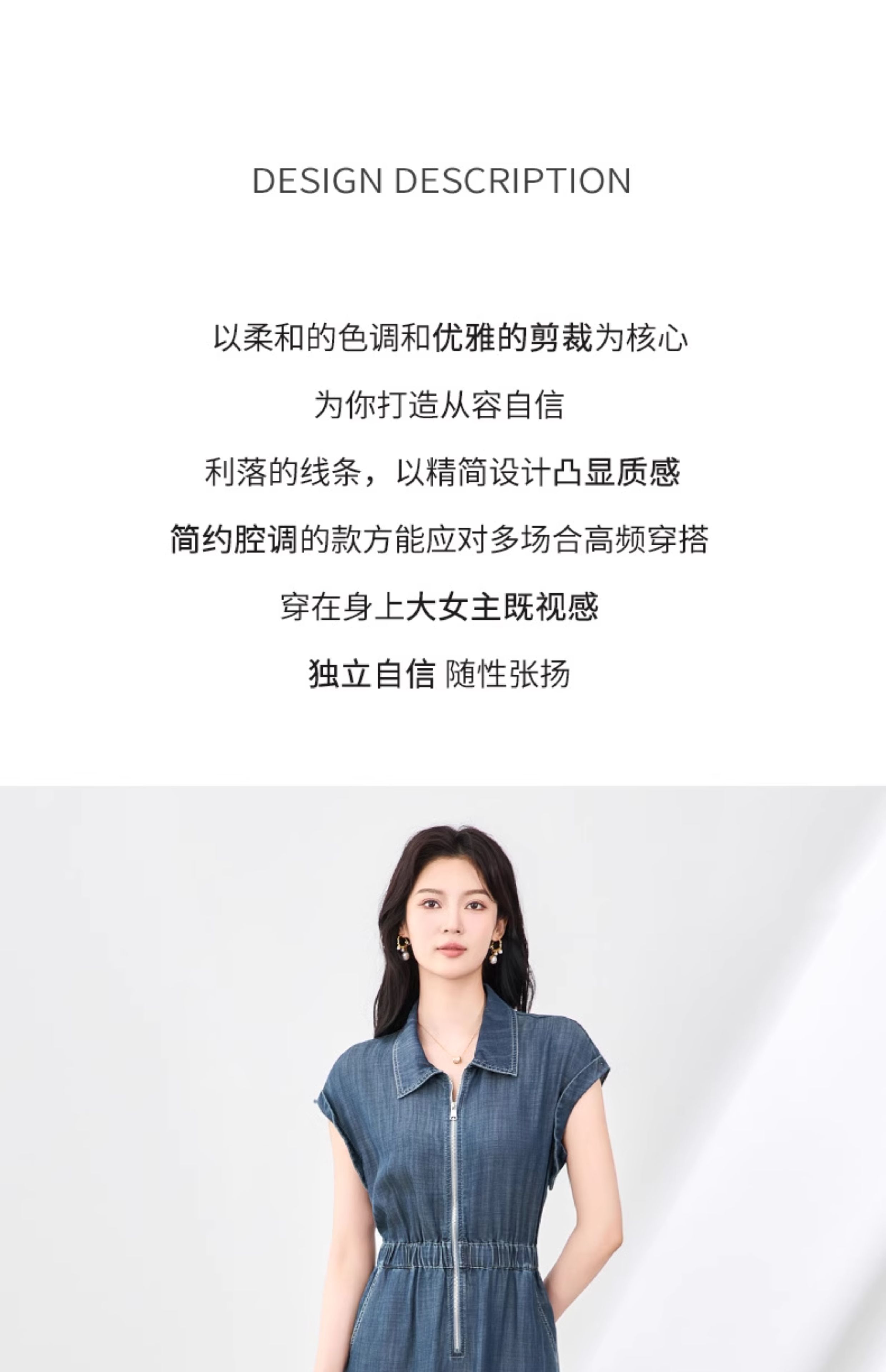 「高货wl」全新升级【铂金会员339/天猫459/差价120】(31604)洛诗琳气质莱赛尔牛仔连衣裙2025夏季通勤收腰显瘦长裙
