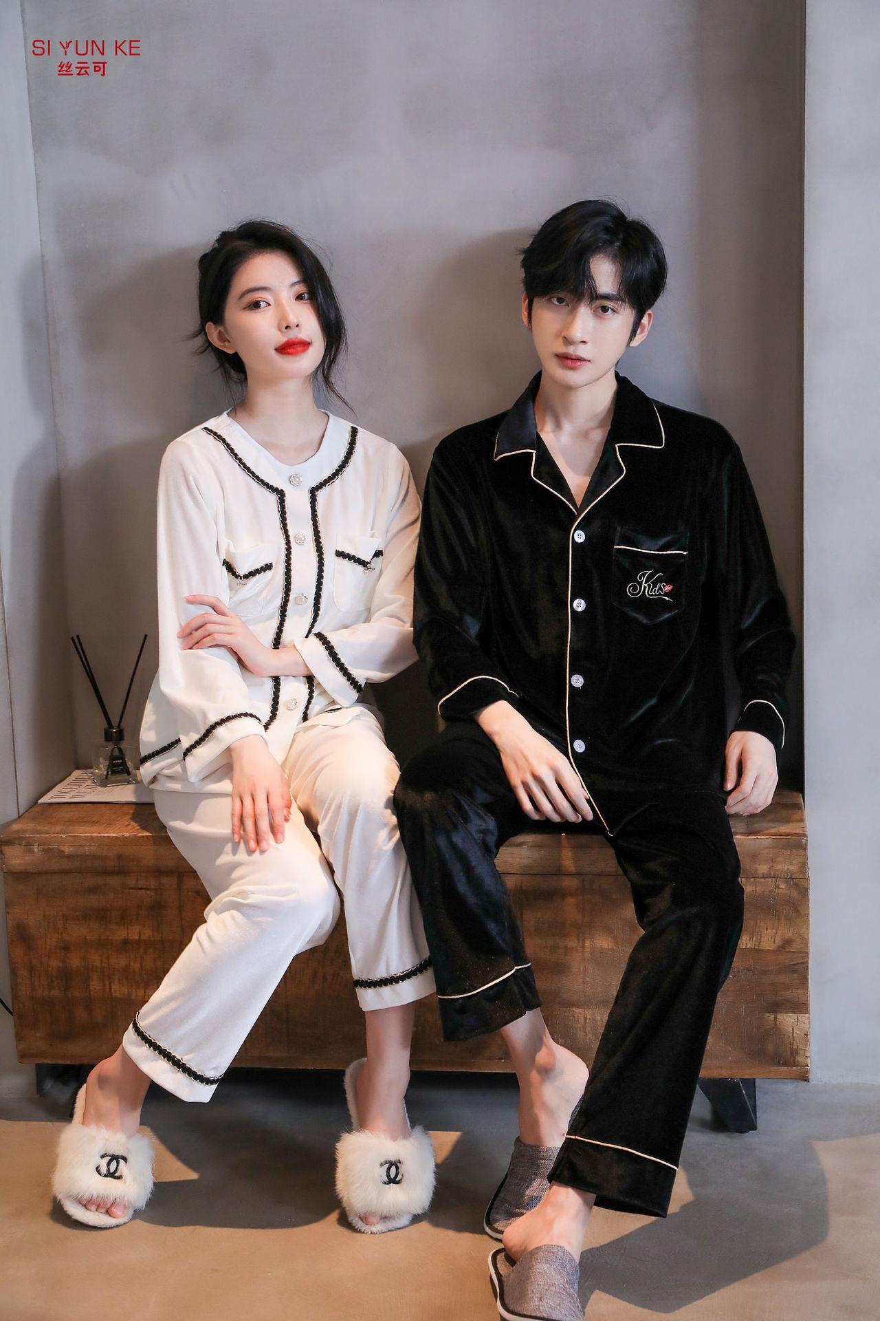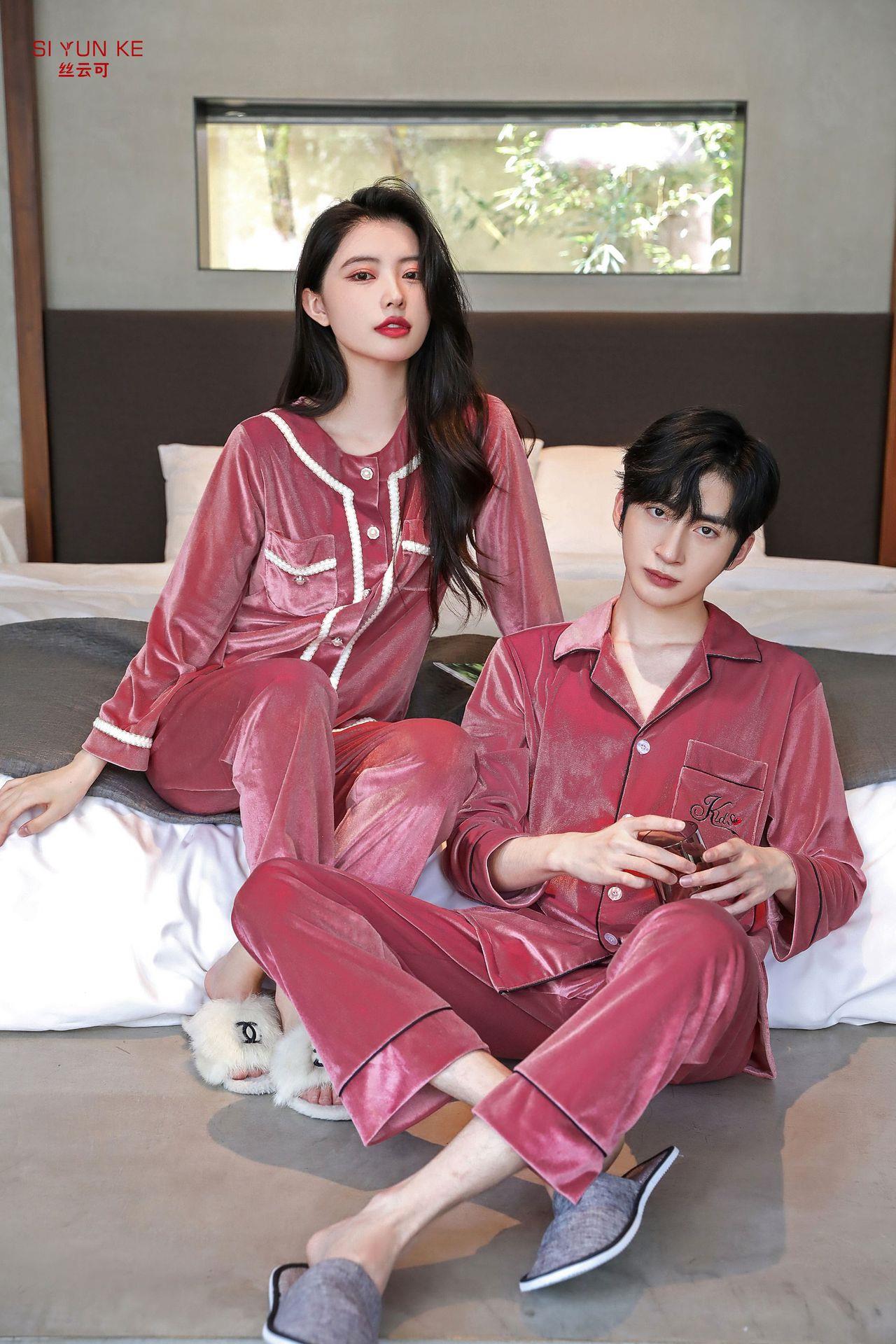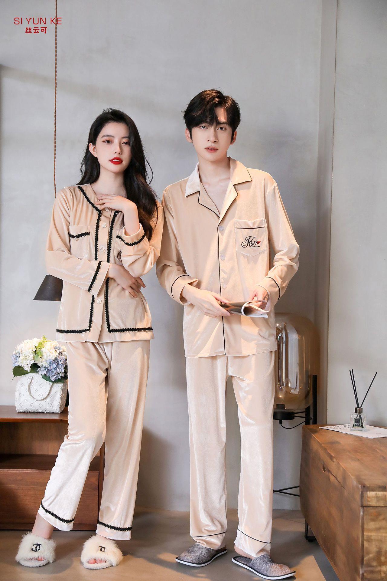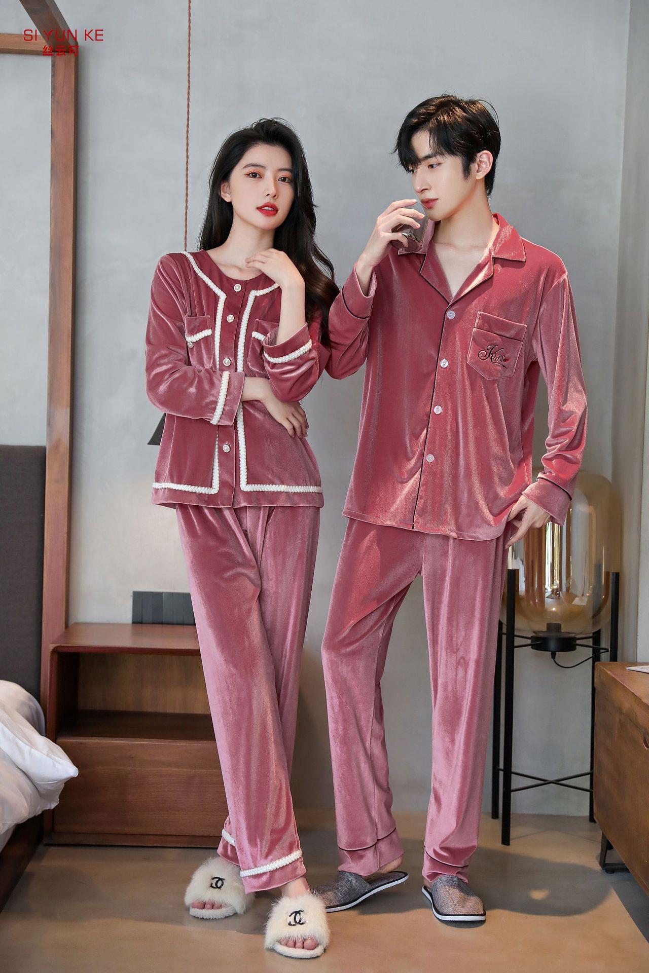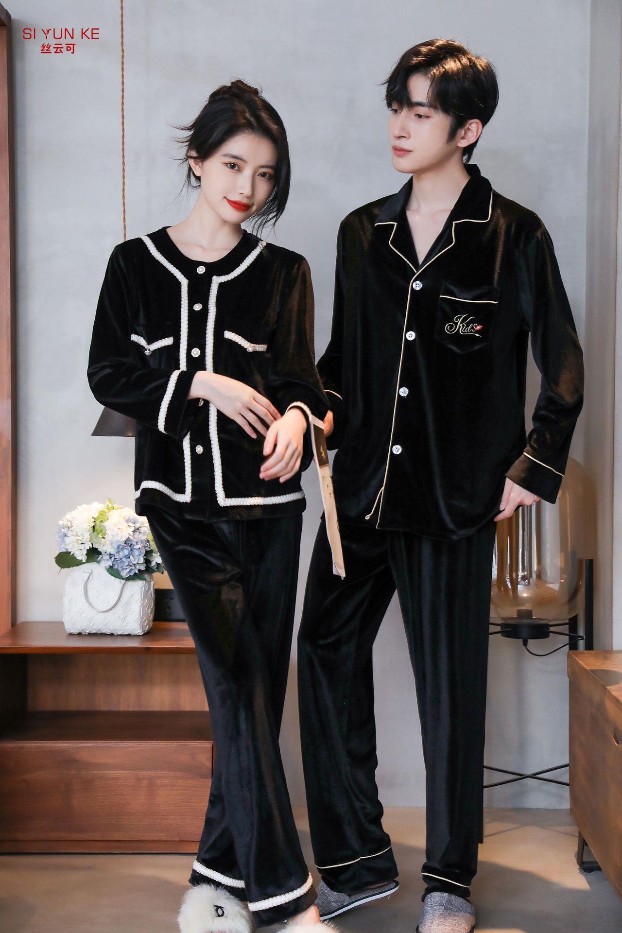 高定年代【金丝绒情侣家居服】秋冬女款加厚开衫大码套装长袖可外穿男女士家居服