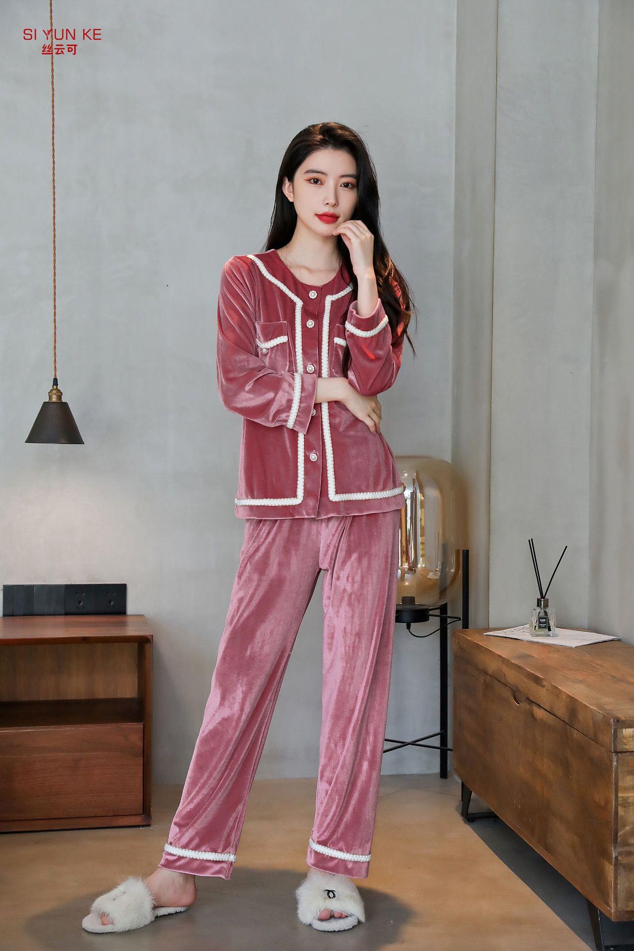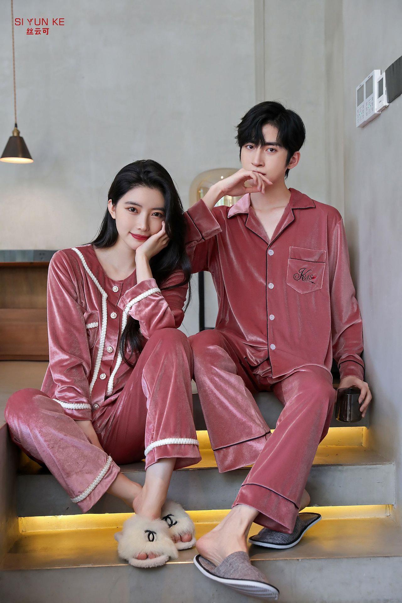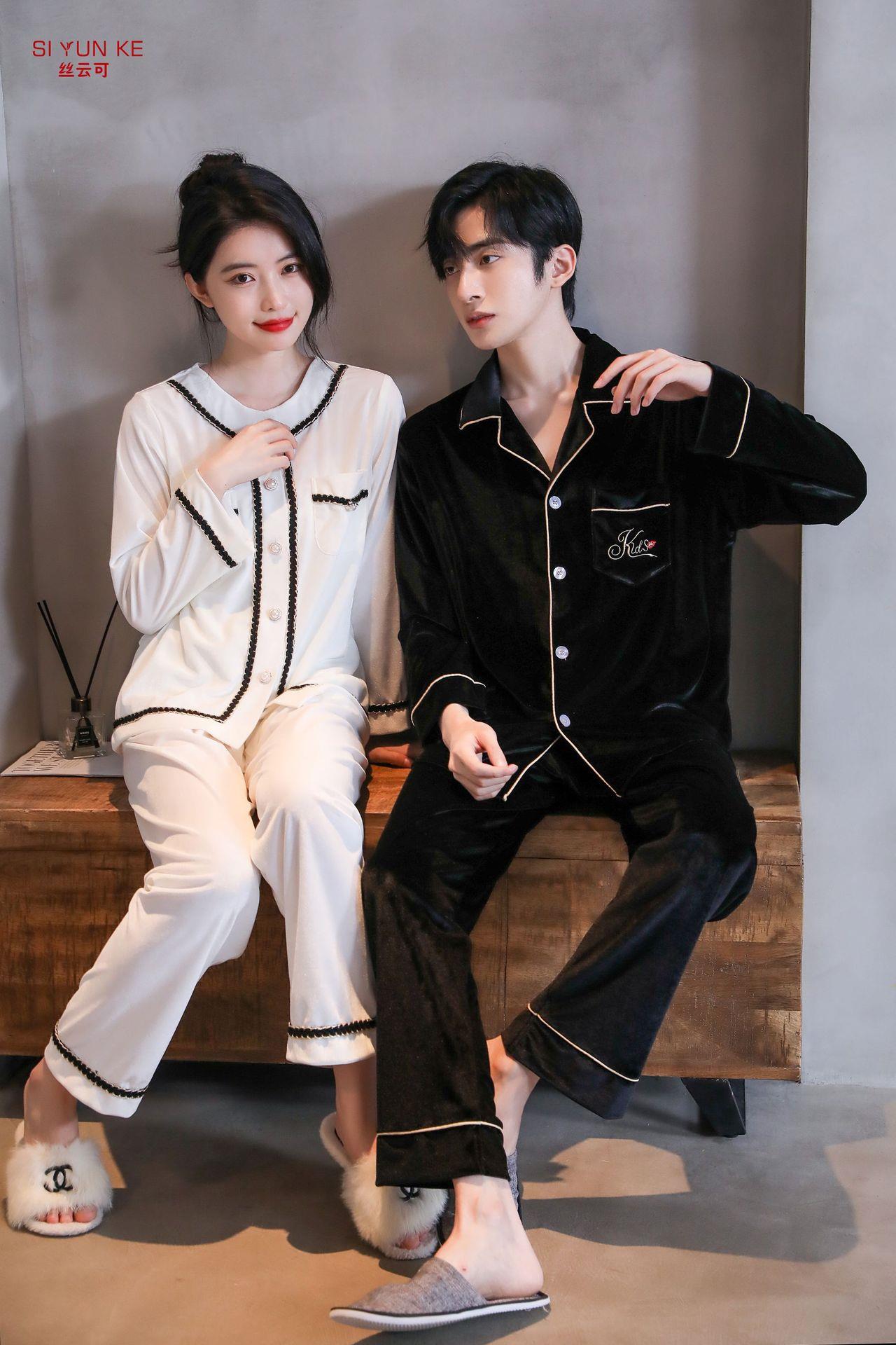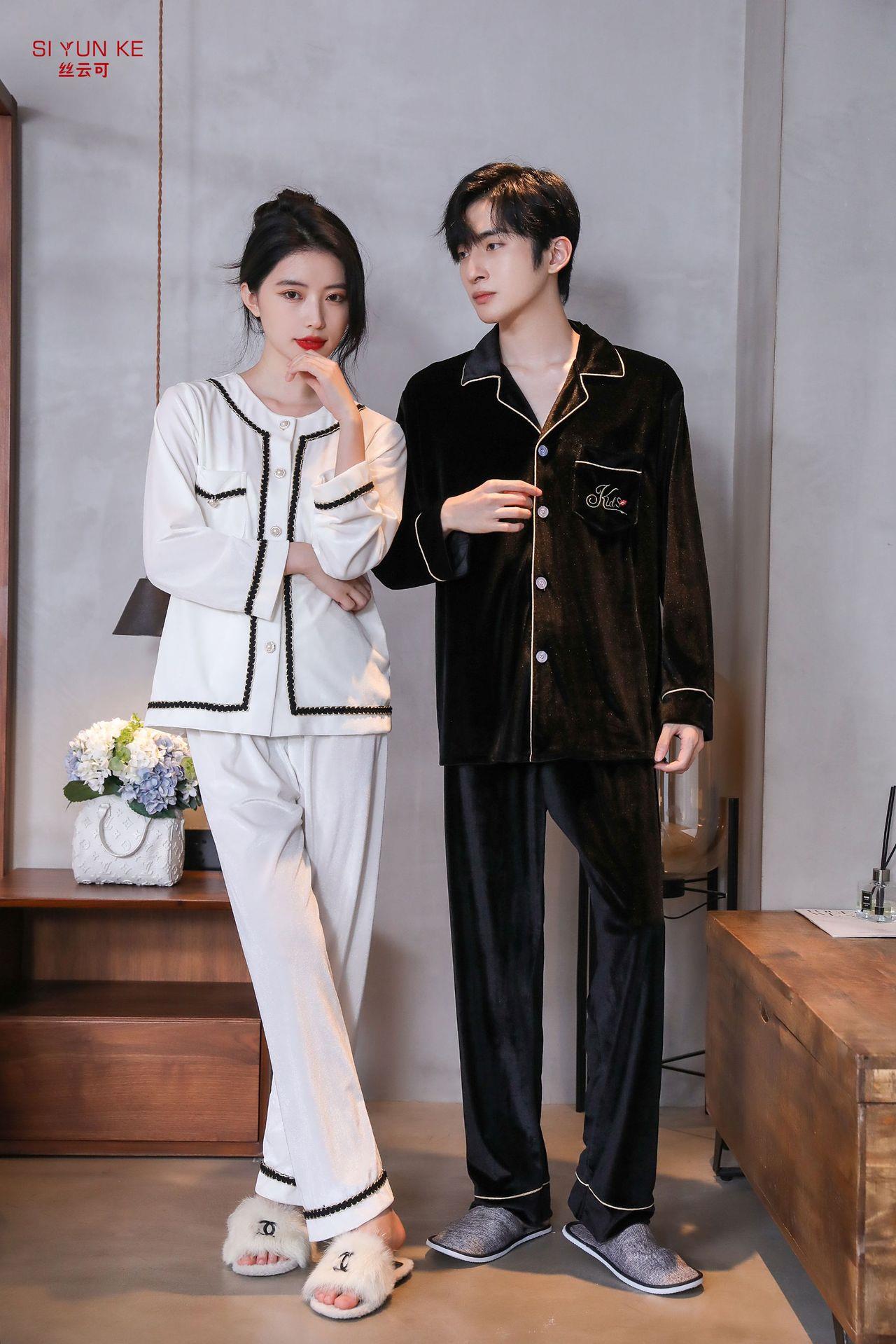 高定年代【金丝绒情侣家居服】秋冬女款加厚开衫大码套装长袖可外穿男女士家居服