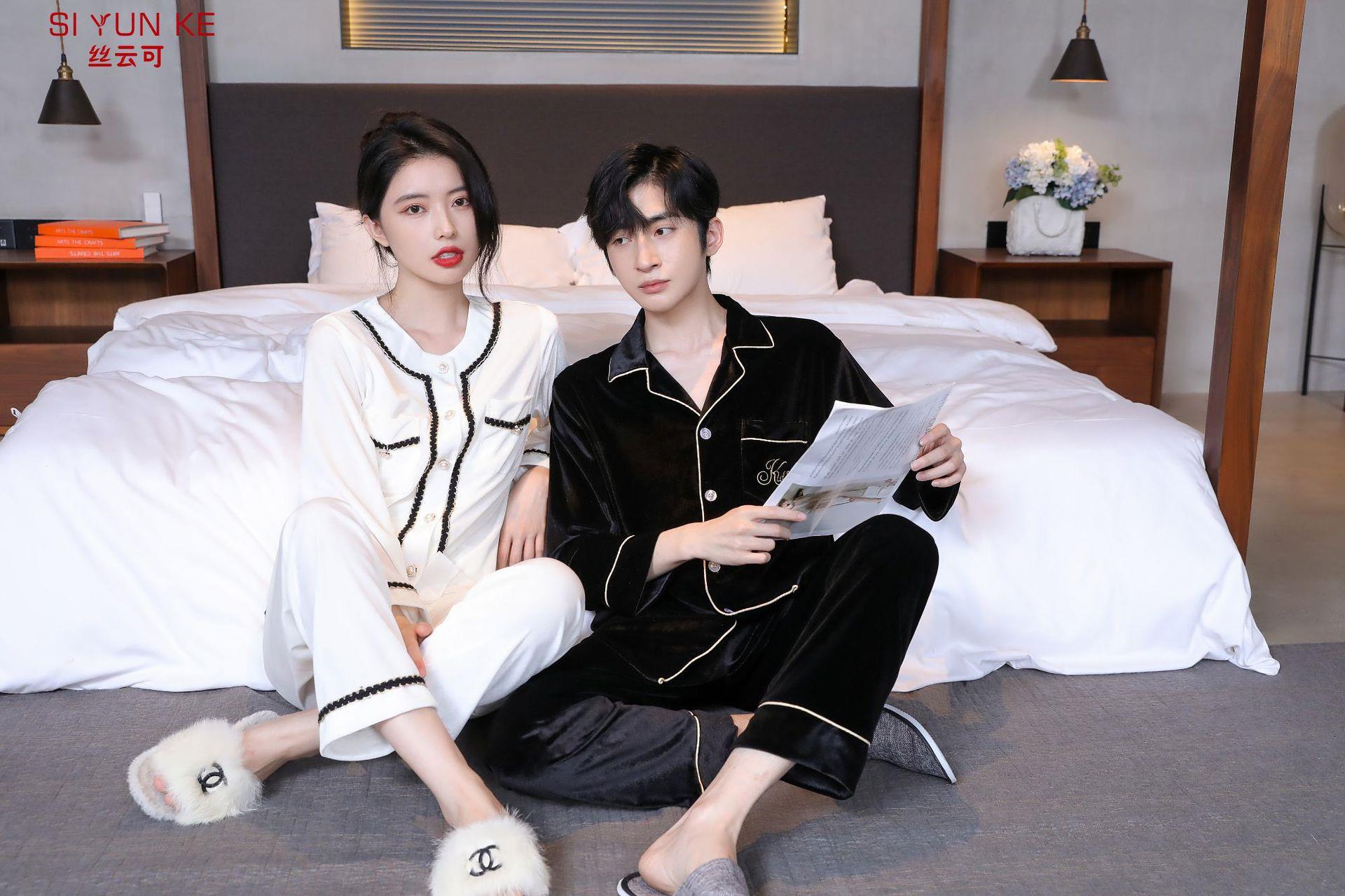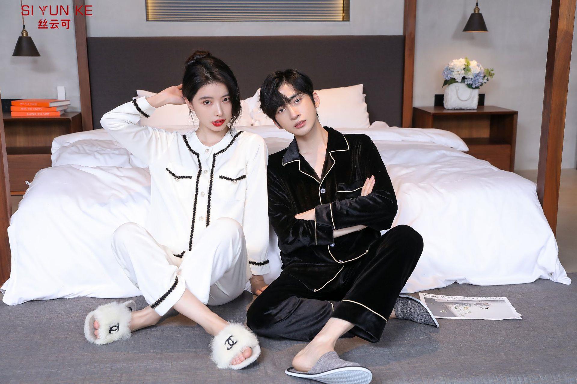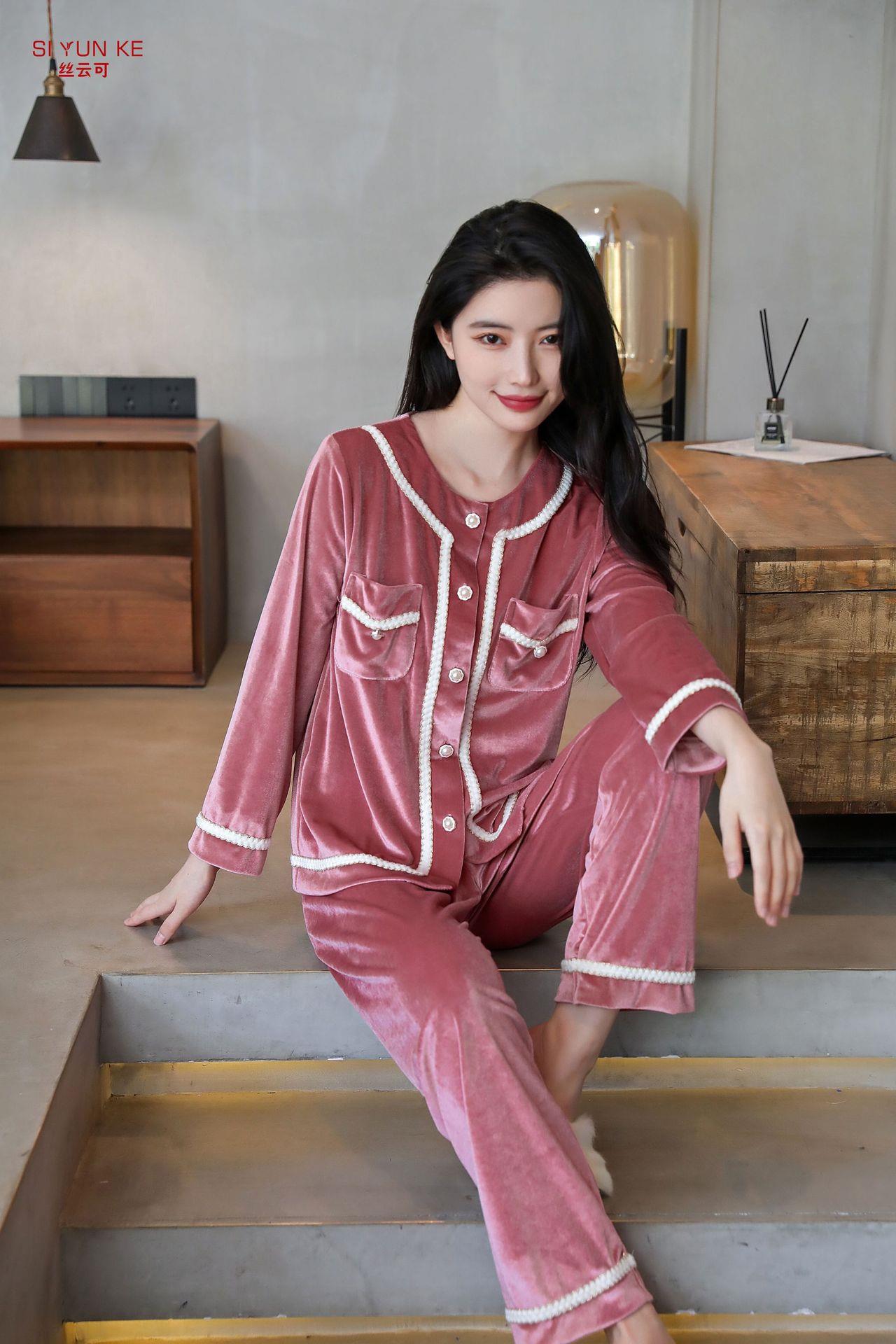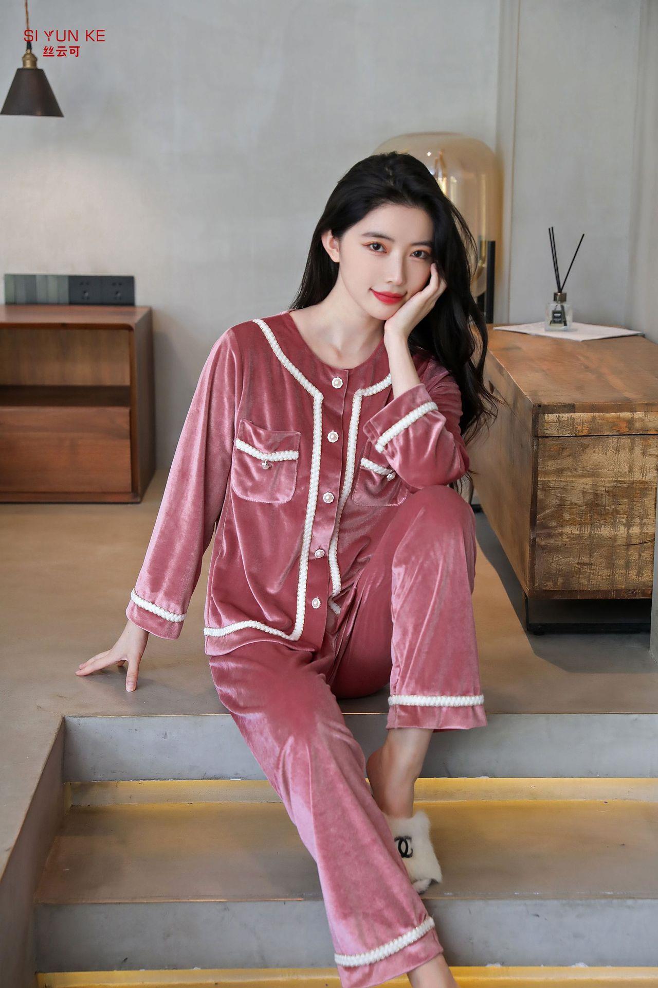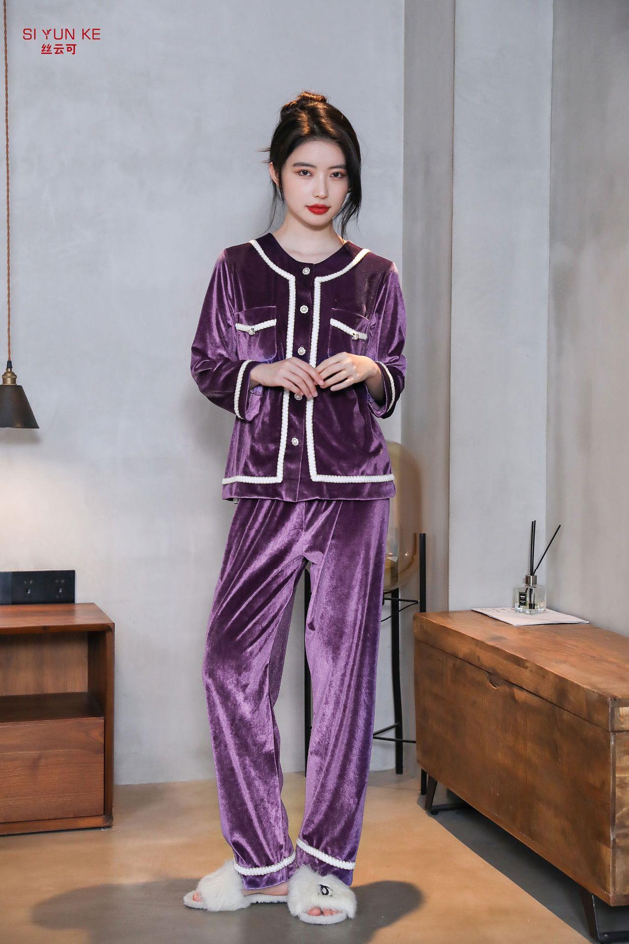 高定年代【金丝绒情侣家居服】秋冬女款加厚开衫大码套装长袖可外穿男女士家居服