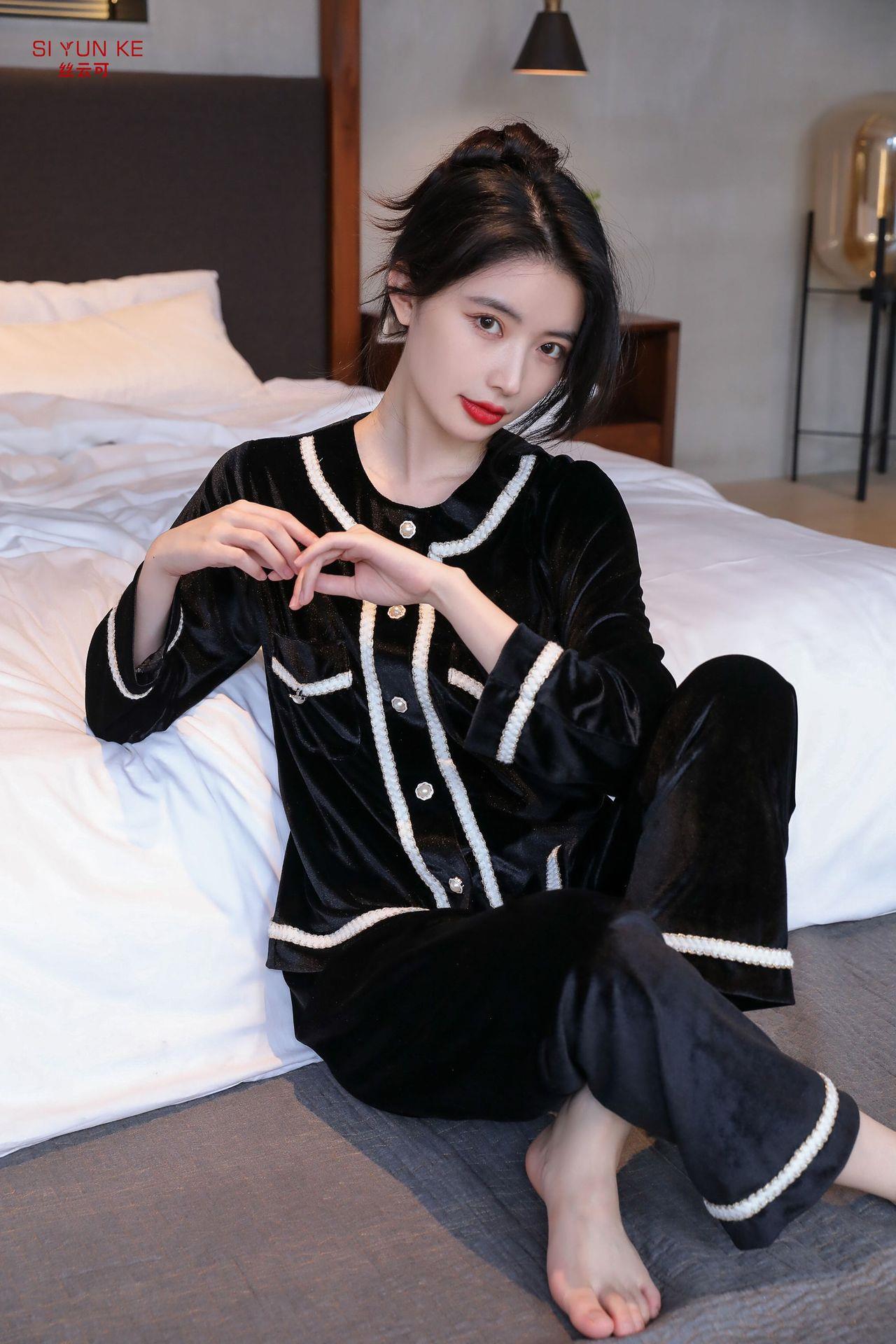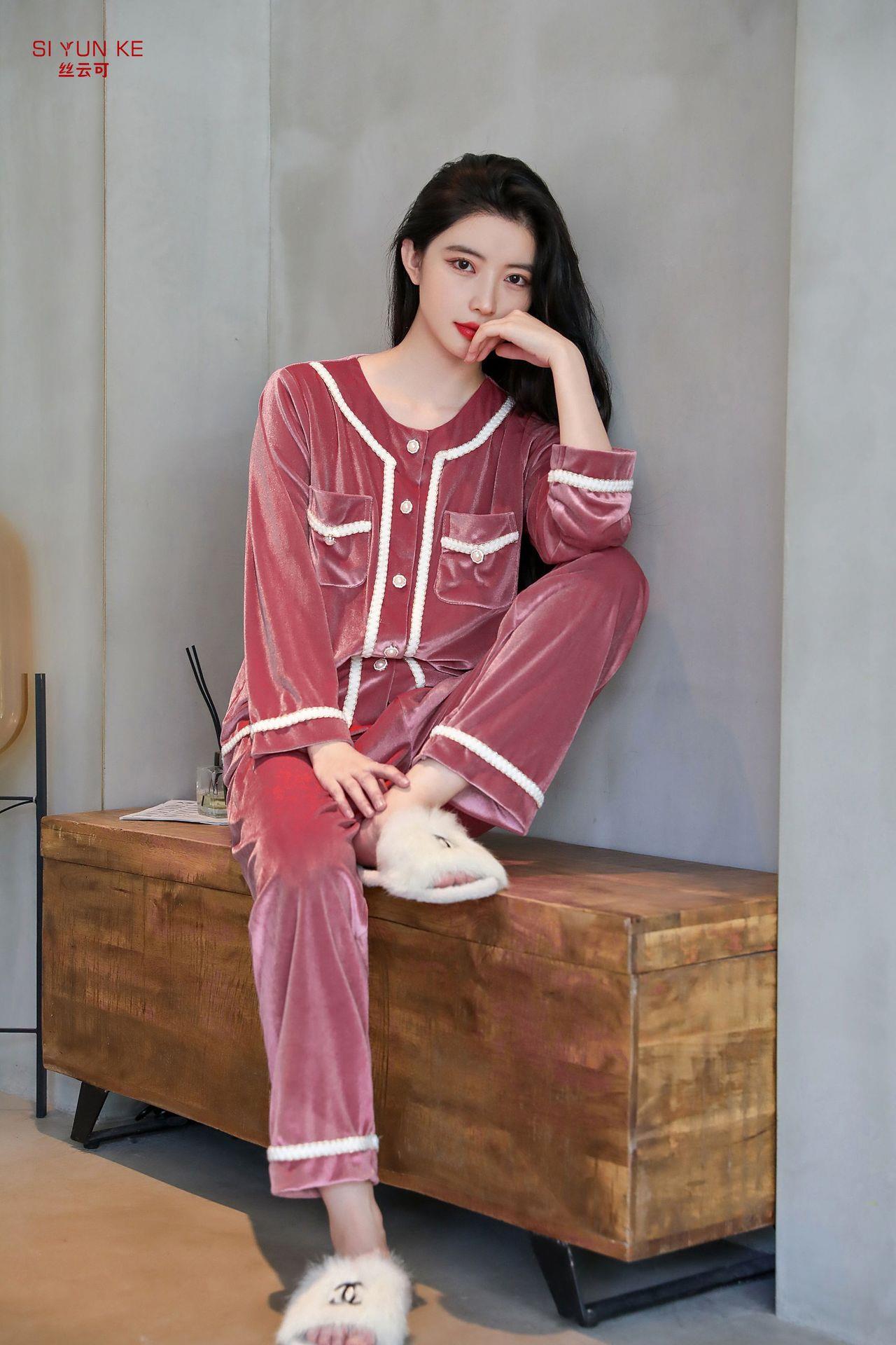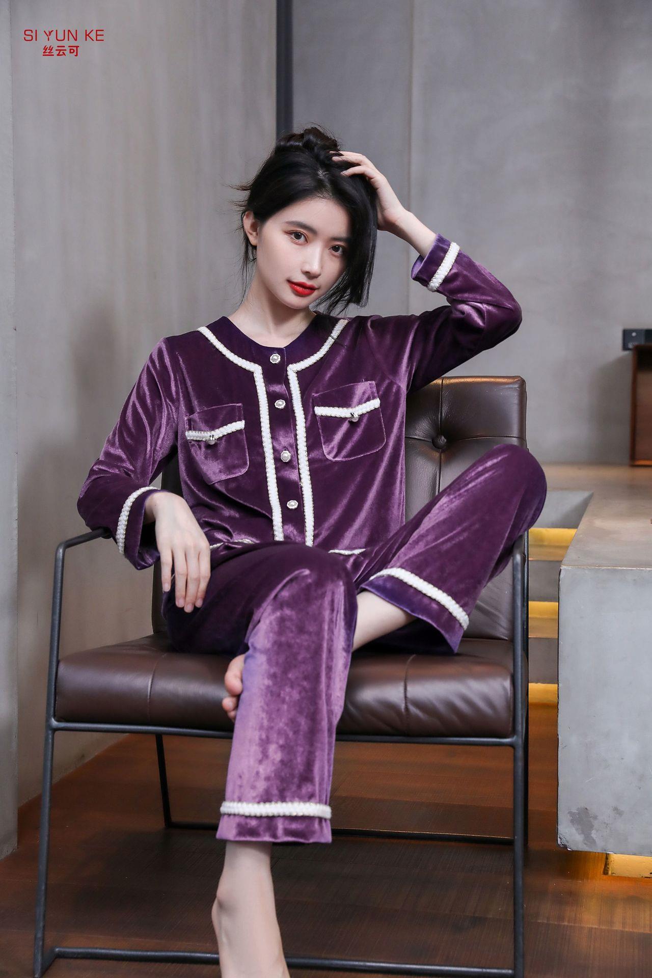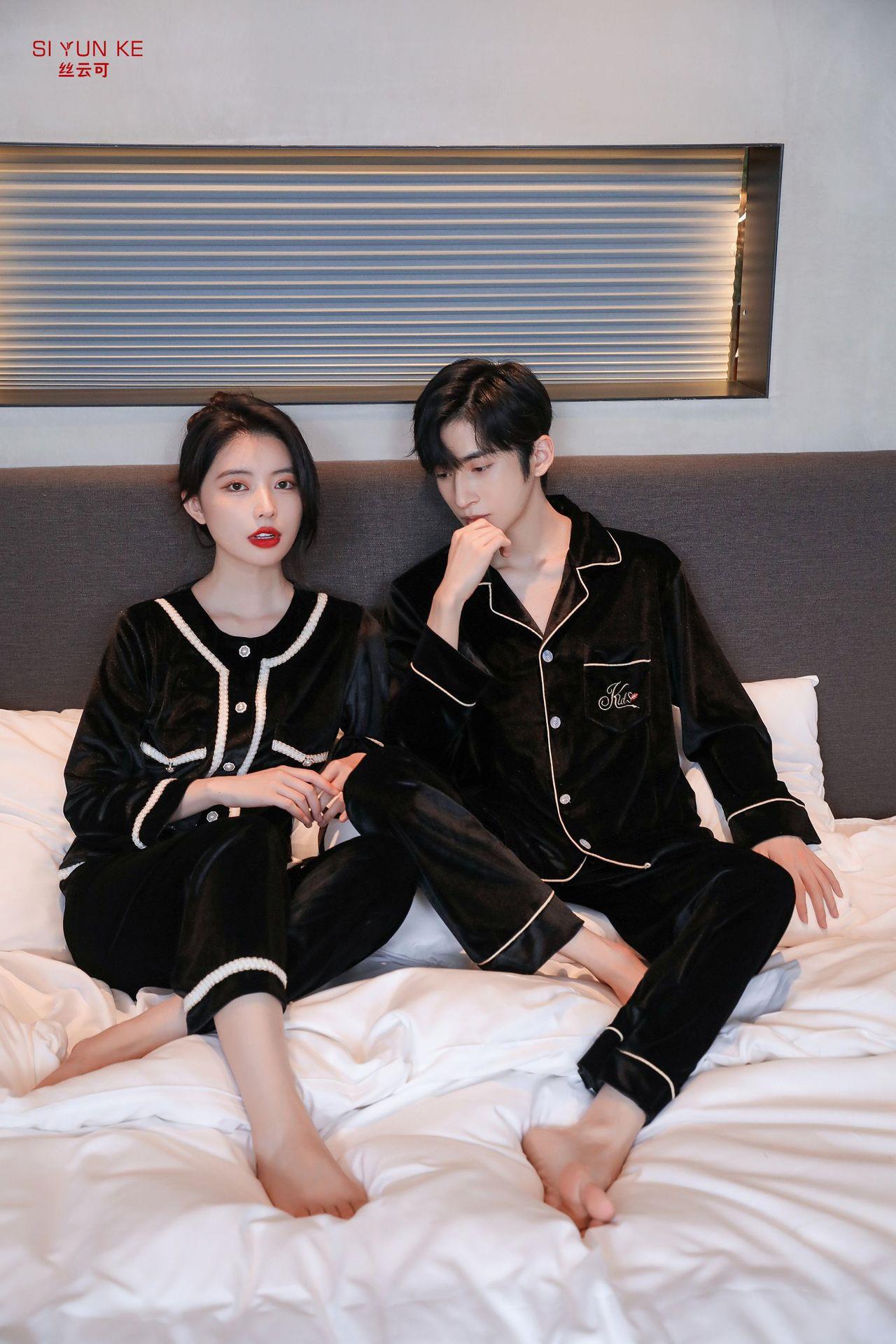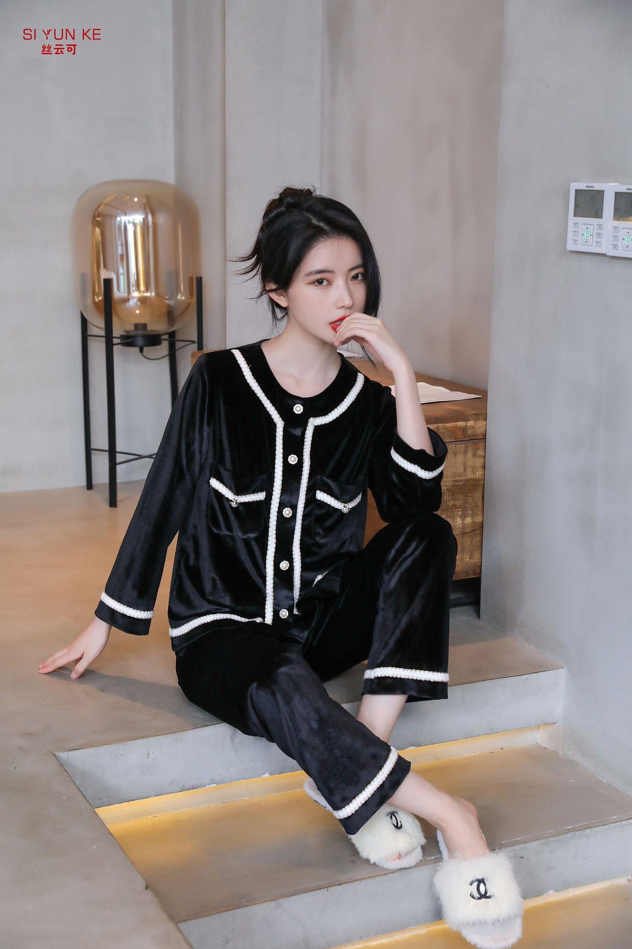 高定年代【金丝绒情侣家居服】秋冬女款加厚开衫大码套装长袖可外穿男女士家居服