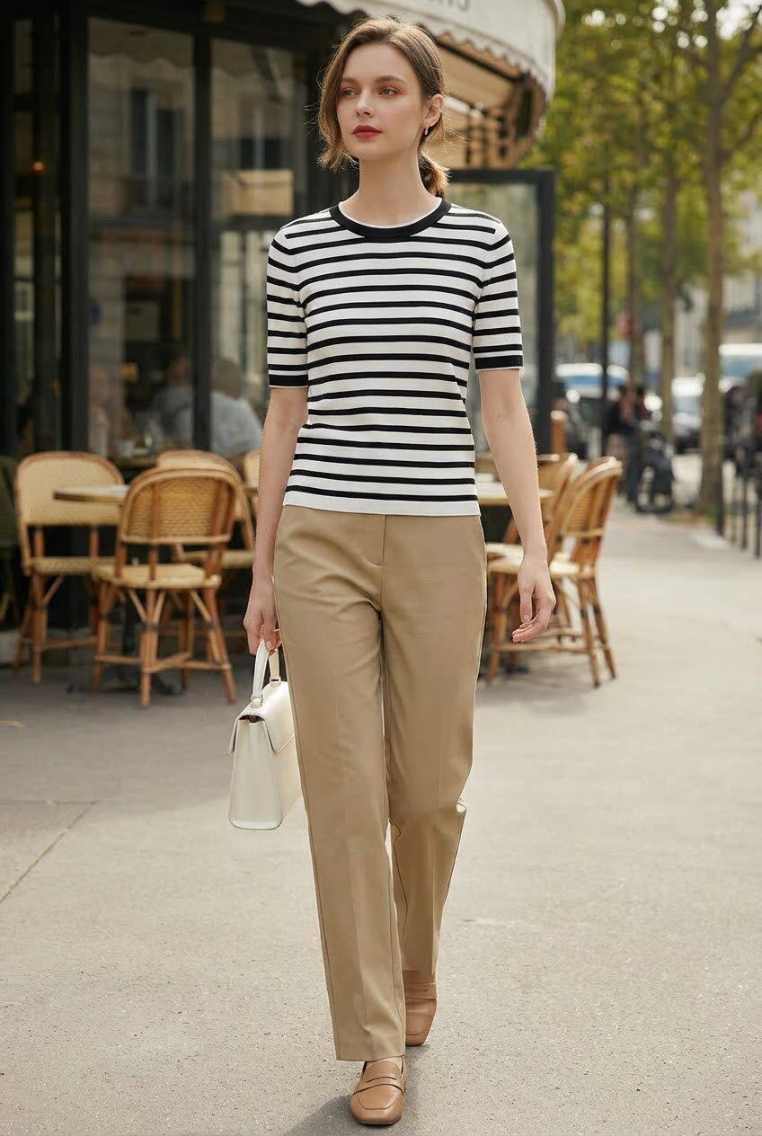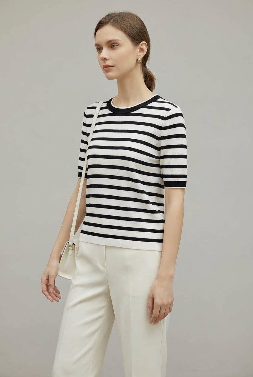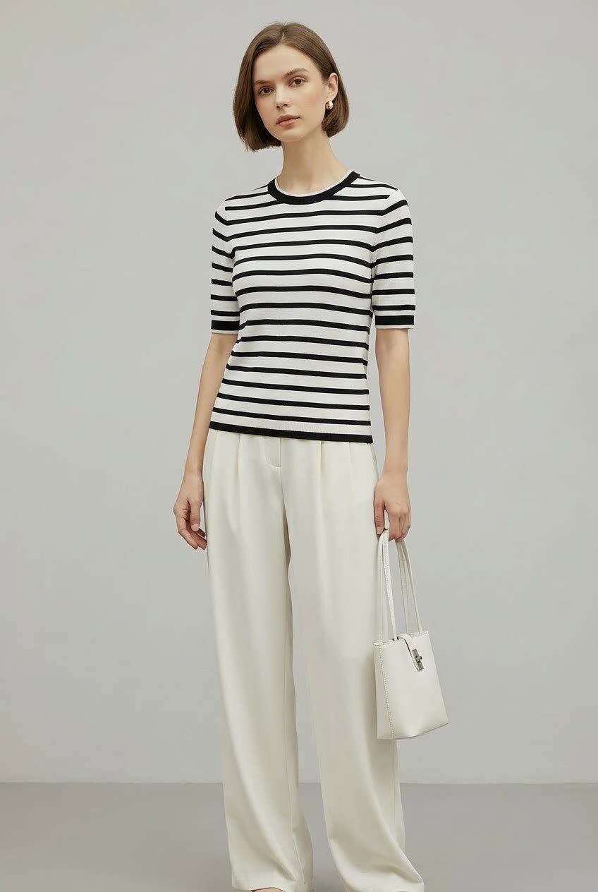 「自」全新升级【铂金会员183/天猫239/差价56】(23707)洛诗琳超细天丝条纹针织短袖女2026春夏新款圆领套头上衣