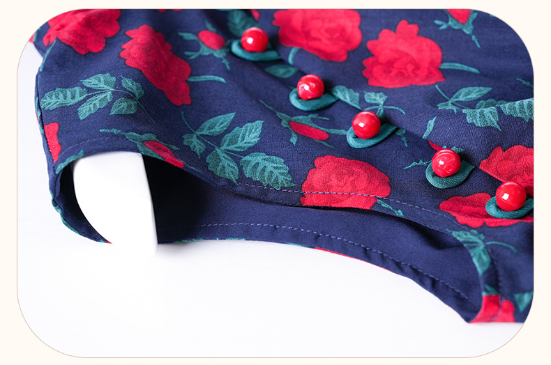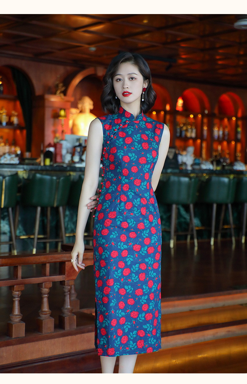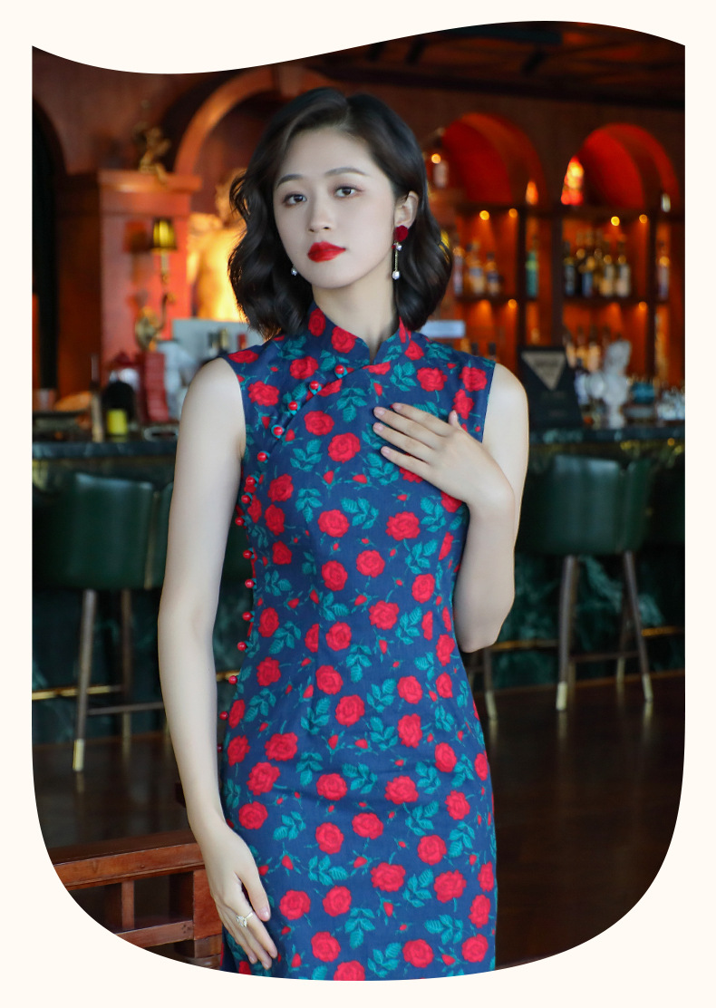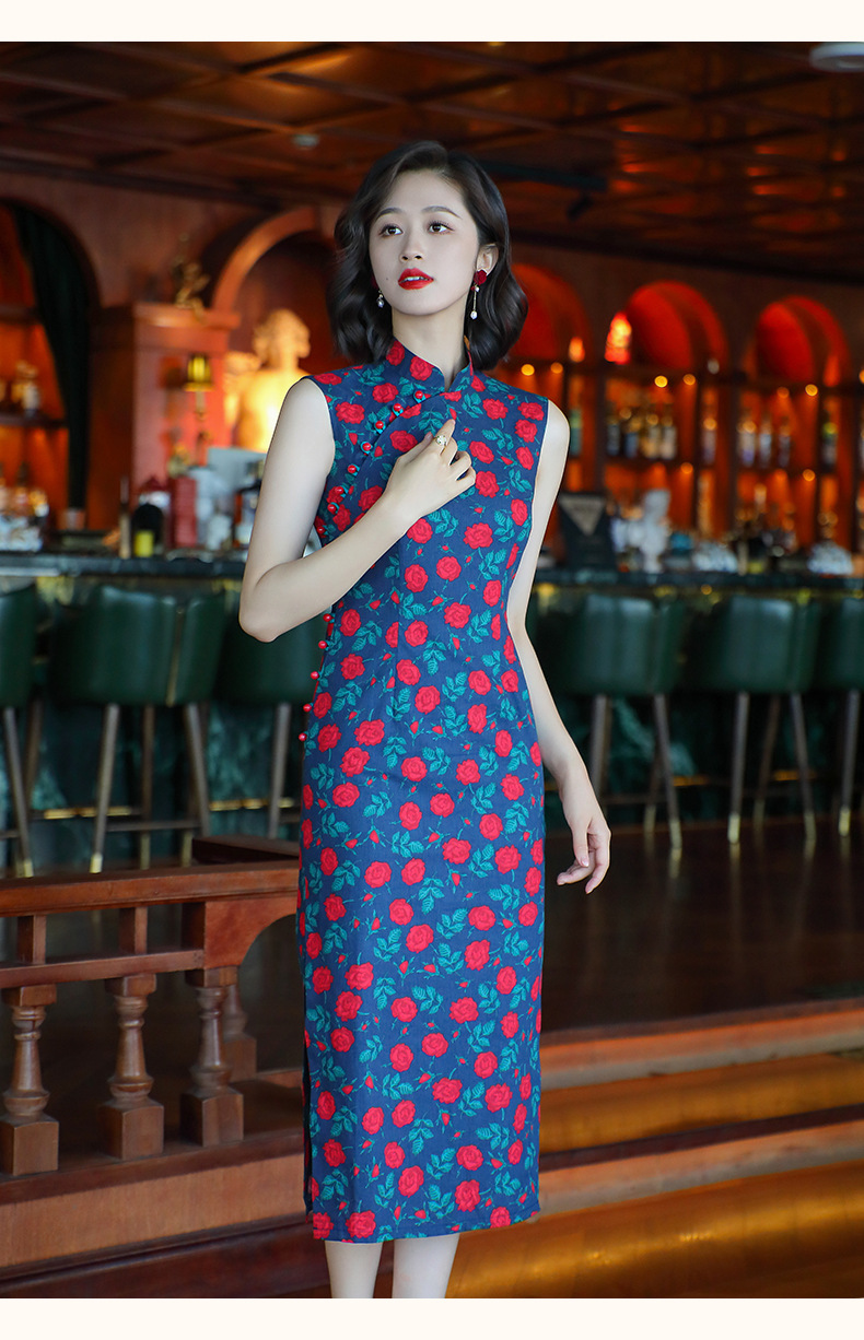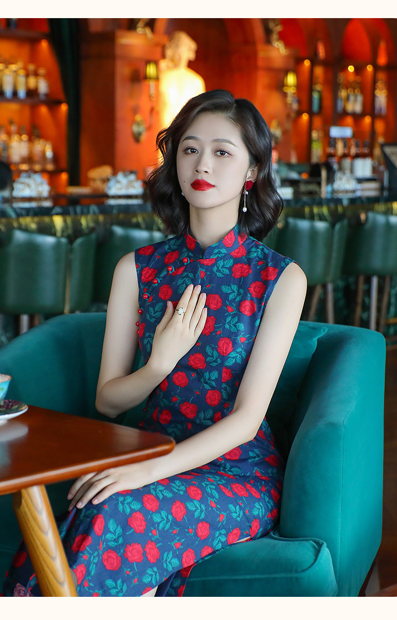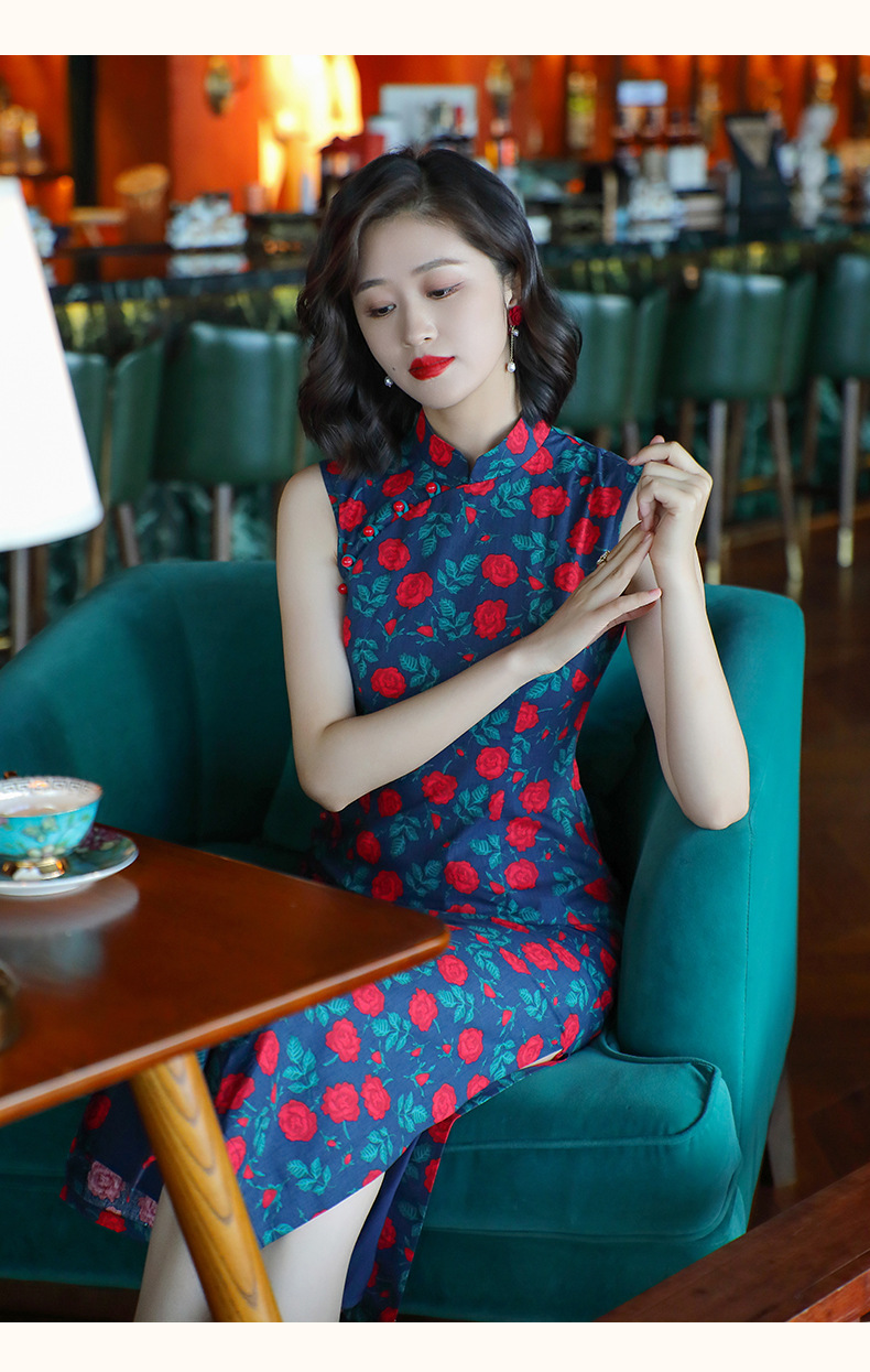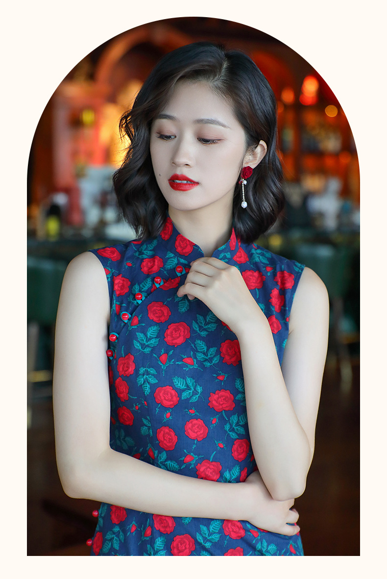 OY-24260中国风气质旗袍夏季2024年新款纯棉玫瑰印花日常改良连衣裙24260