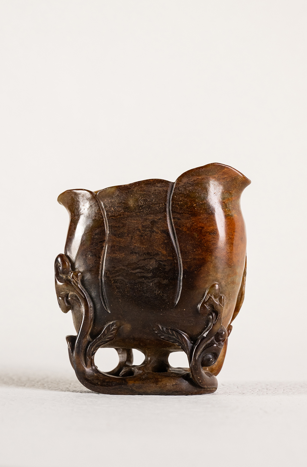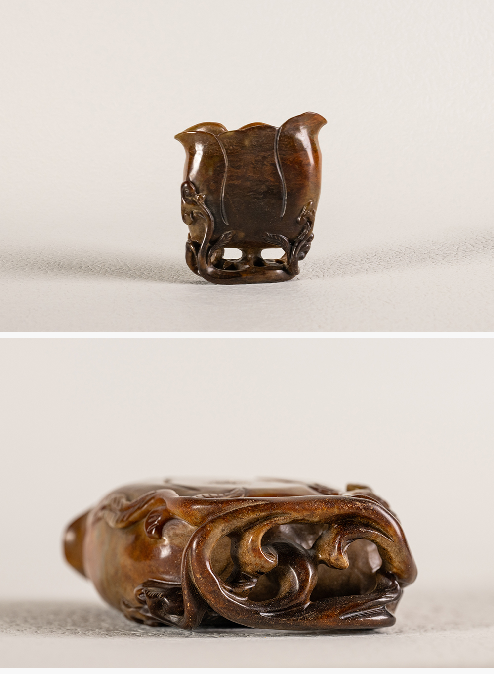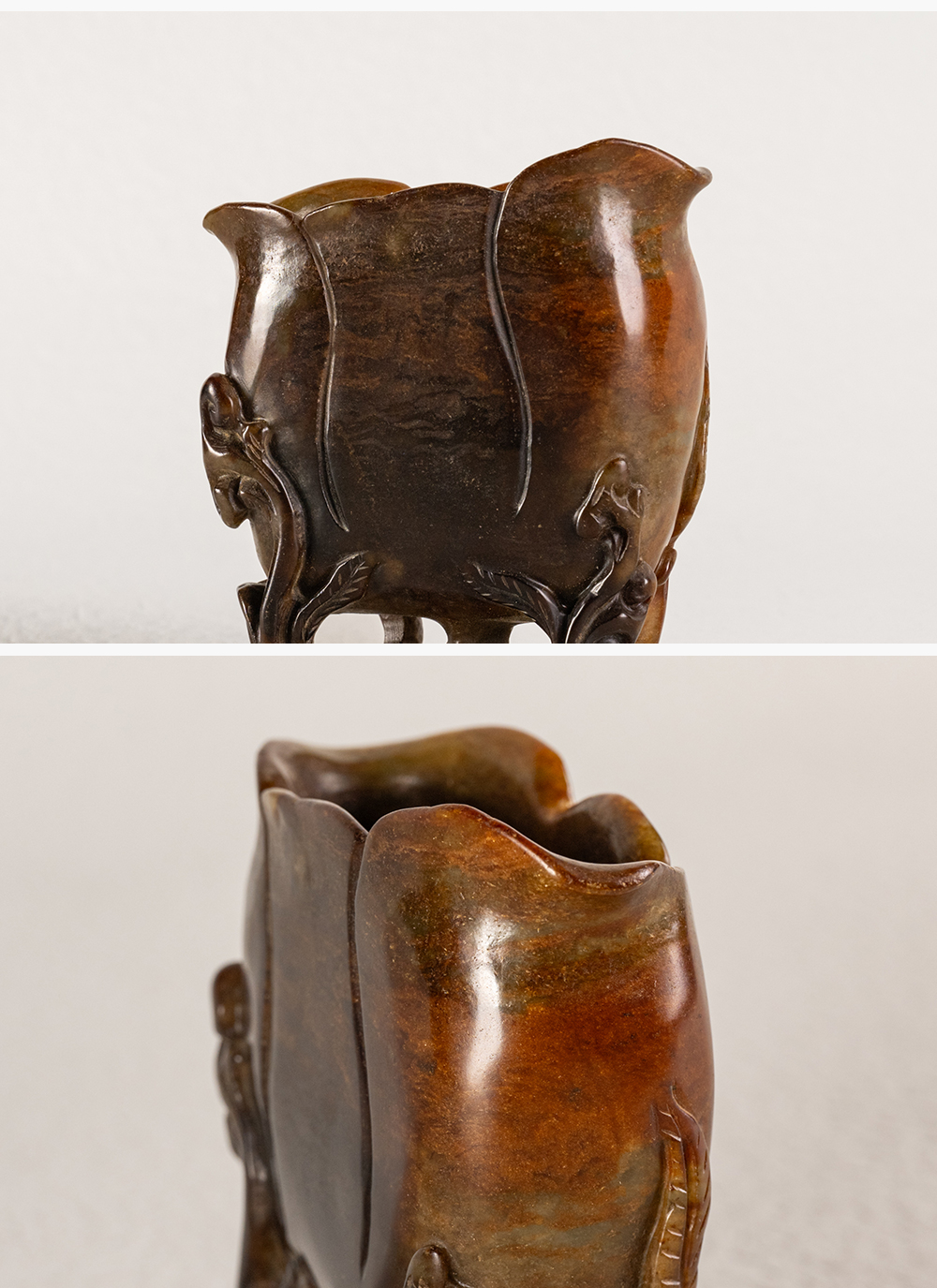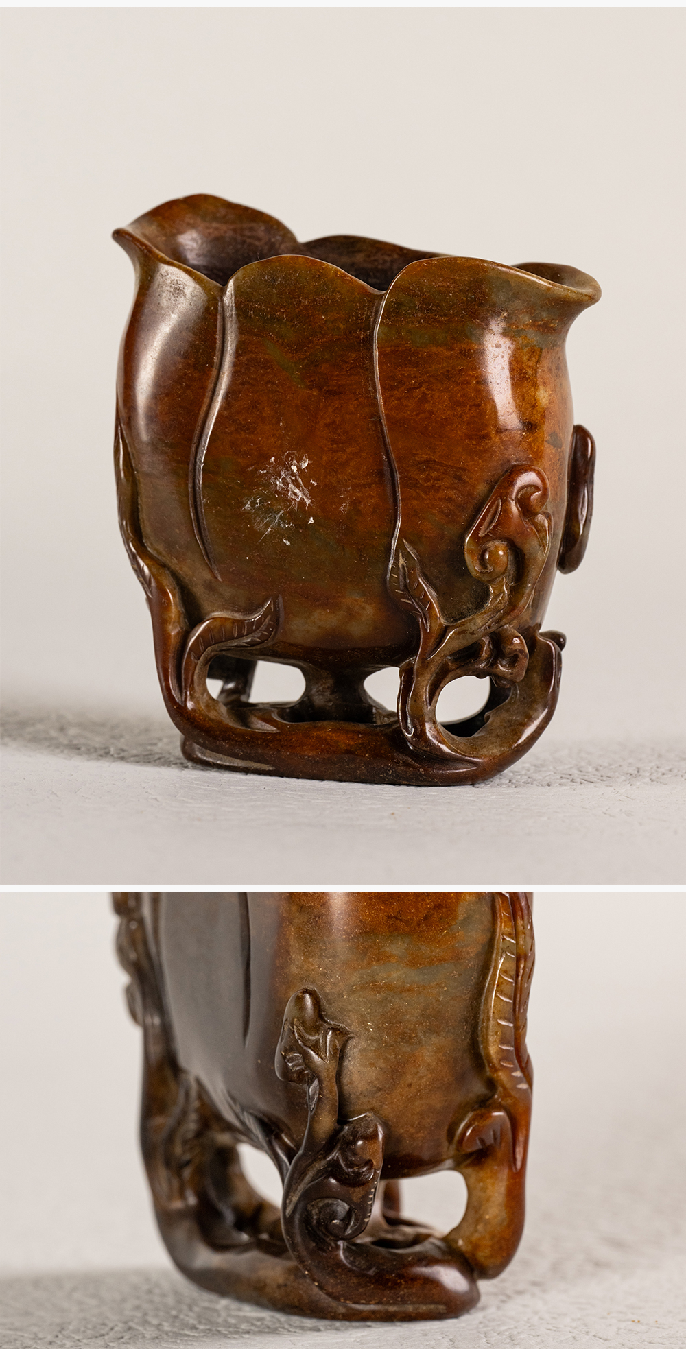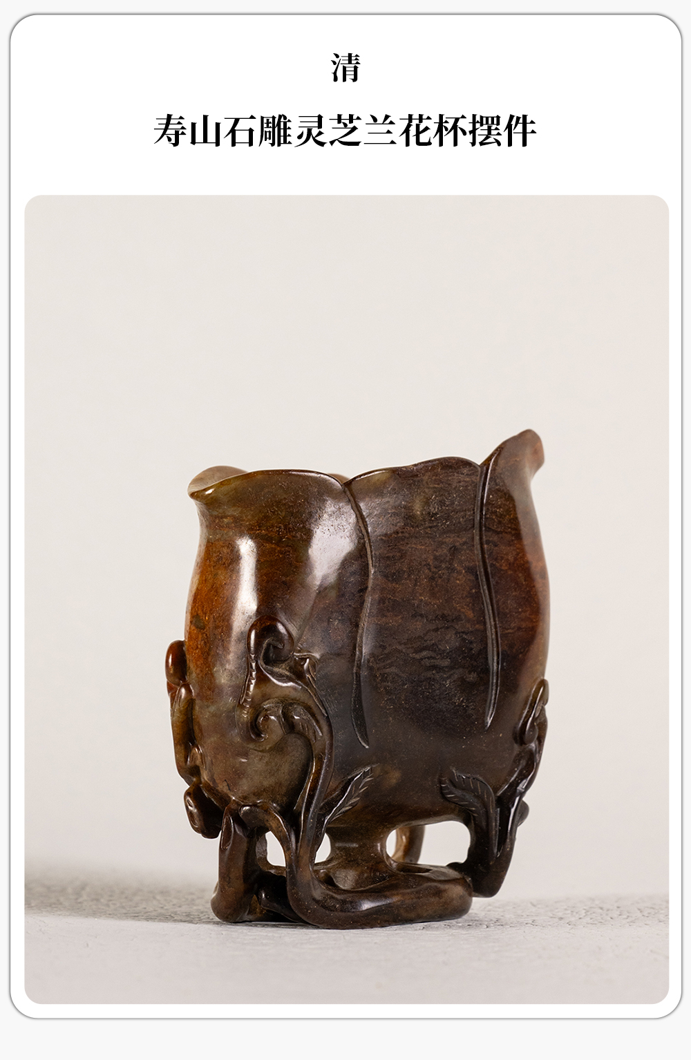 清 寿山石雕灵芝兰花杯摆件