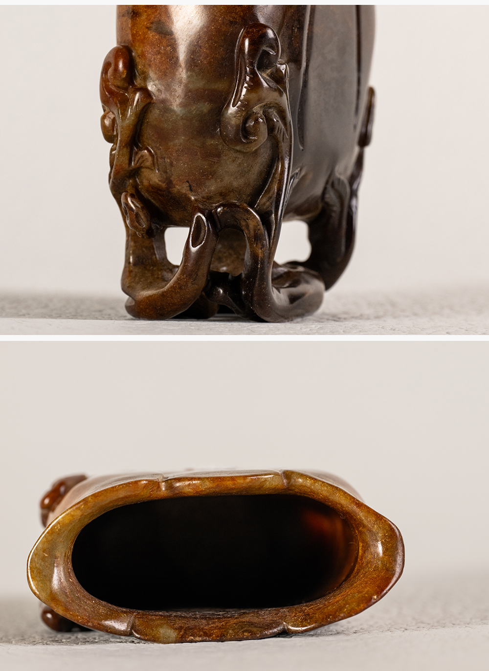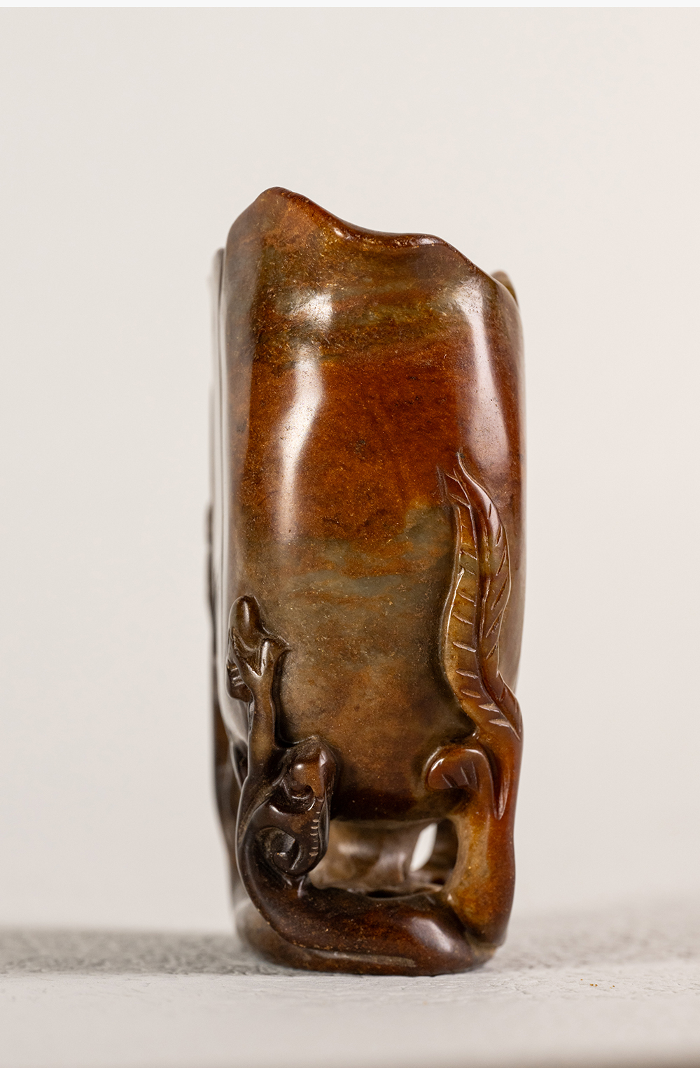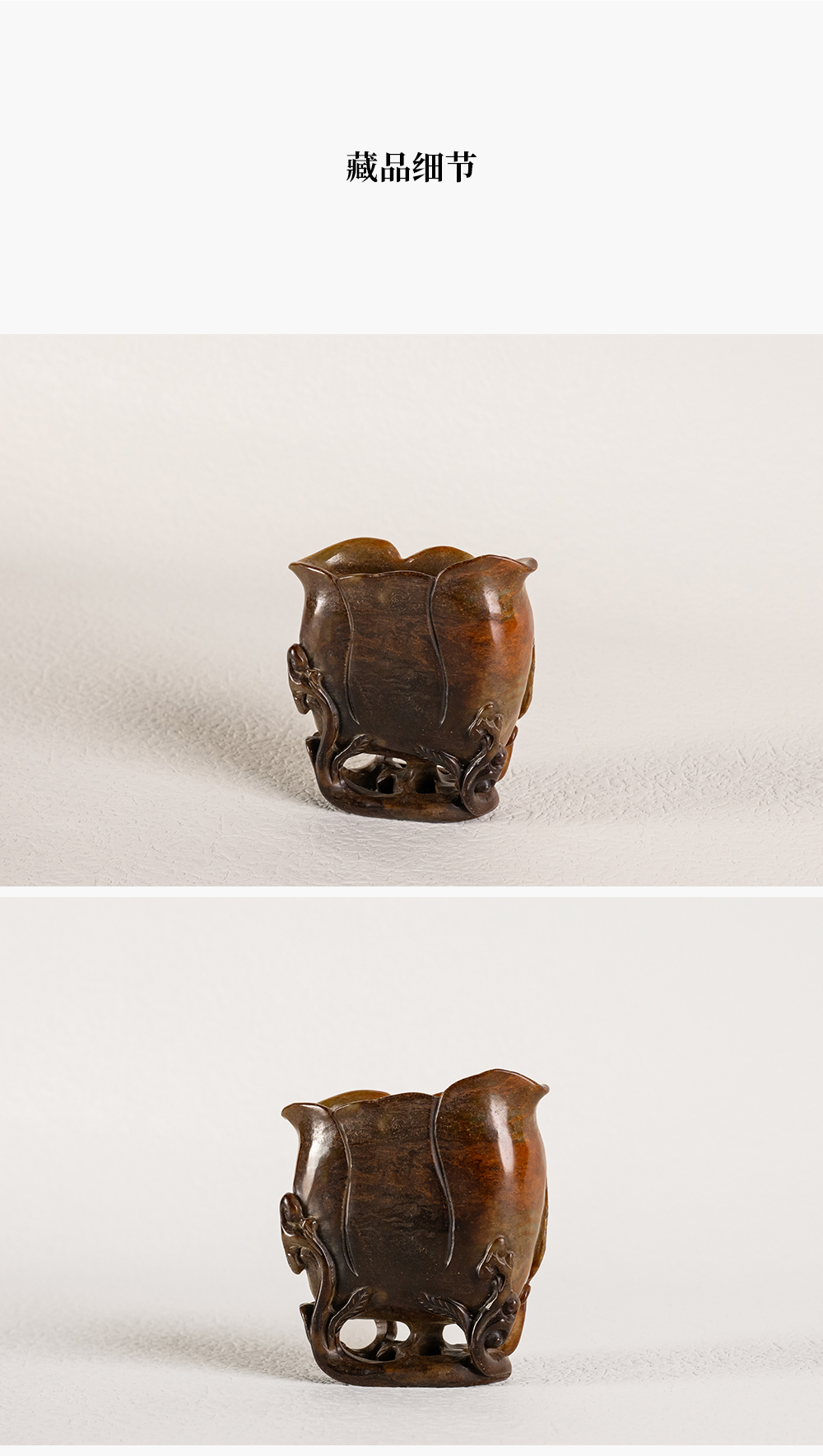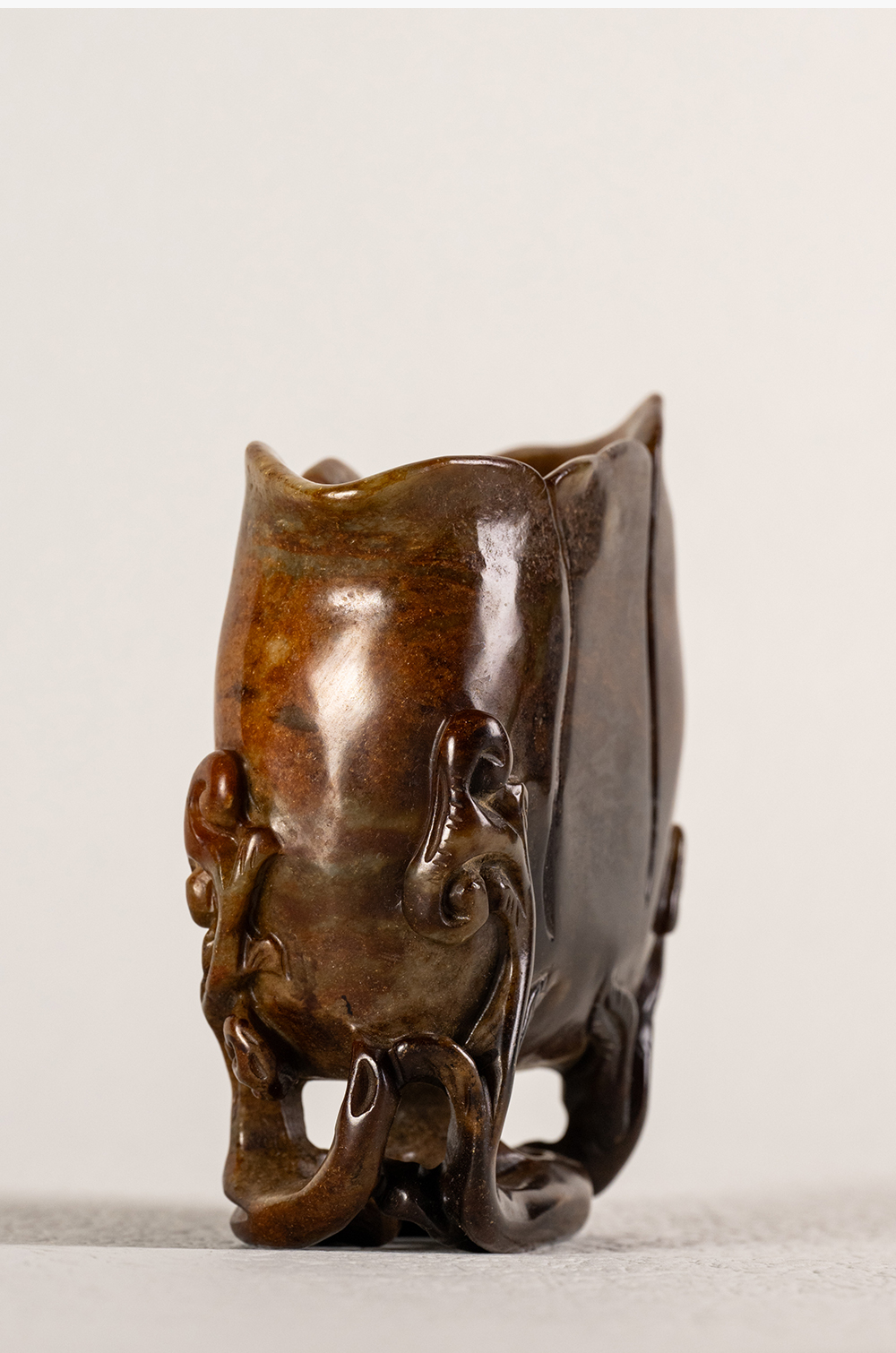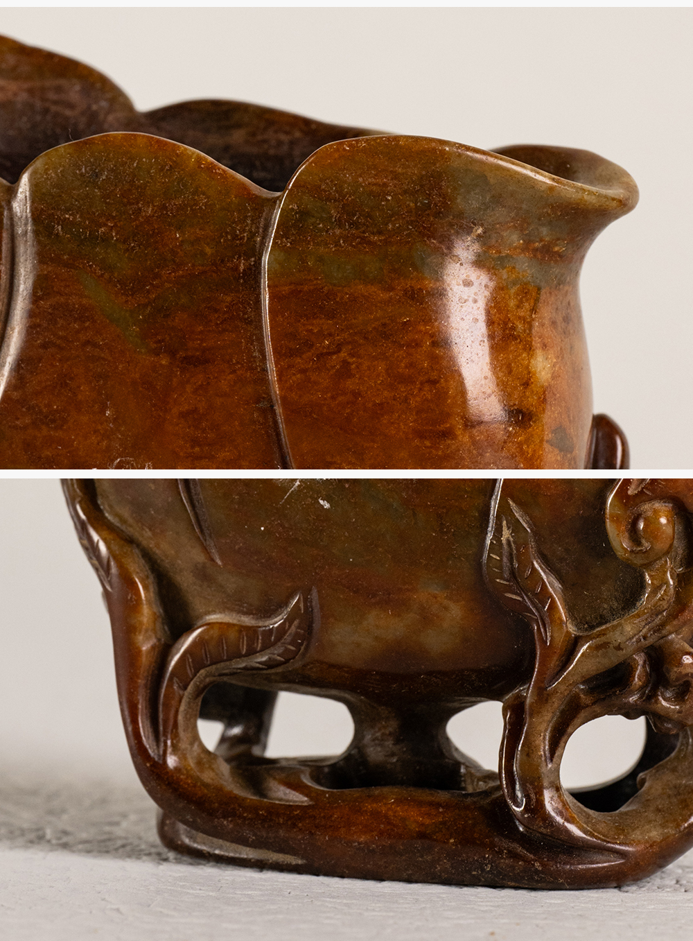 清 寿山石雕灵芝兰花杯摆件