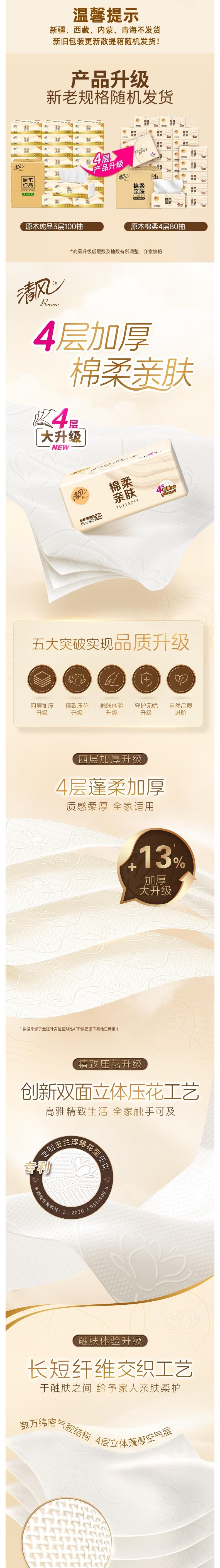 清风 原木纯品抽纸4层80抽*18包(新旧随机) BC-CP80C18