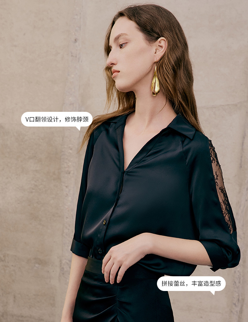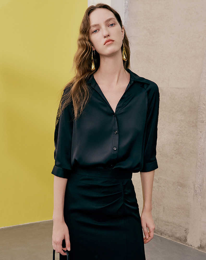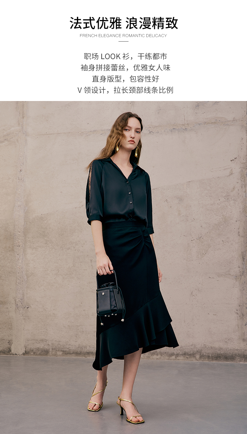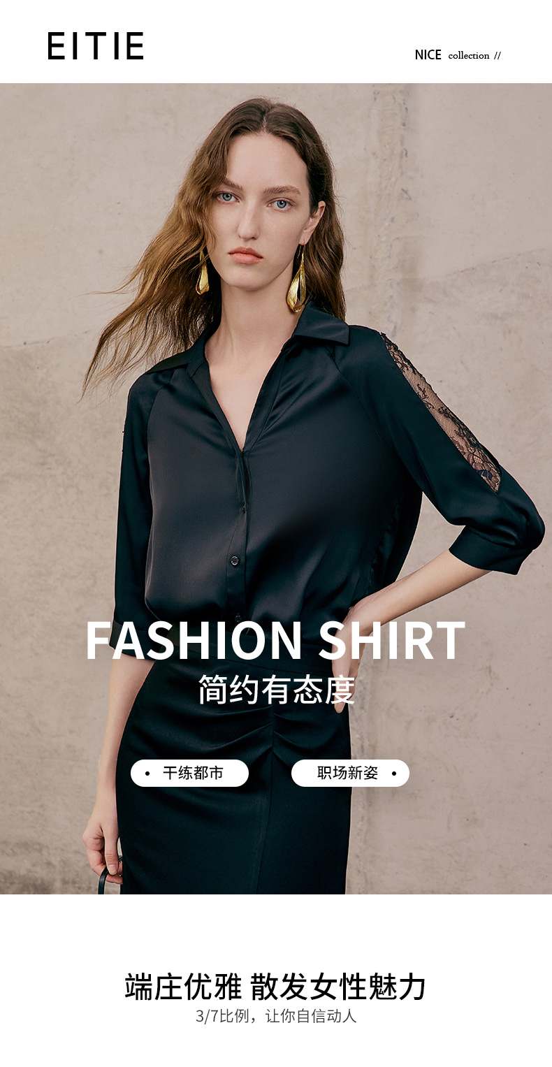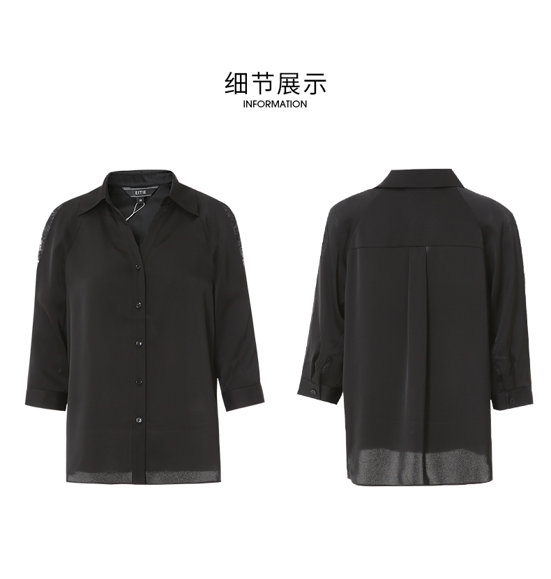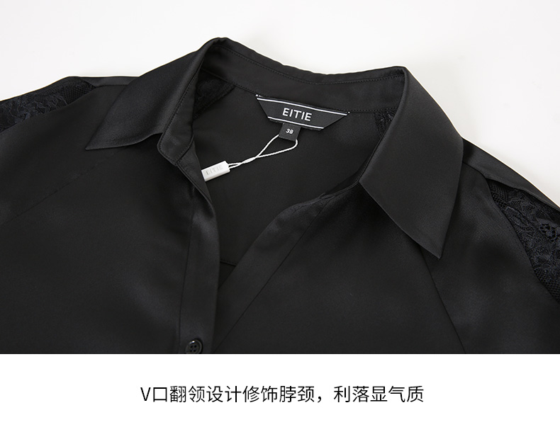 EITIE爱特爱夏季新款通勤干练职业时尚显瘦袖子蕾丝拼接衬衫女上衣7409103