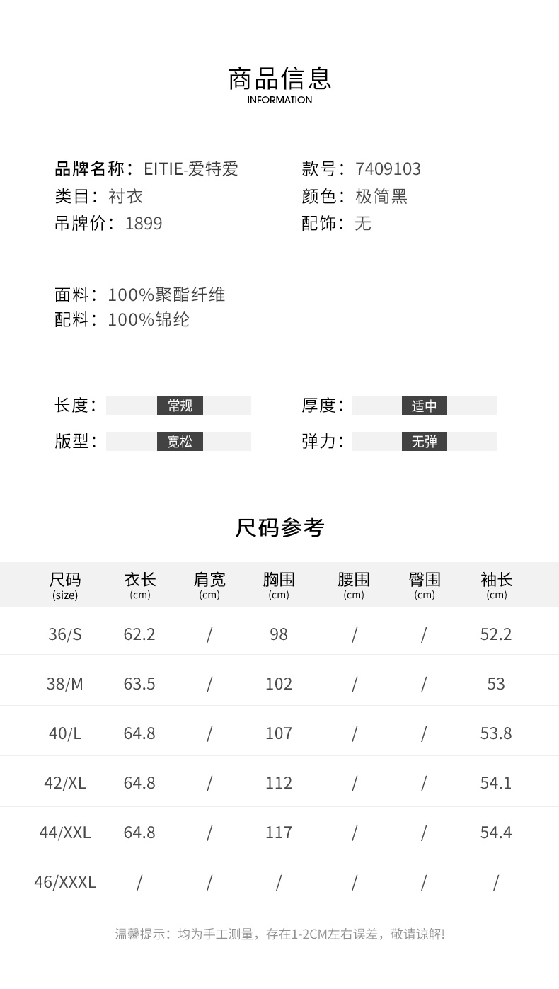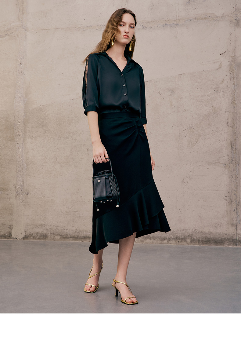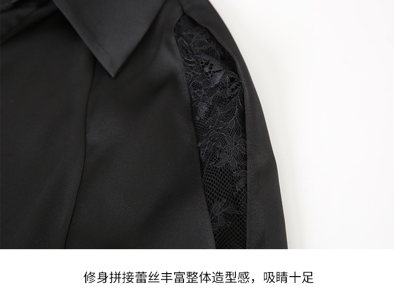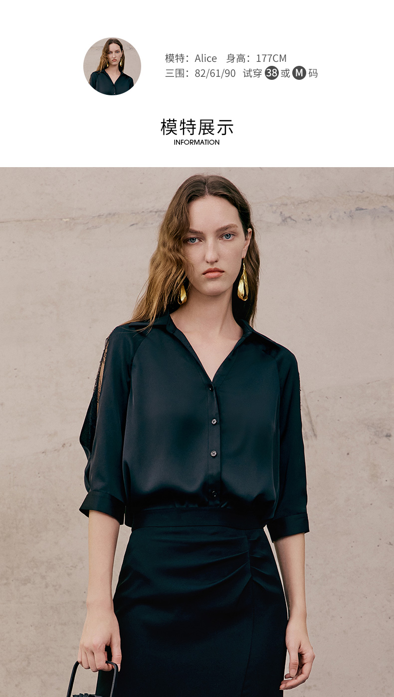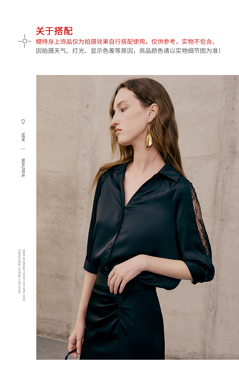 EITIE爱特爱夏季新款通勤干练职业时尚显瘦袖子蕾丝拼接衬衫女上衣7409103