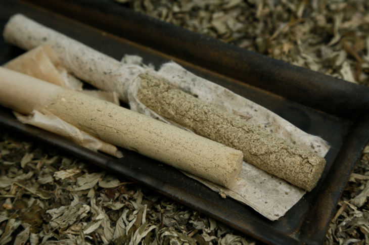 所谓的高纯度“黄金艾”只有用机器才能制作出来,这是艾叶经历了艾绒加工机里的反复粉碎和过筛之后得出的,因为粉碎产生的高温使艾绒颜色变得澄黄,但是高温也使有效成分挥发殆尽,疗效所剩无几了。这是典型的过度加工