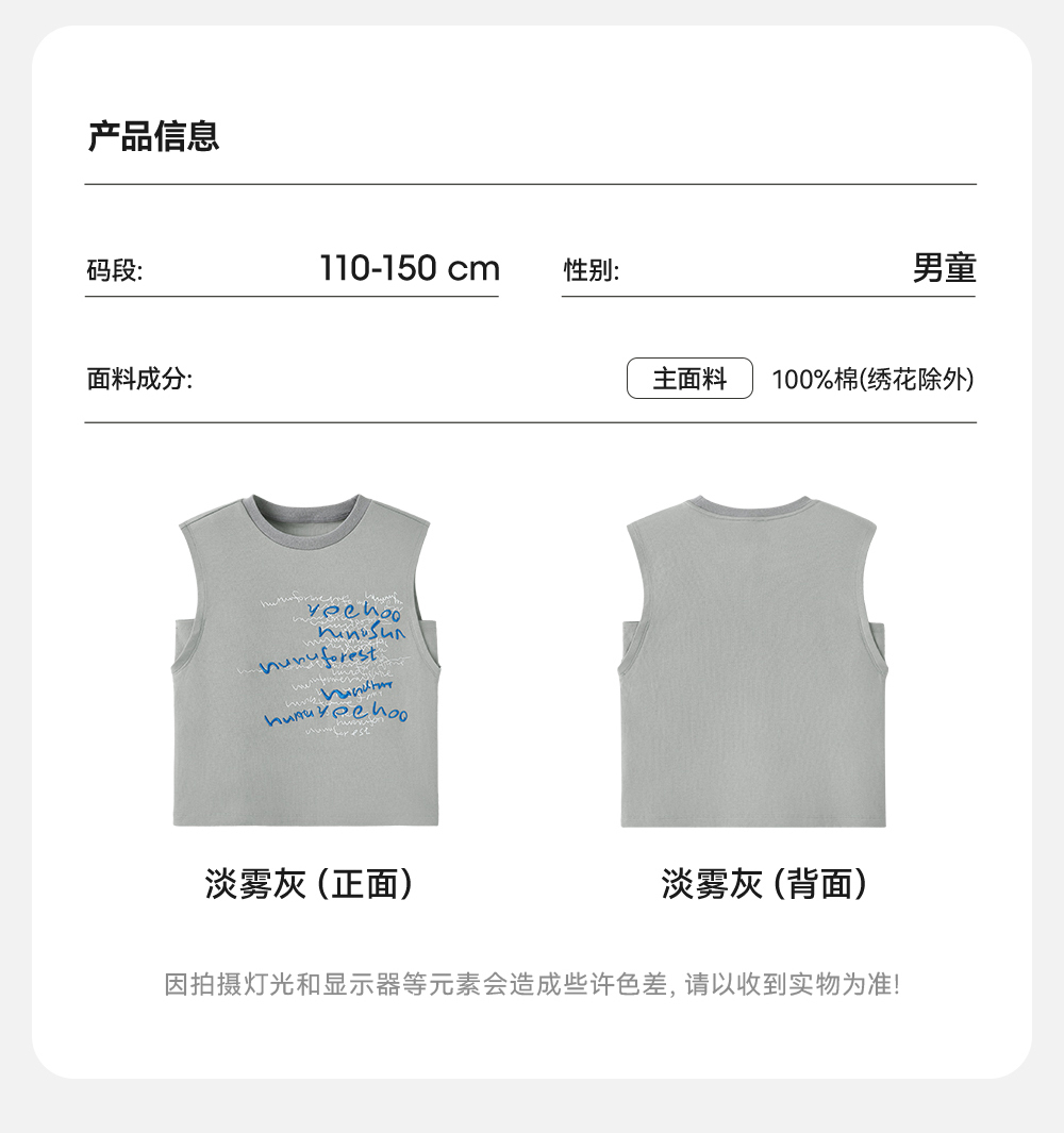【商场同款】英氏儿童背心夏季透气无袖男童T恤纯棉2025新款背心