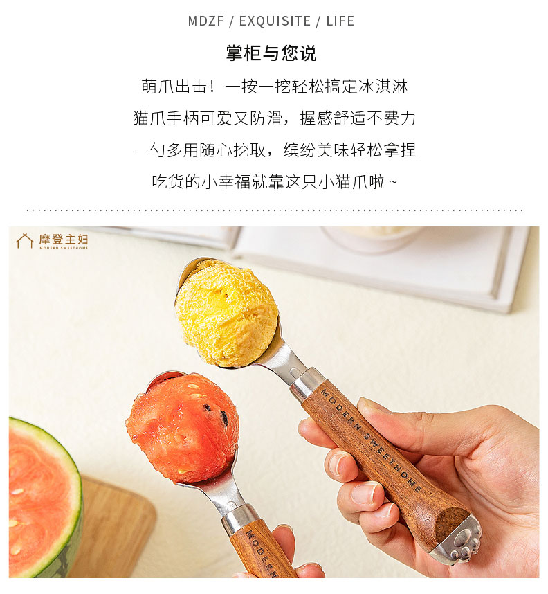 摩登主妇304不锈钢冰淇淋勺西瓜勺子家用食品级水果挖球器水果勺